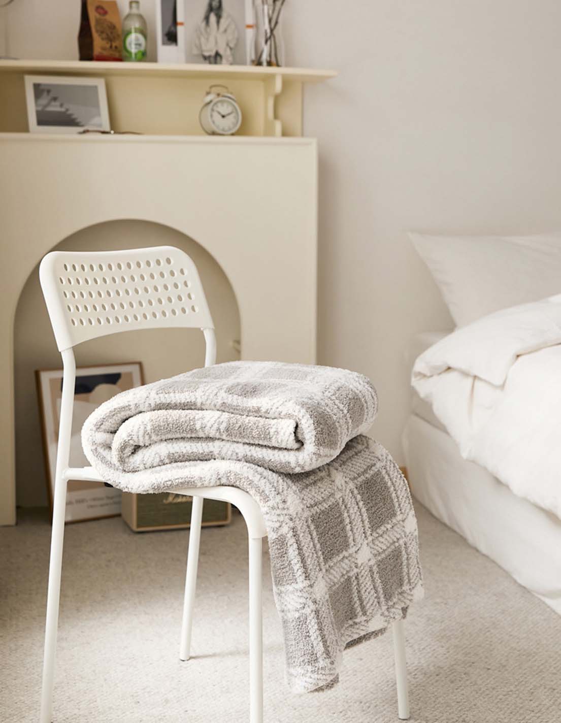 ¥226.80几何方格半边绒针织线毯盖毯冬季北欧风格沙发毯