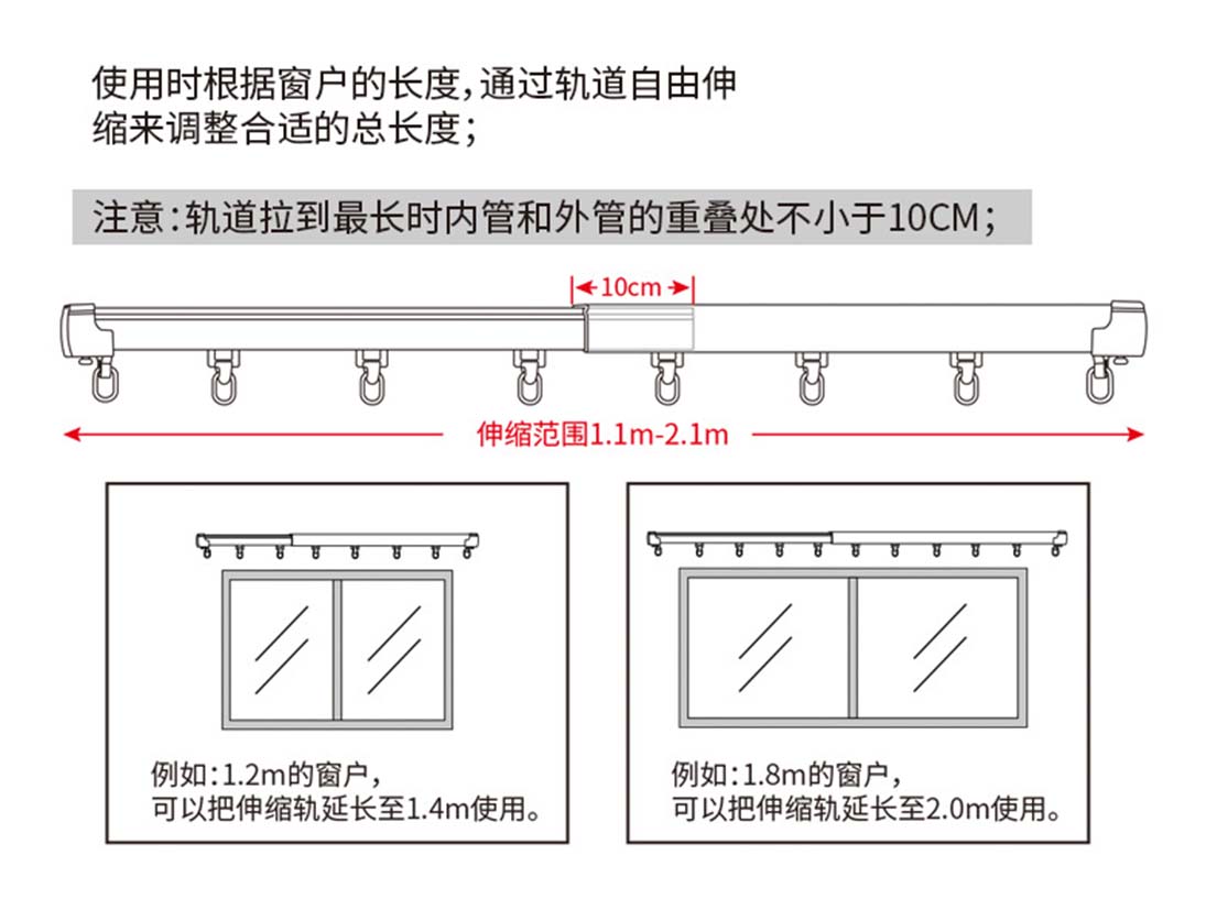 双轨顶装:【1.0米-1.8米】(可伸缩)