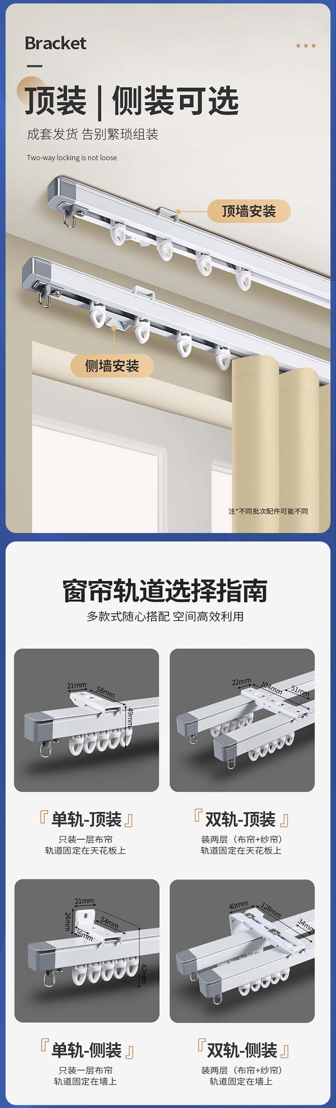 双轨顶装:【1.15米-2.1米】(可伸缩)