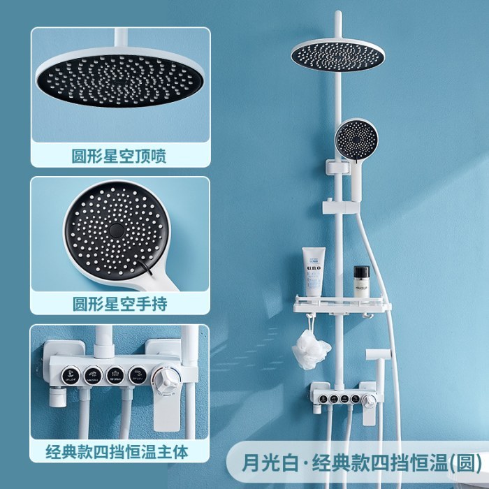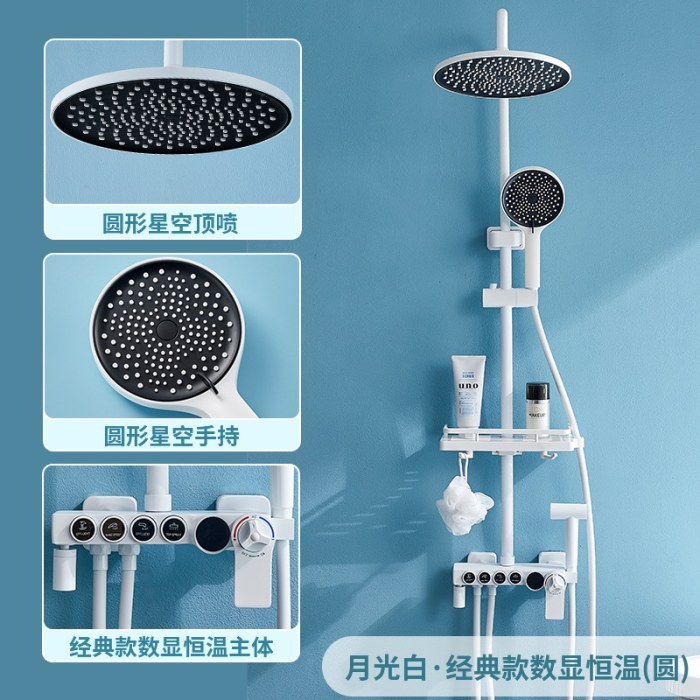 卫浴钢琴款全铜淋浴花洒套装 家用浴室白色恒温数显淋浴器智能花洒