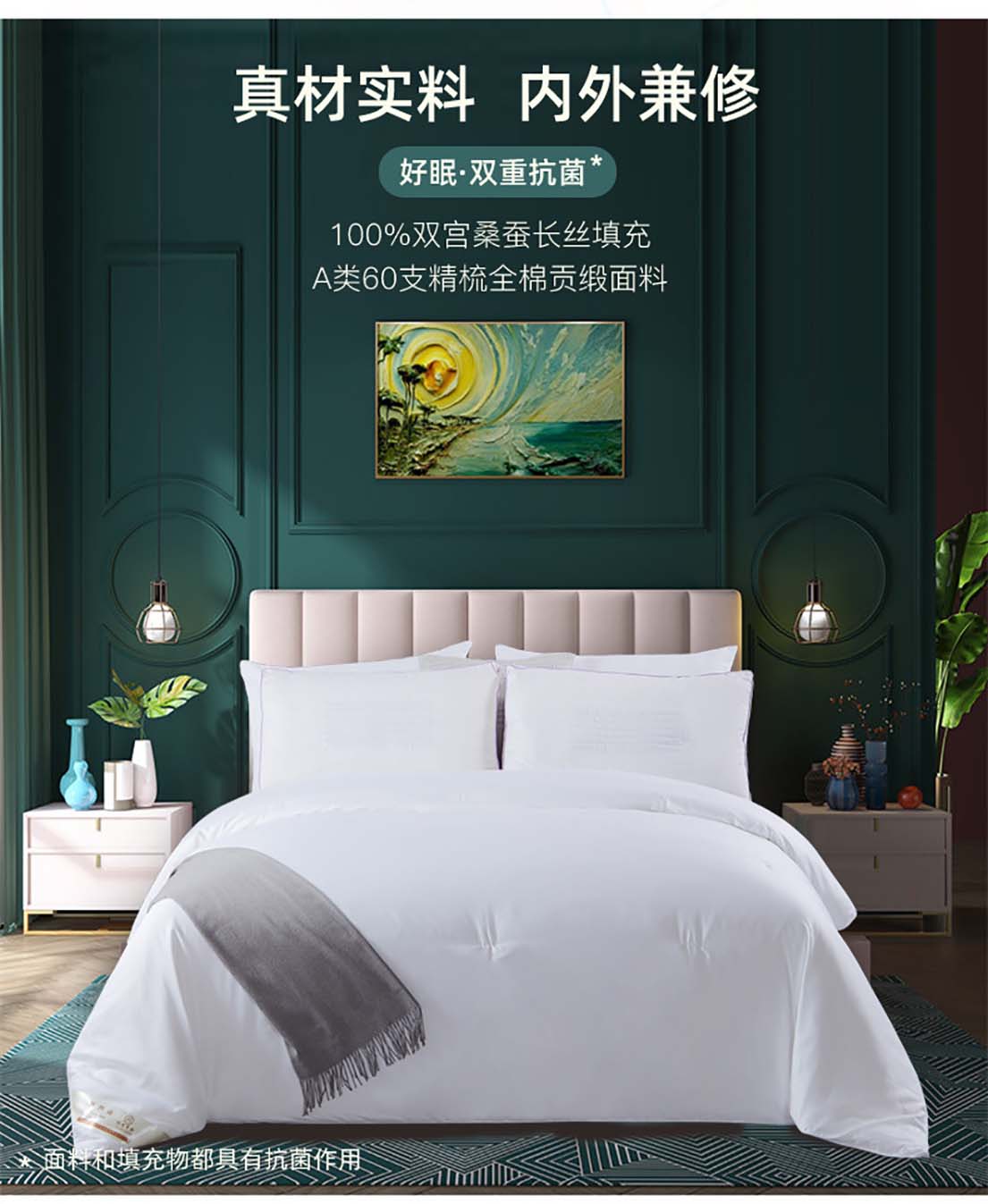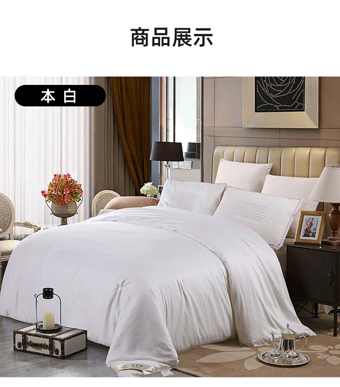100%双宫蚕丝被 60支全棉贡缎面料被套蚕丝被