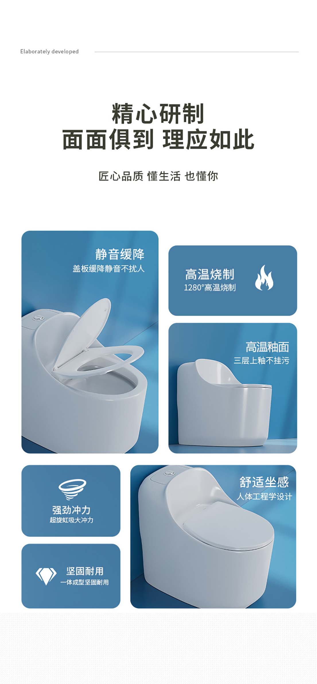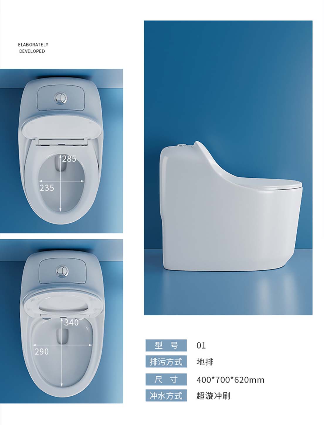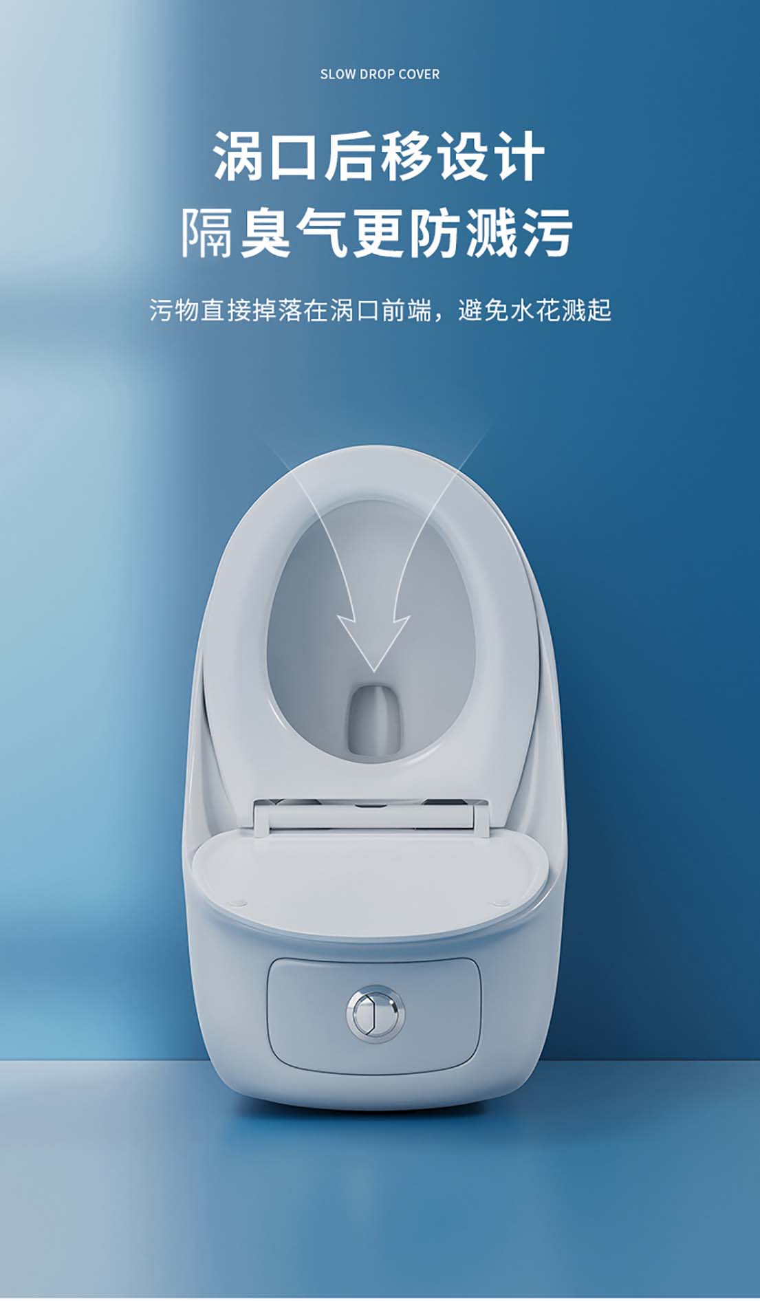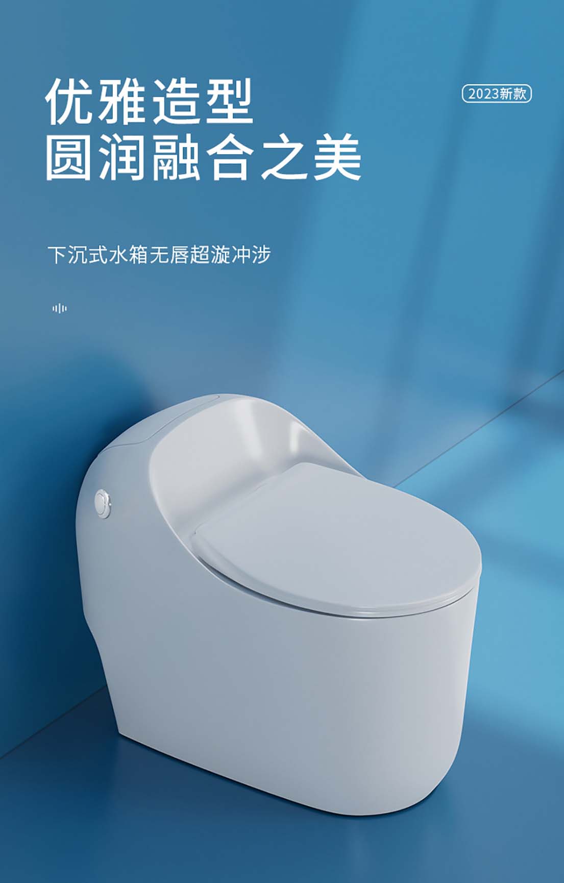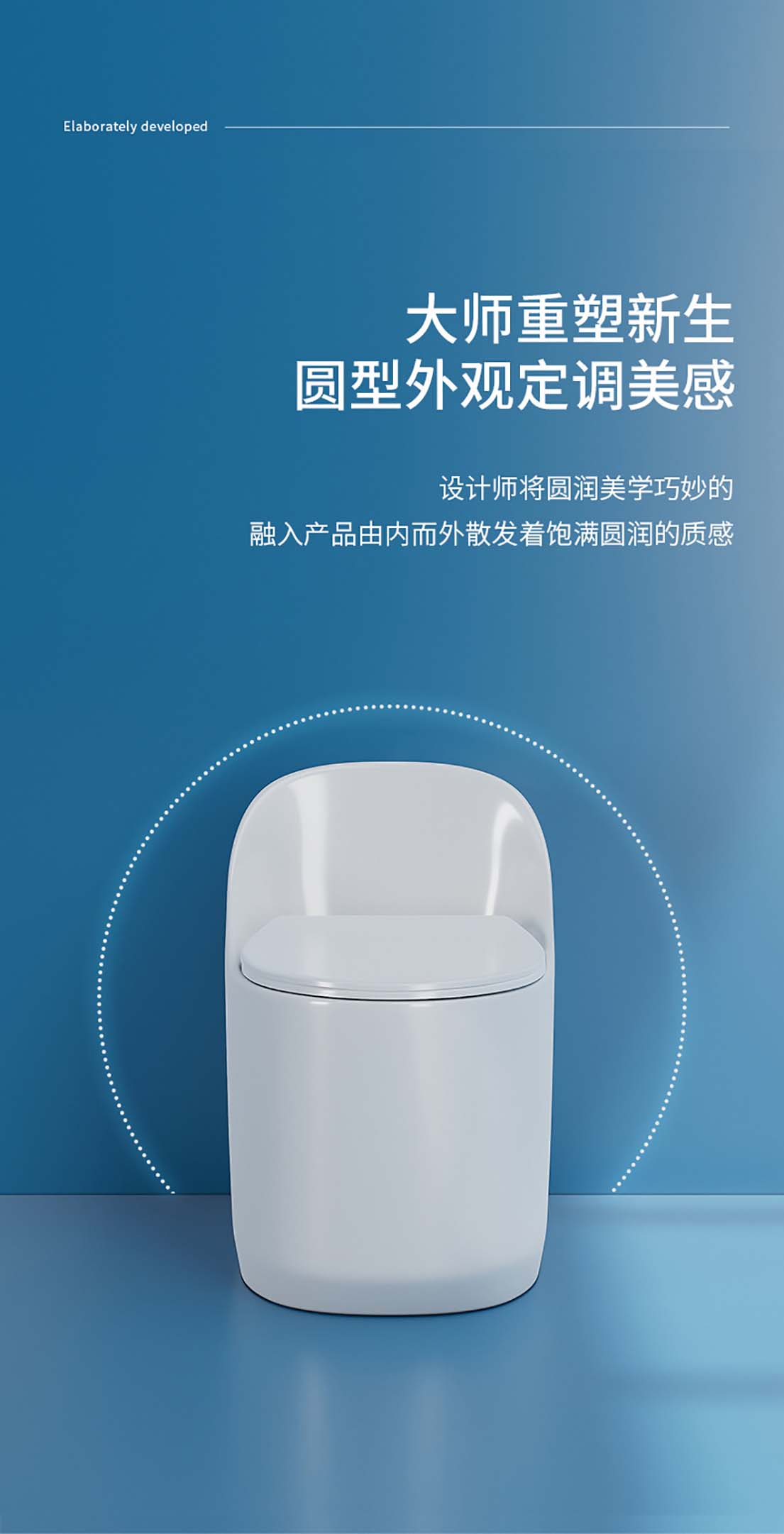 现代简约圆形马桶 个性室内家用防堵连体地排式超漩虹吸式