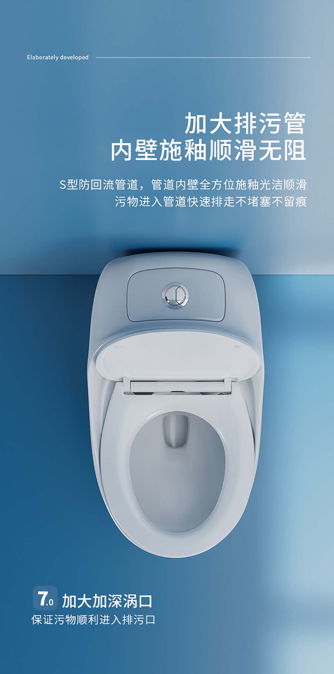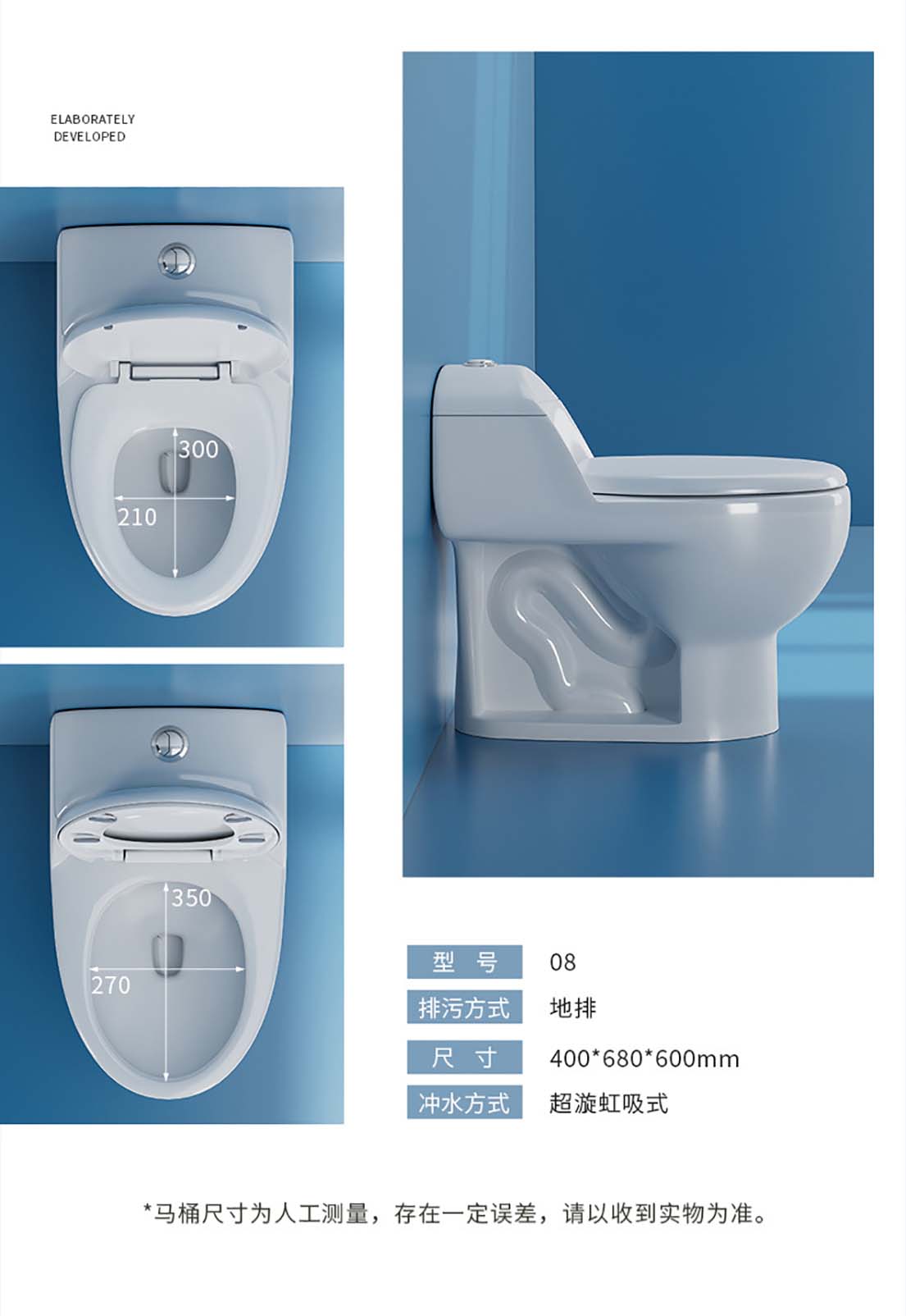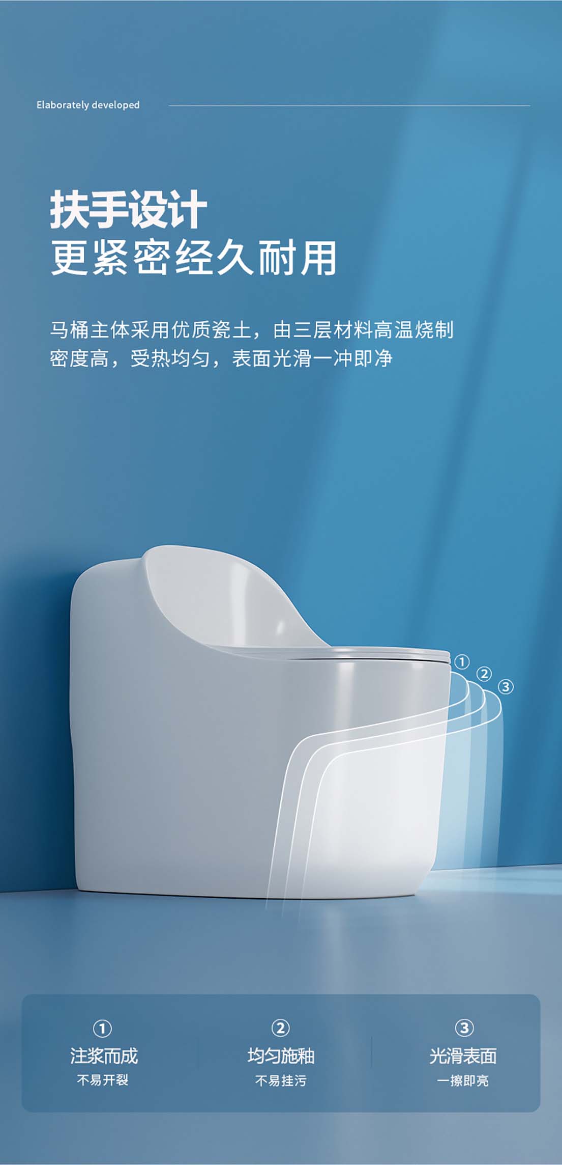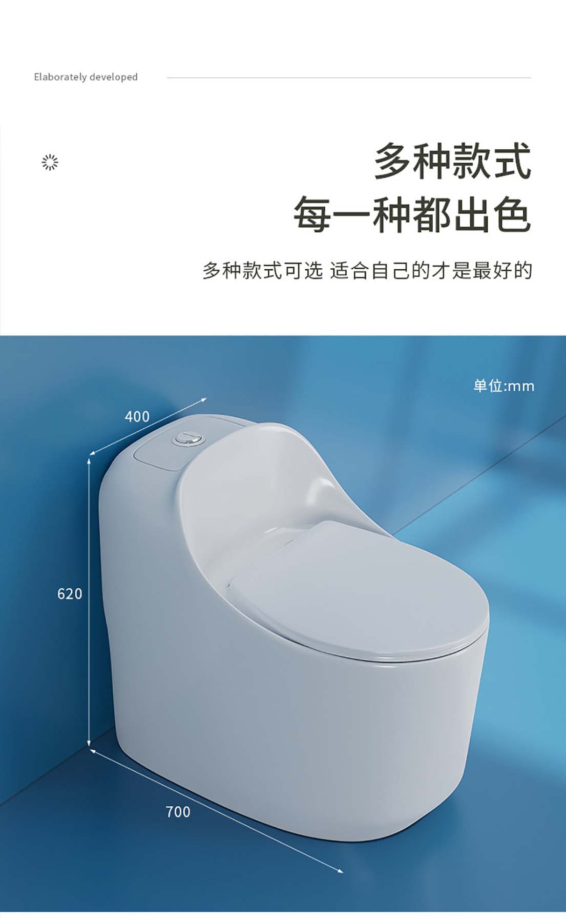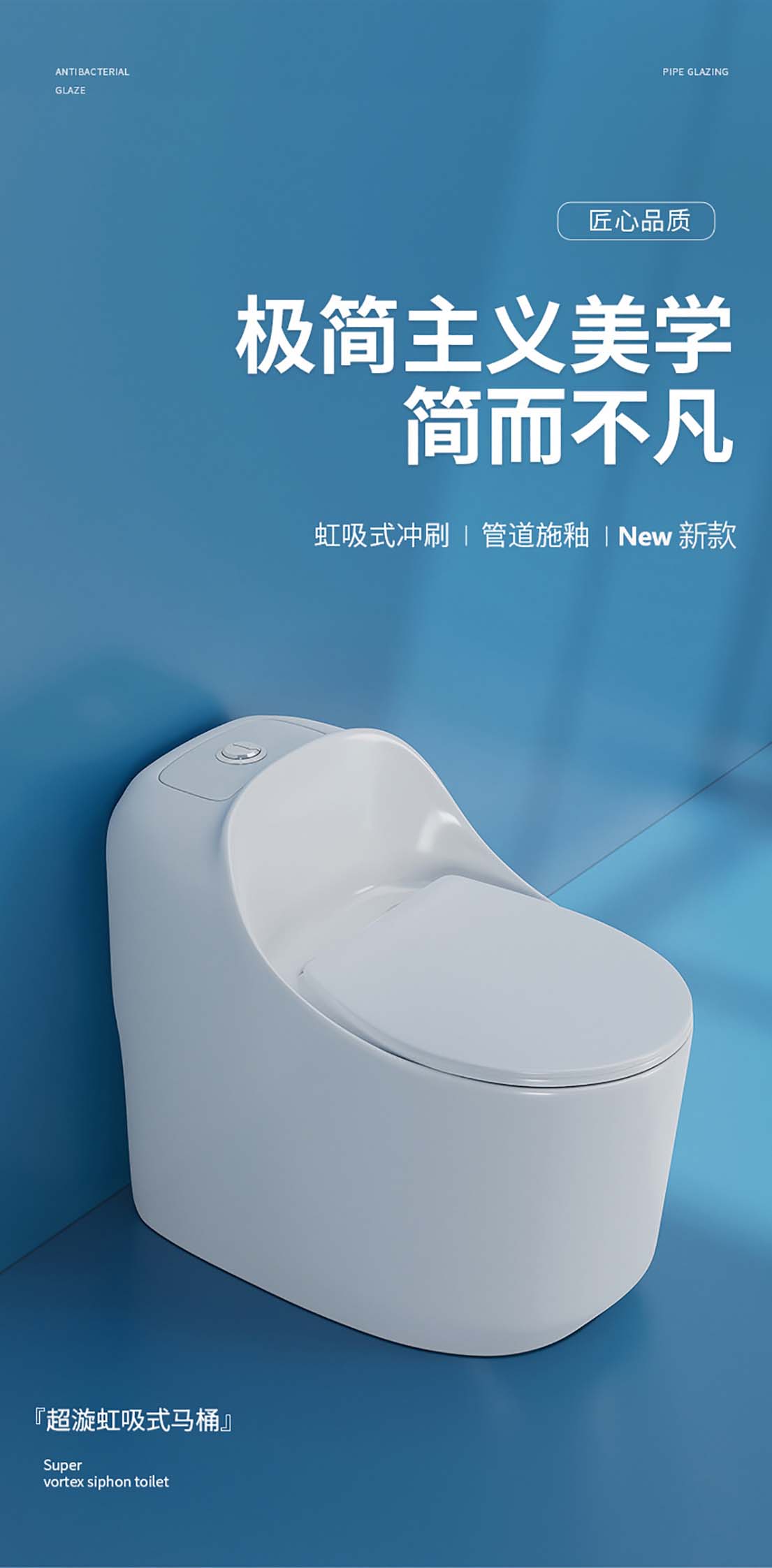 现代简约圆形马桶 个性室内家用防堵连体地排式超漩虹吸式