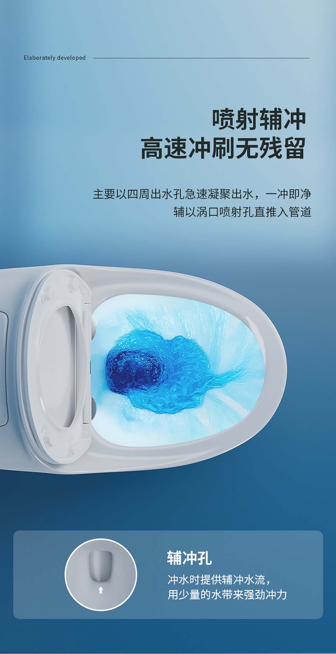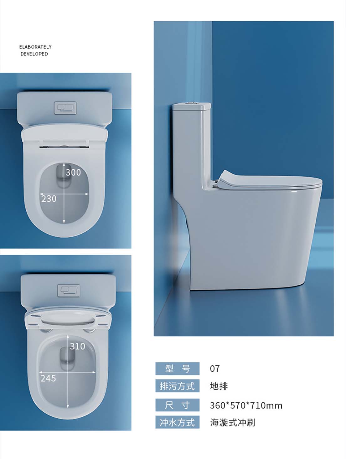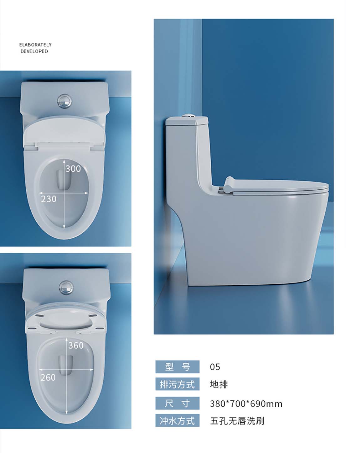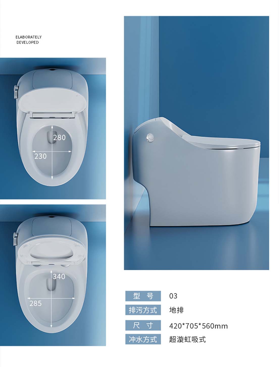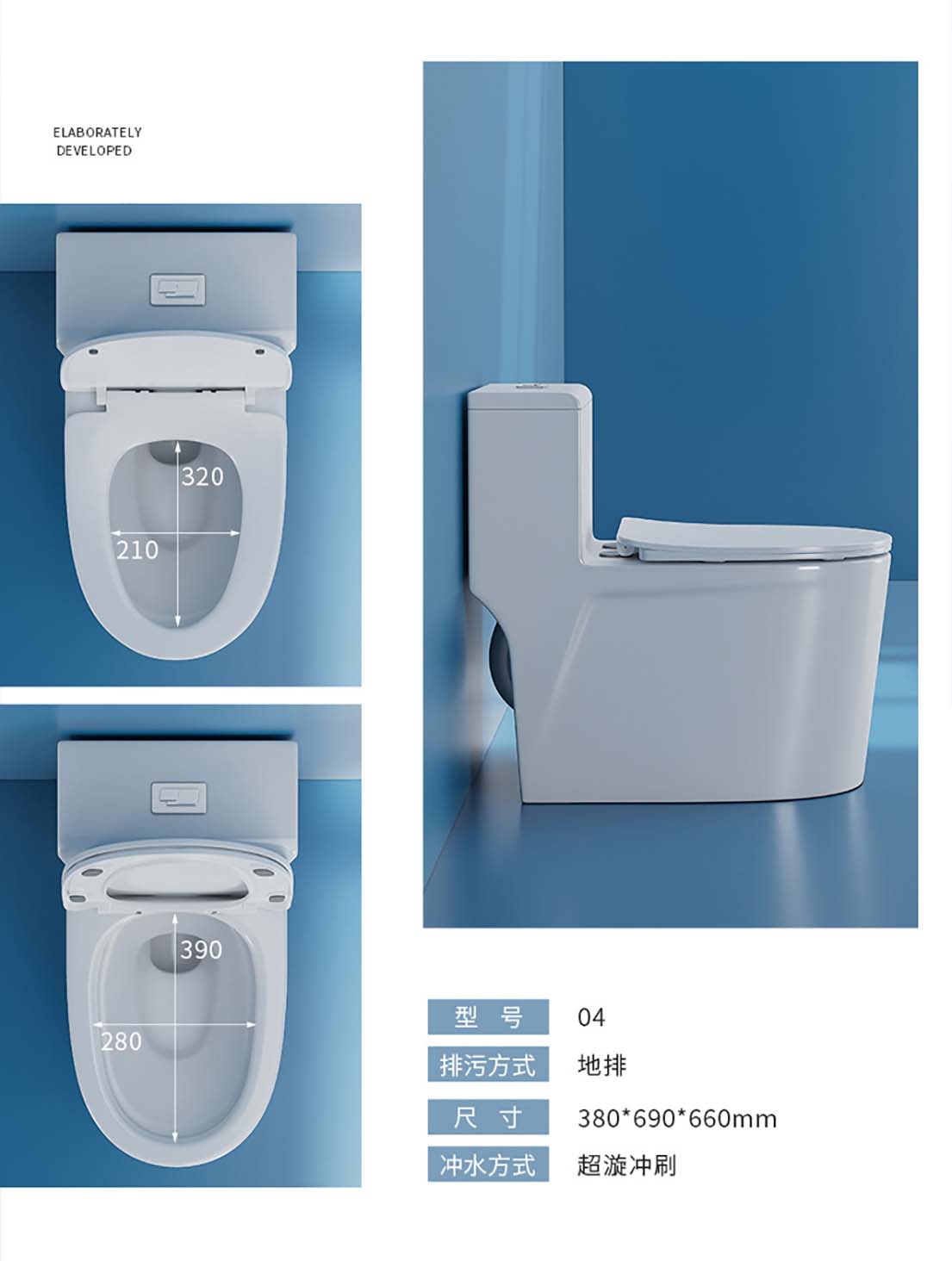 现代简约圆形马桶 个性室内家用防堵连体地排式超漩虹吸式