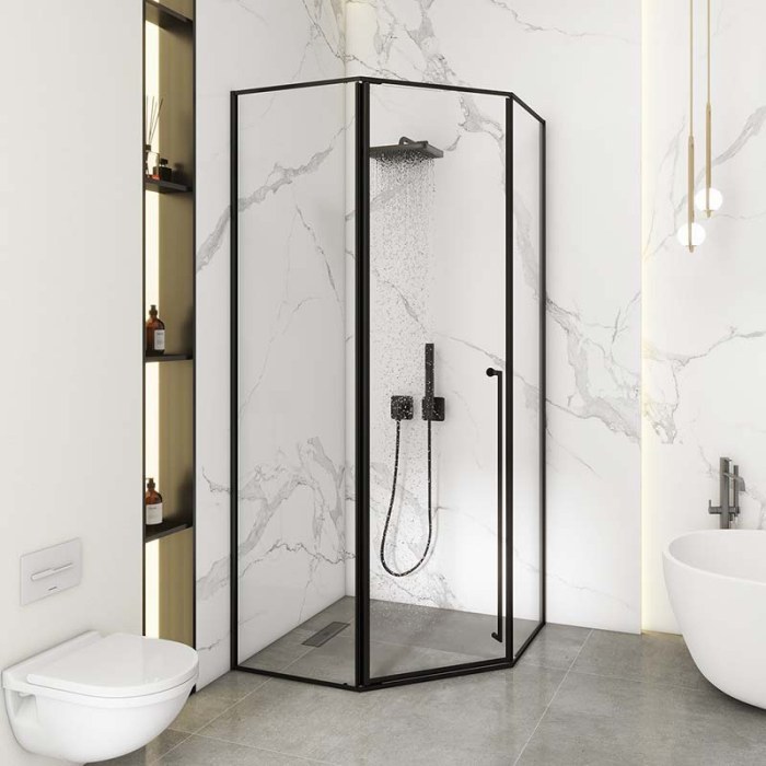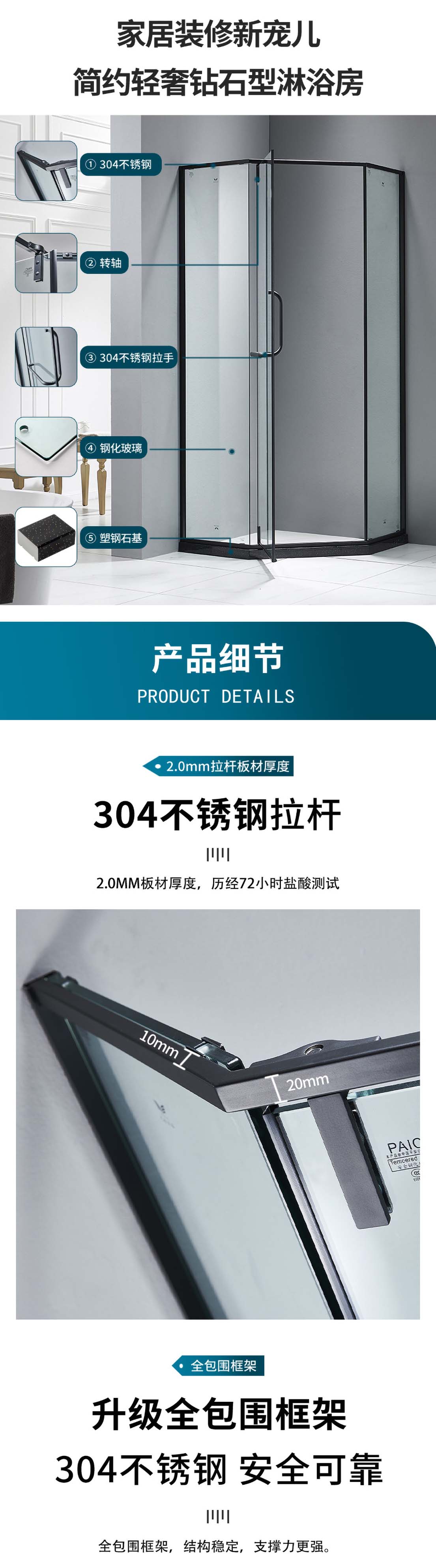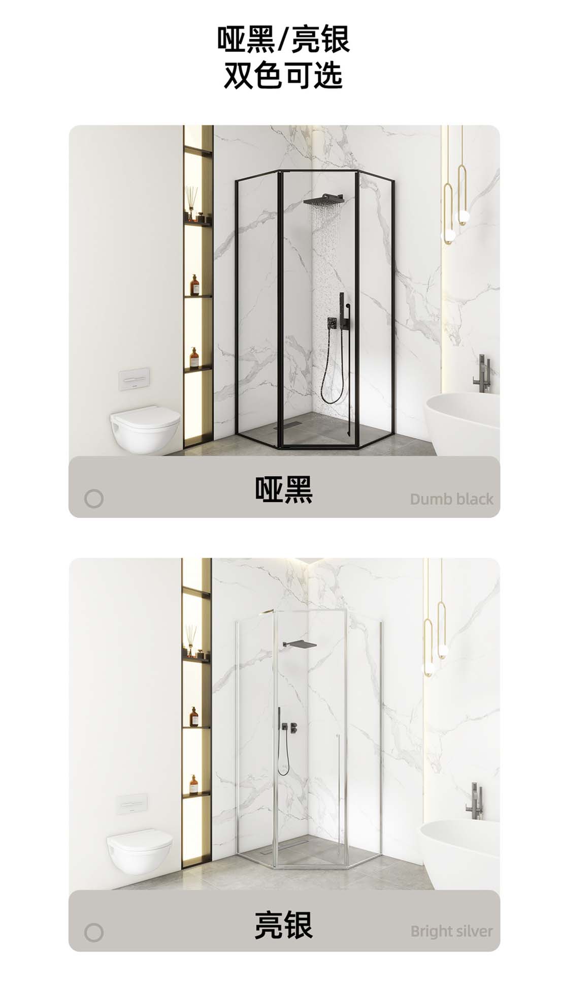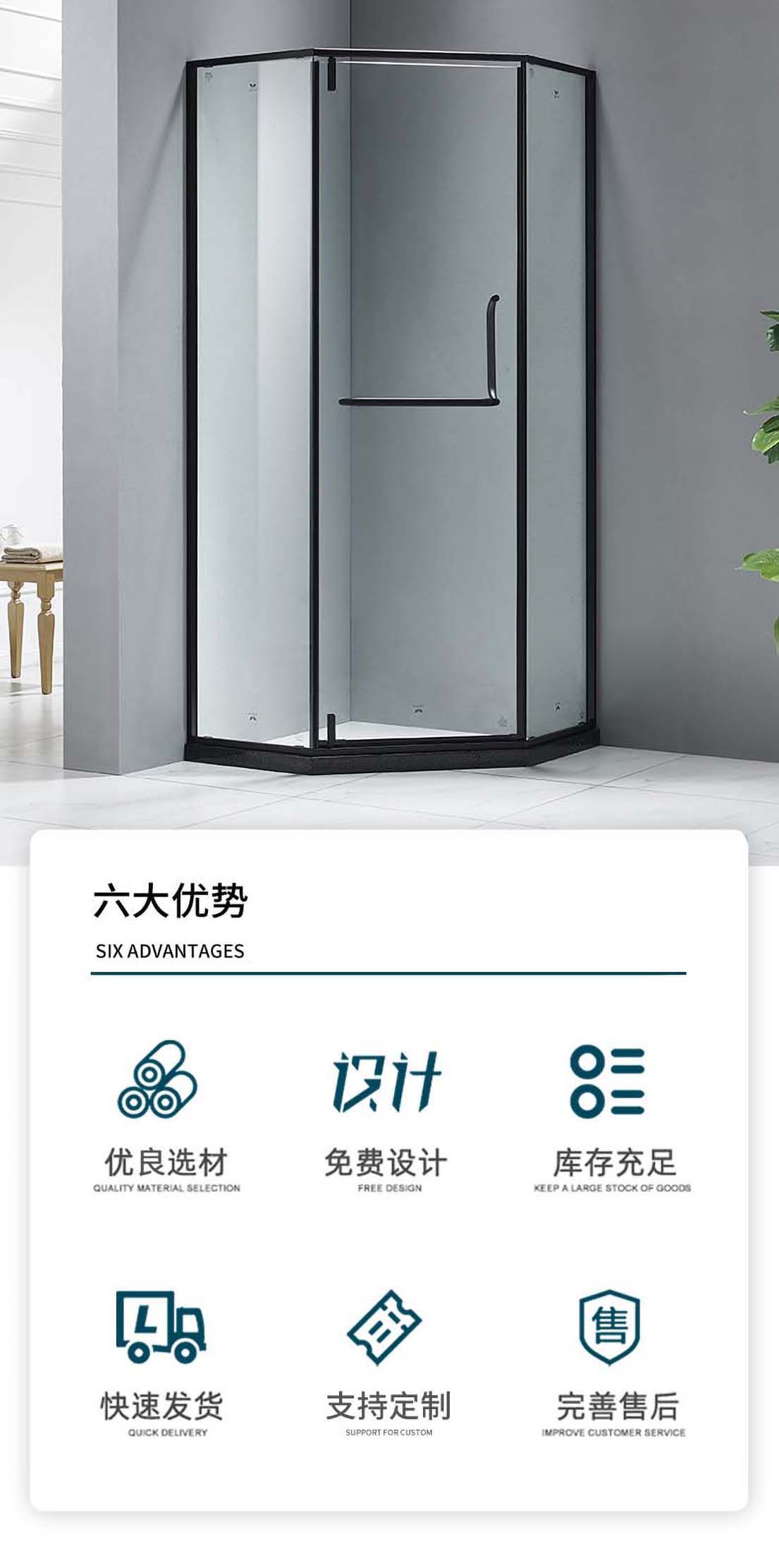 下沉式钻石型淋浴房 干湿分离浴室平开玻璃门洗澡隔断