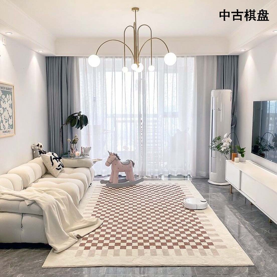 ¥142.80现代简约仿羊绒地毯 客厅卧室棋盘格水晶绒地毯