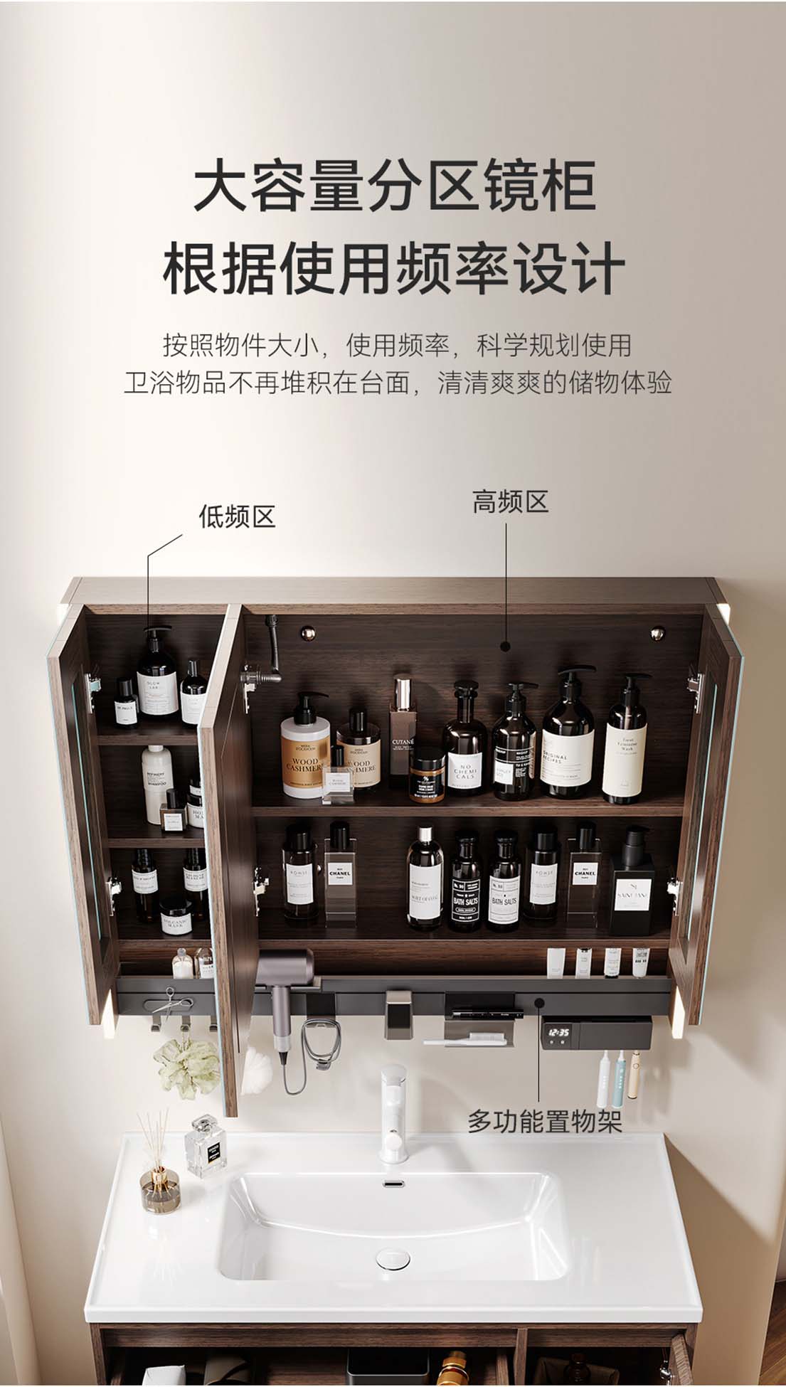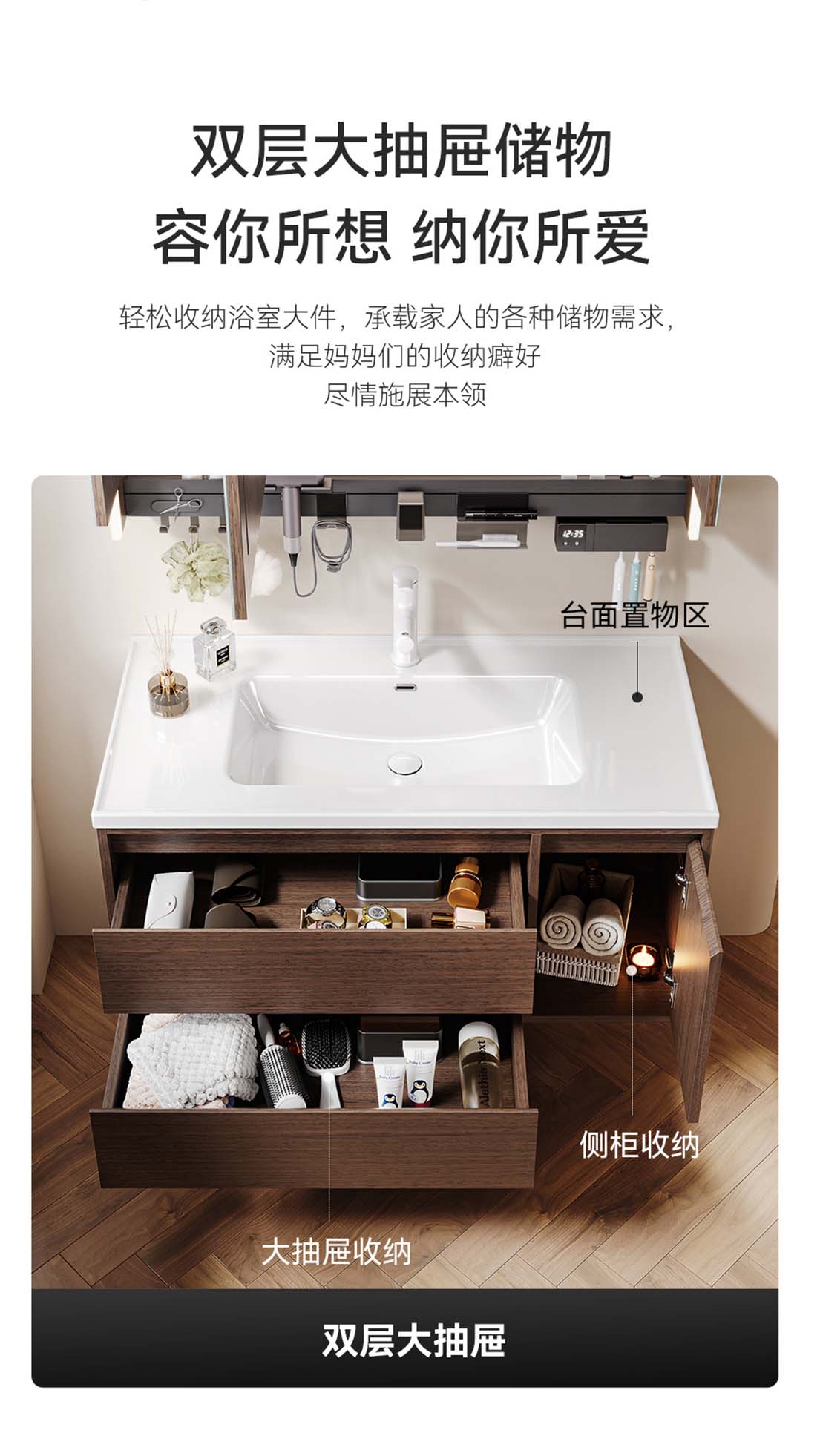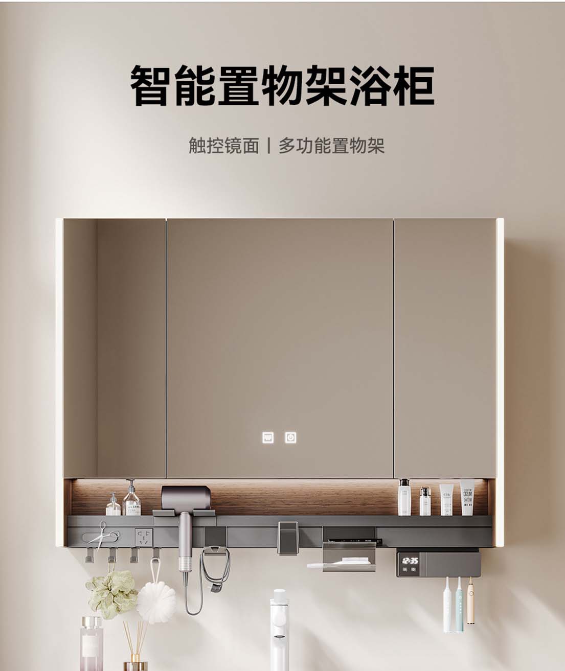 60CM多功能镜柜【实木镜柜】