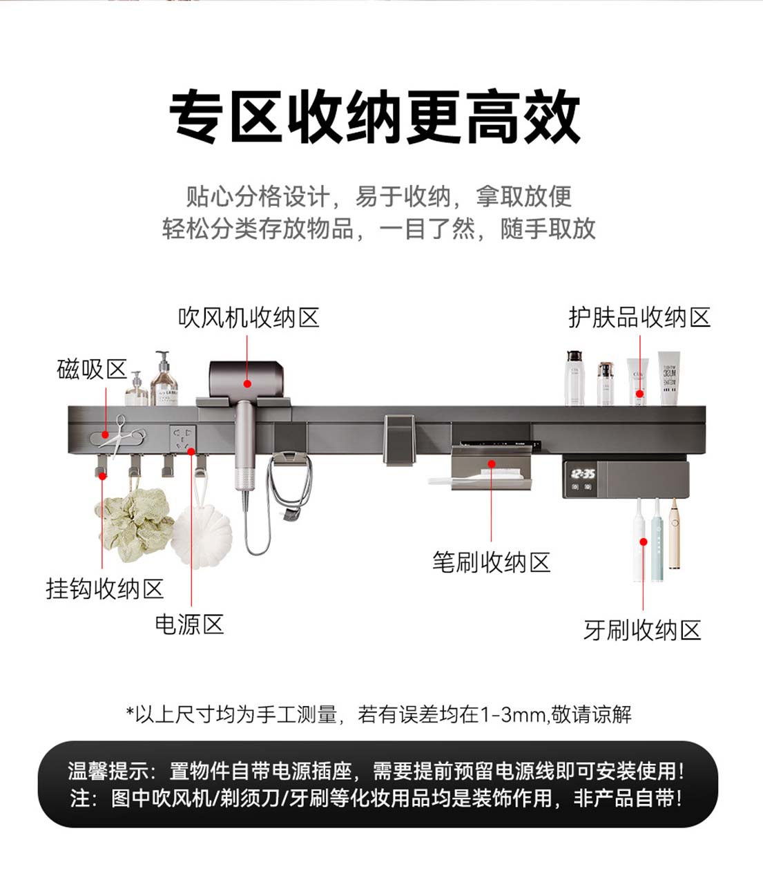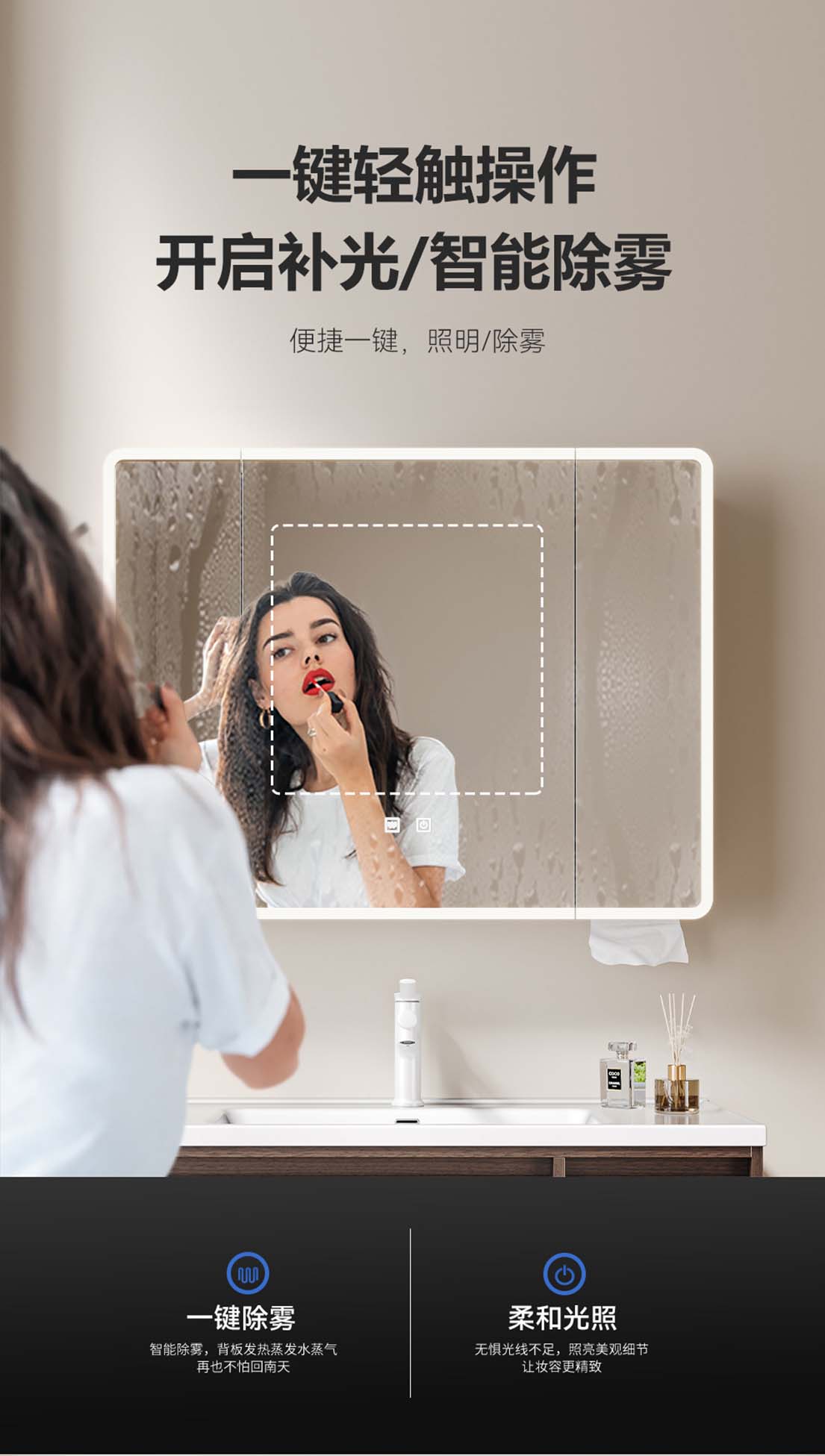 80CM智能圆弧镜柜【碳材质镜柜】