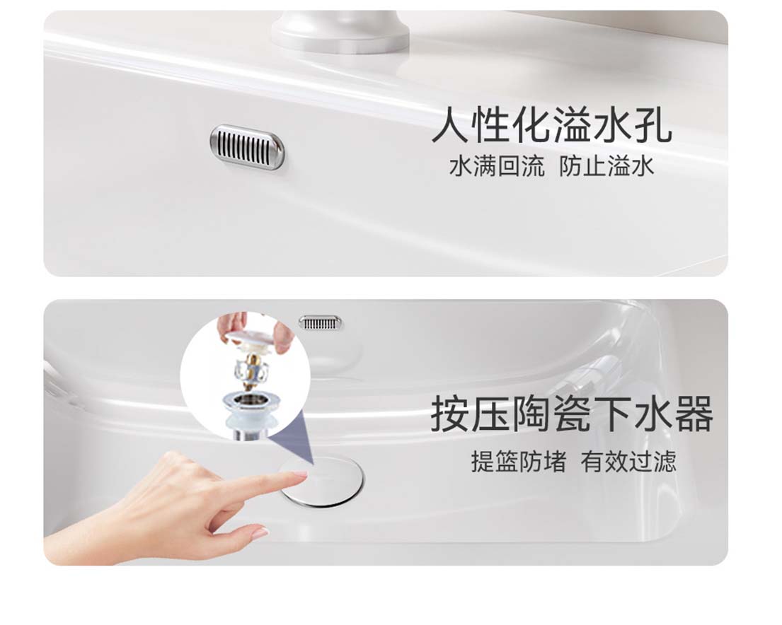 ¥522.00现代简约浴室柜 高级灰与奶油色加厚蜂窝铝材质四边挡水抽屉式洗手盆柜组合
