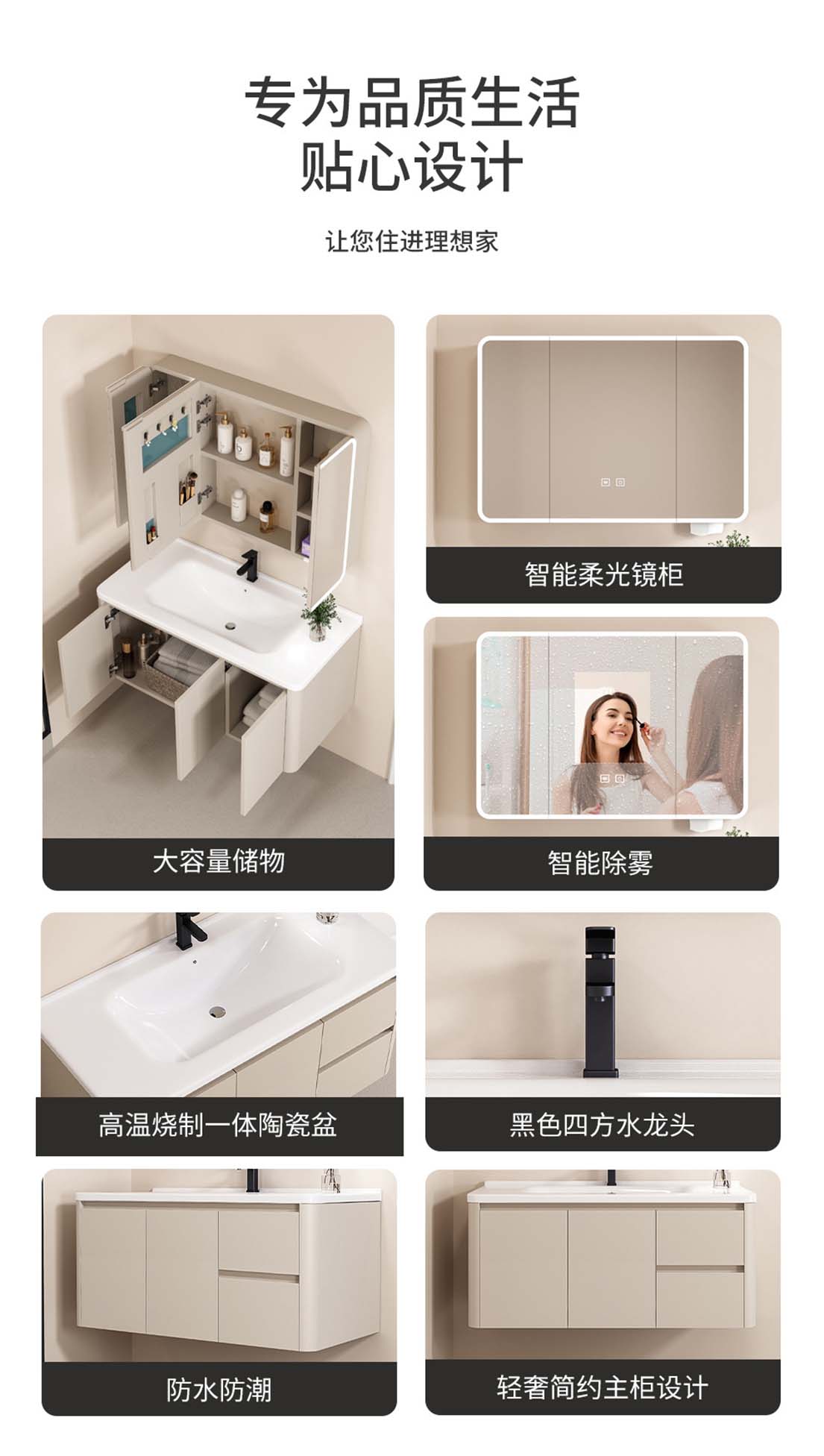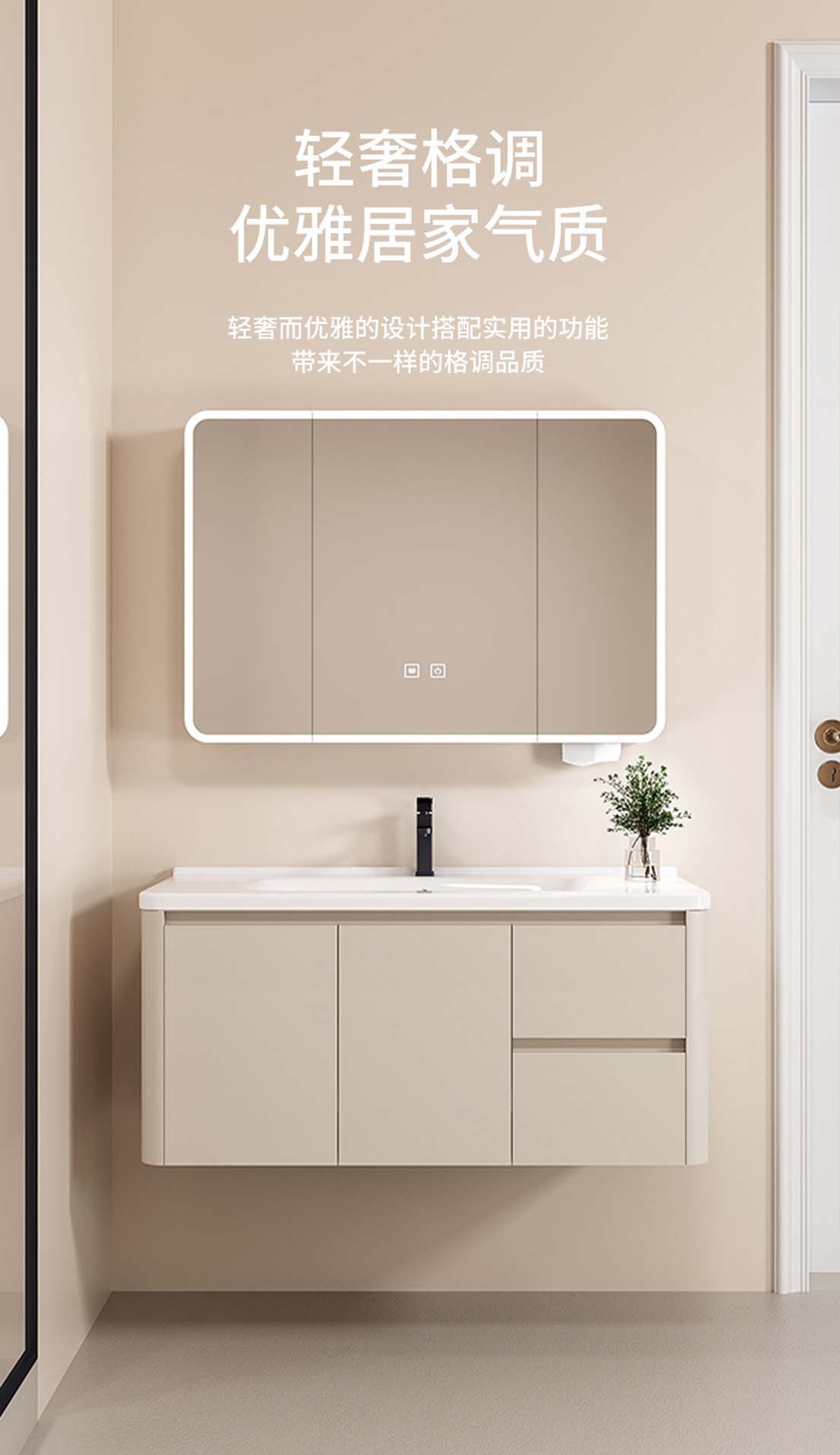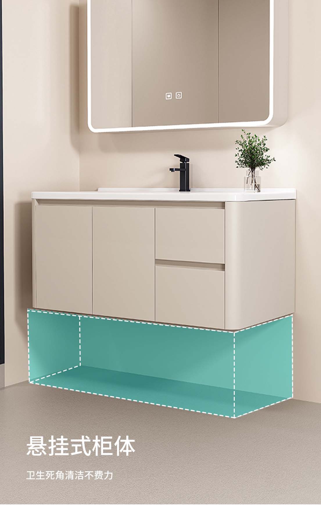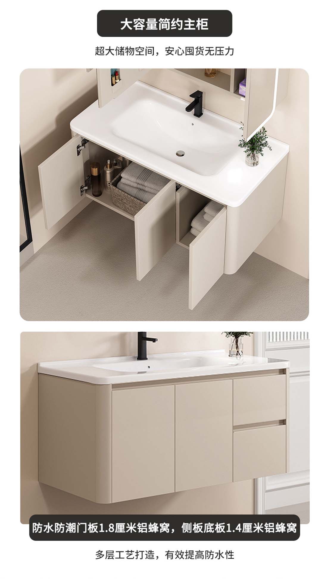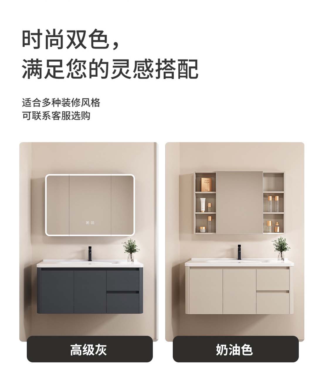 现代简约浴室柜 高级灰与奶油色加厚蜂窝铝材质四边挡水抽屉式洗手盆柜组合