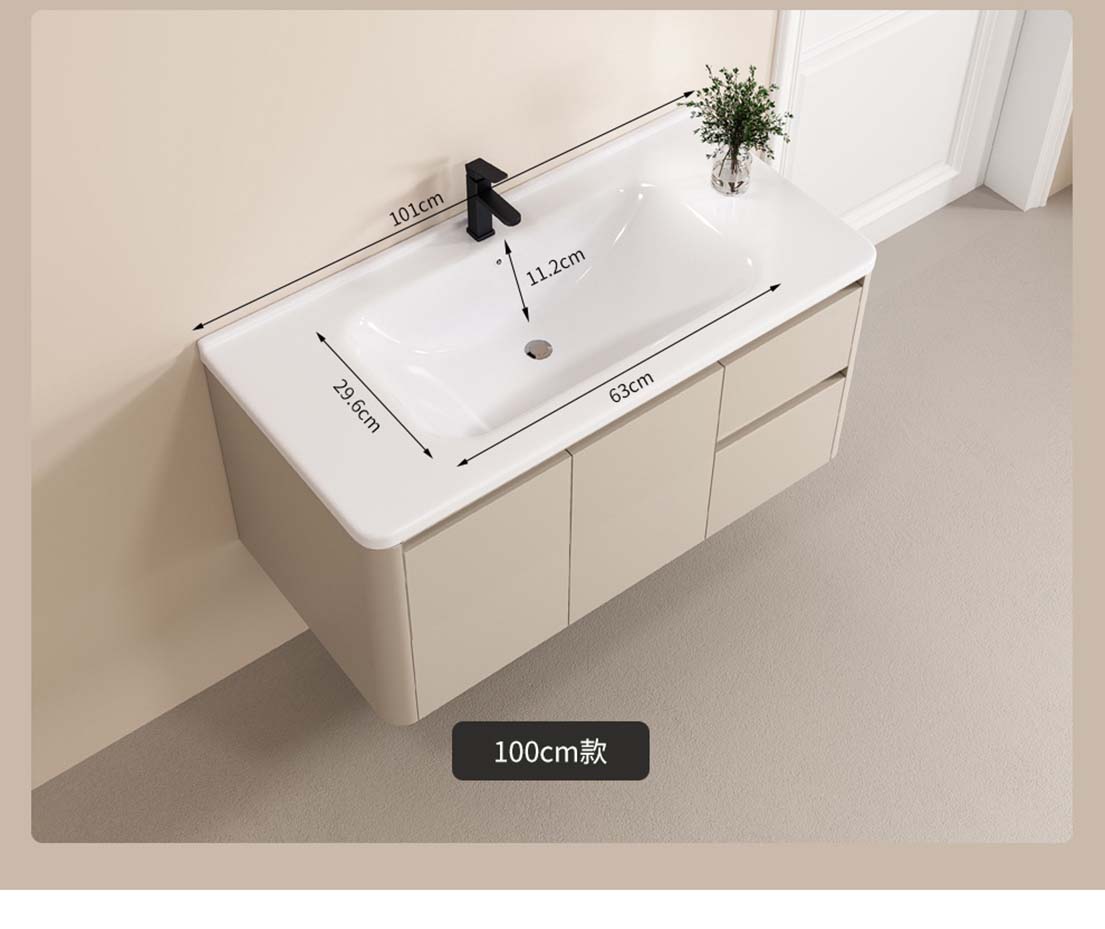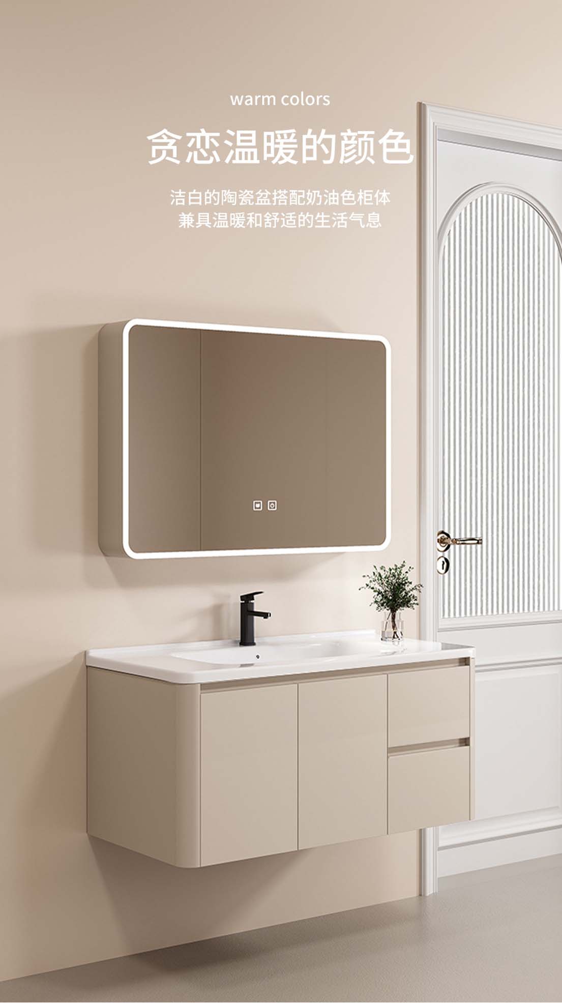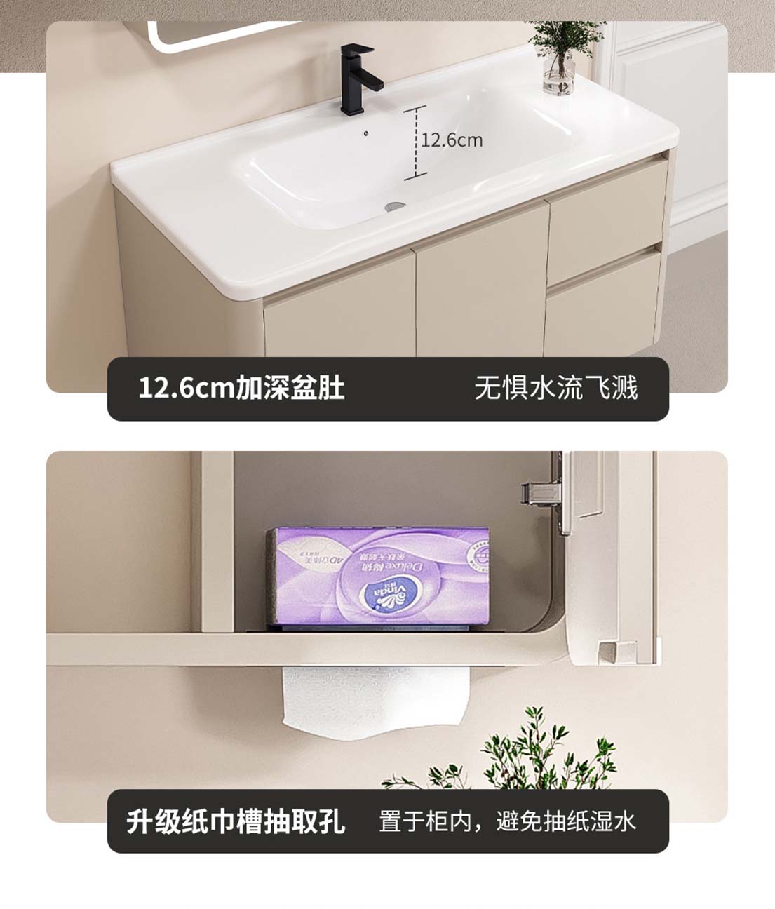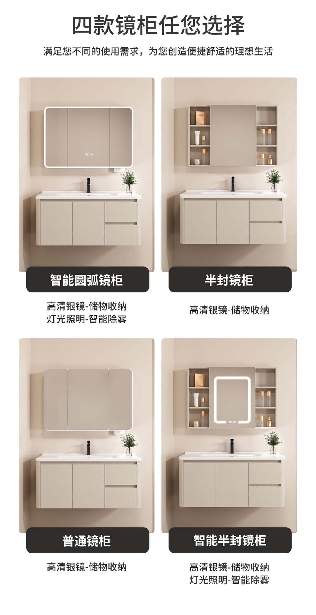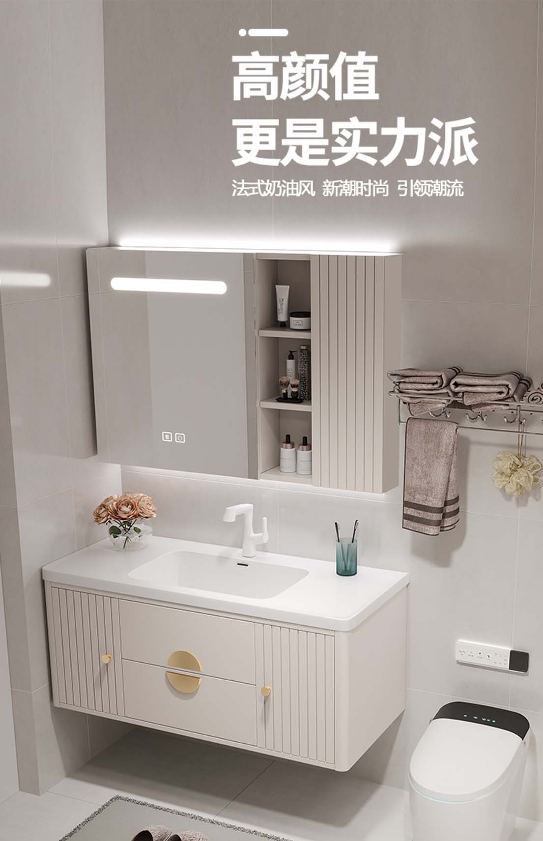 现代简约浴室柜 高级灰与奶油色加厚蜂窝铝材质四边挡水抽屉式洗手盆柜组合