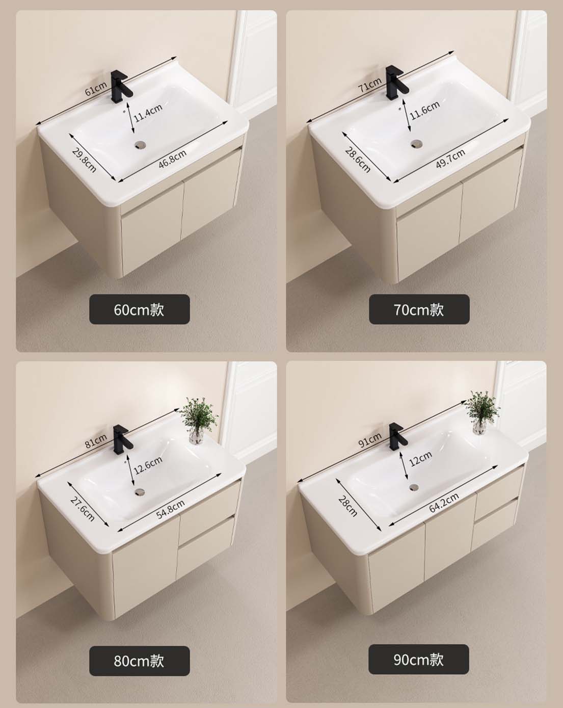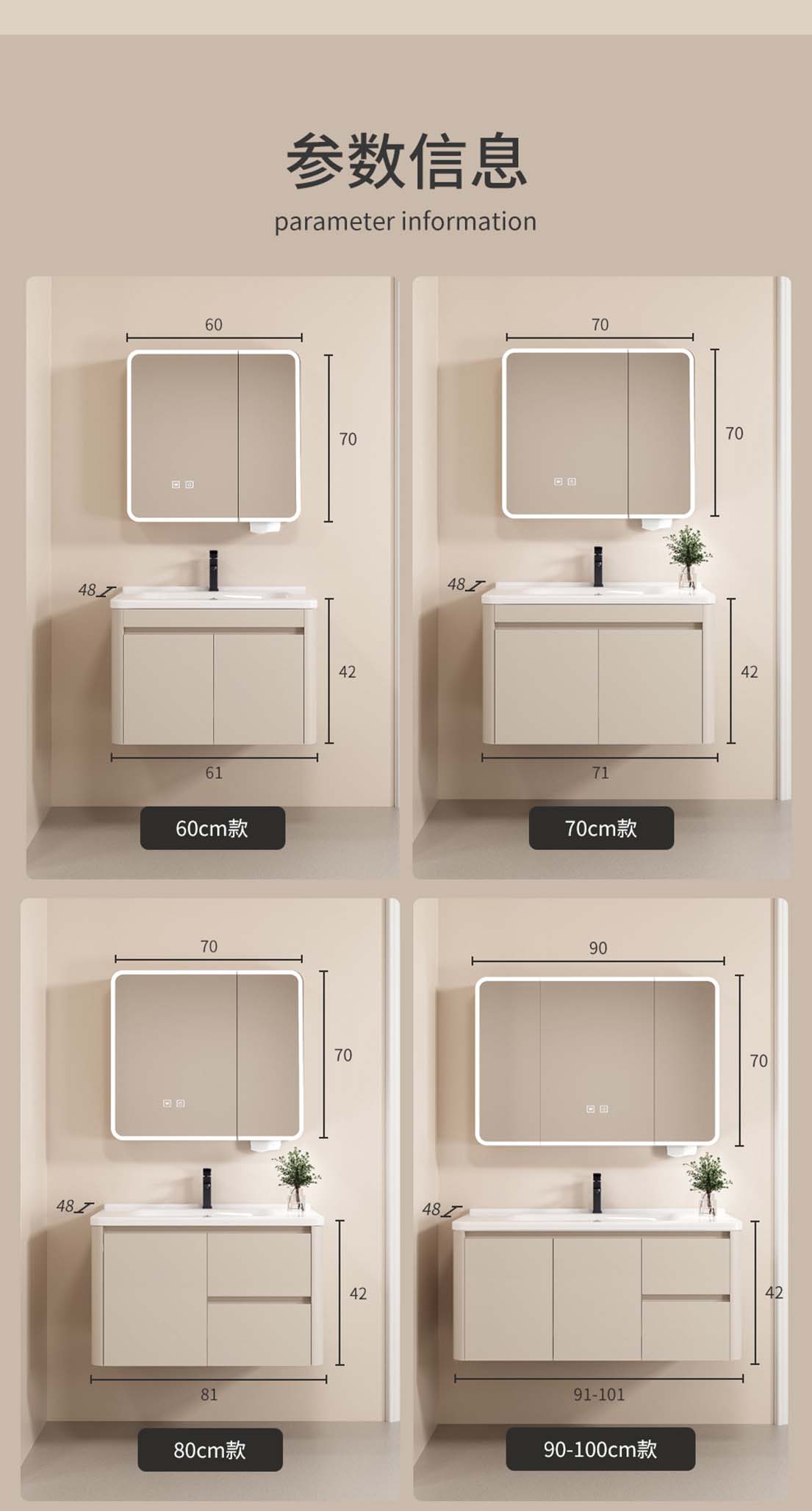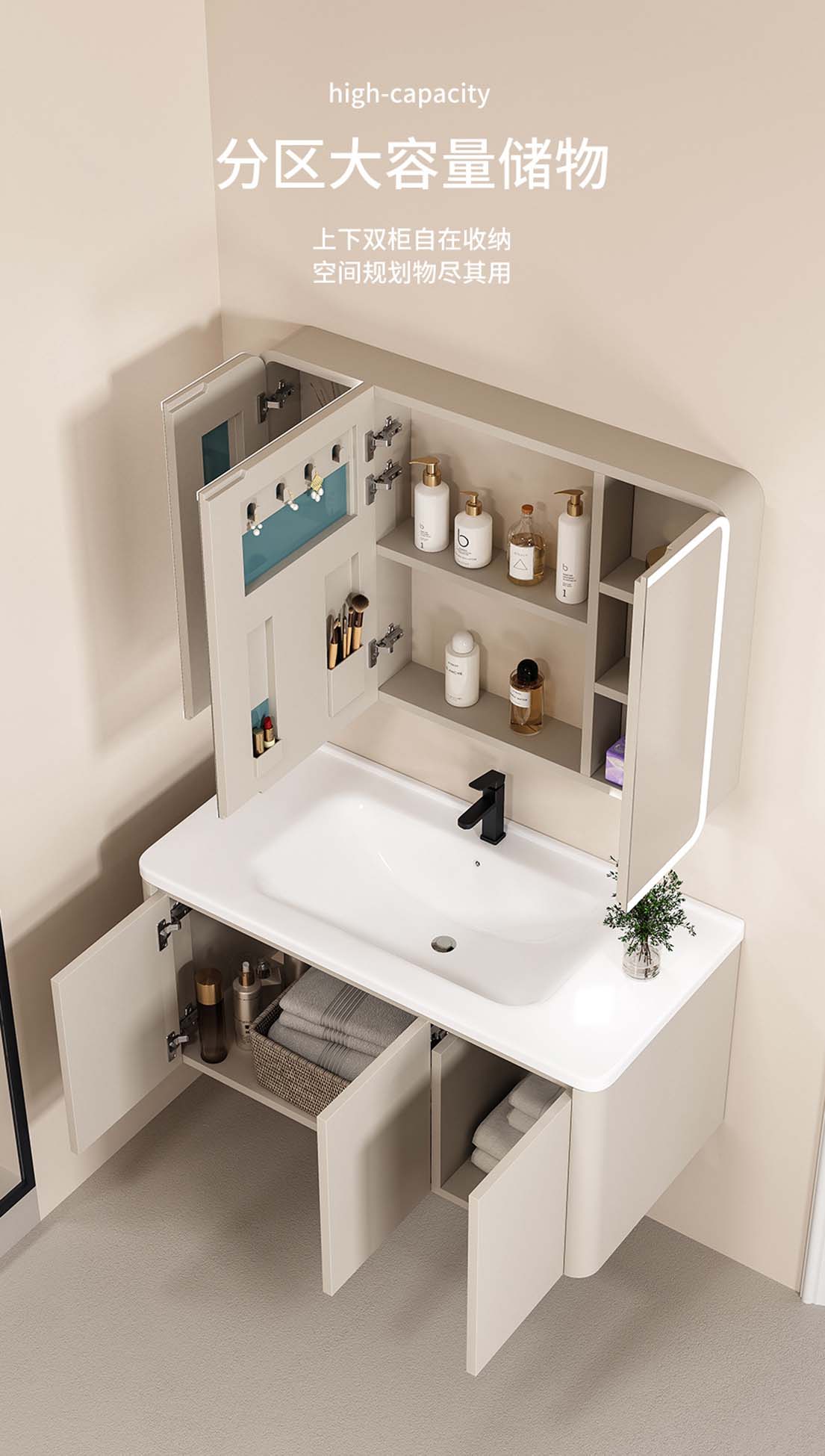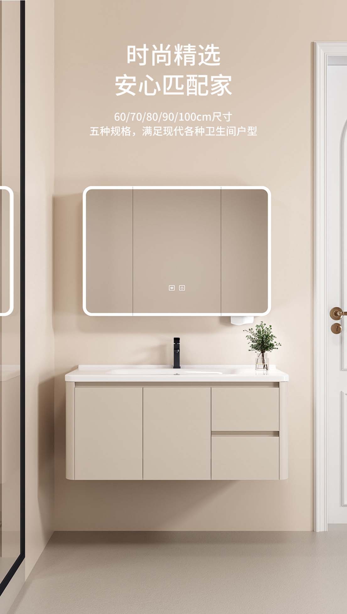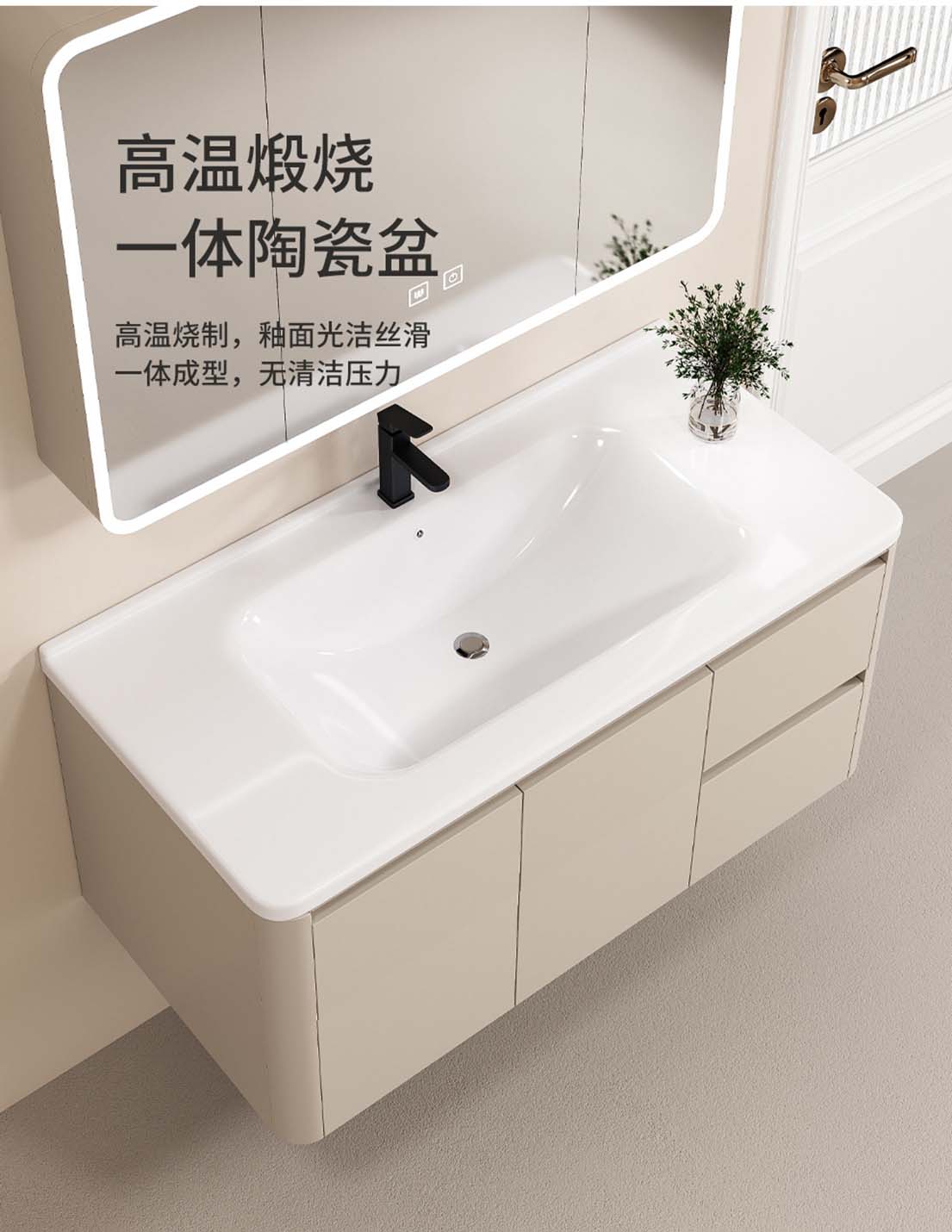 现代简约浴室柜 高级灰与奶油色加厚蜂窝铝材质四边挡水抽屉式洗手盆柜组合