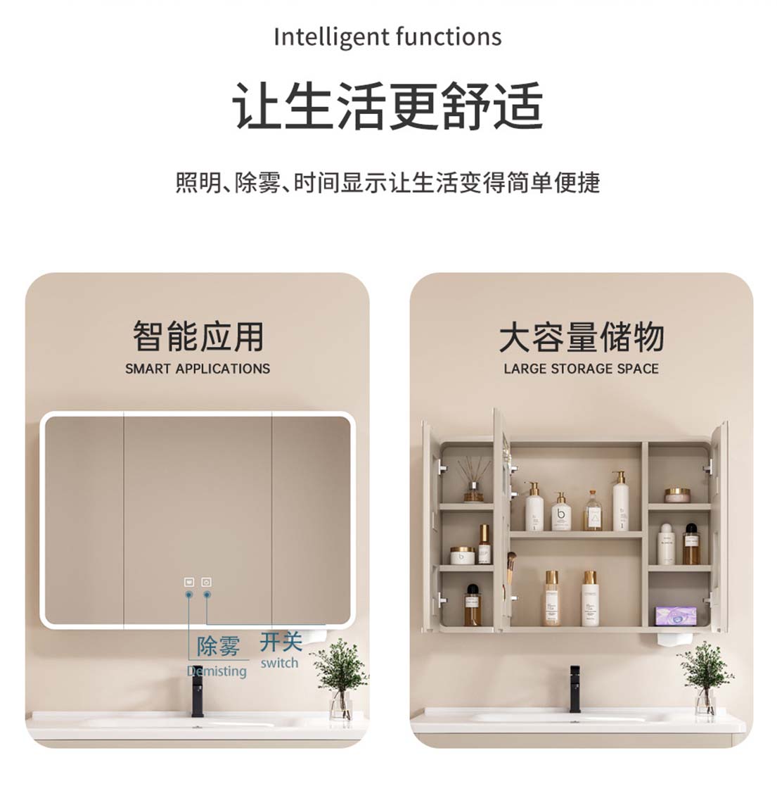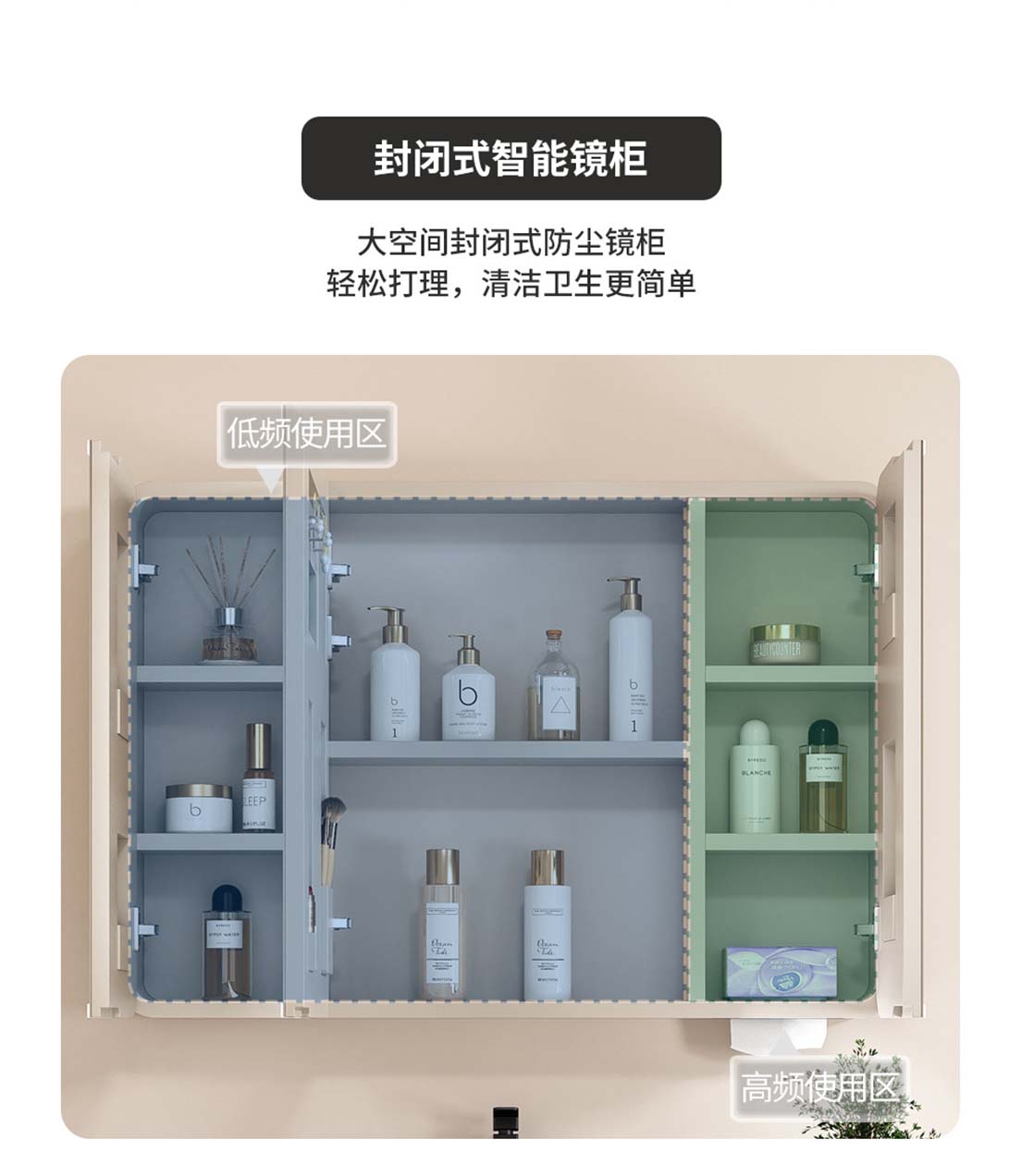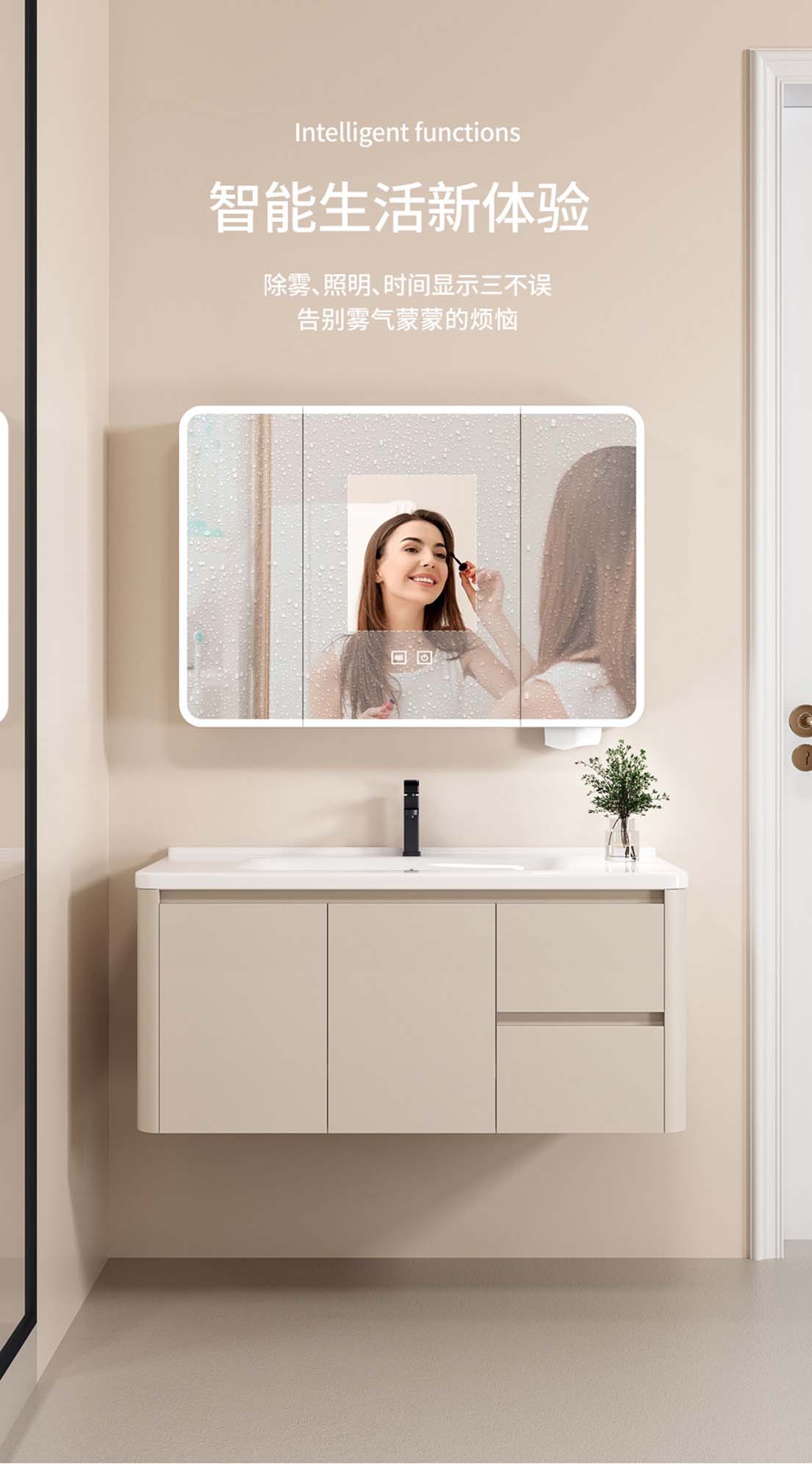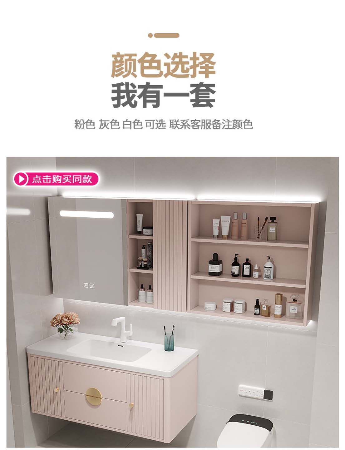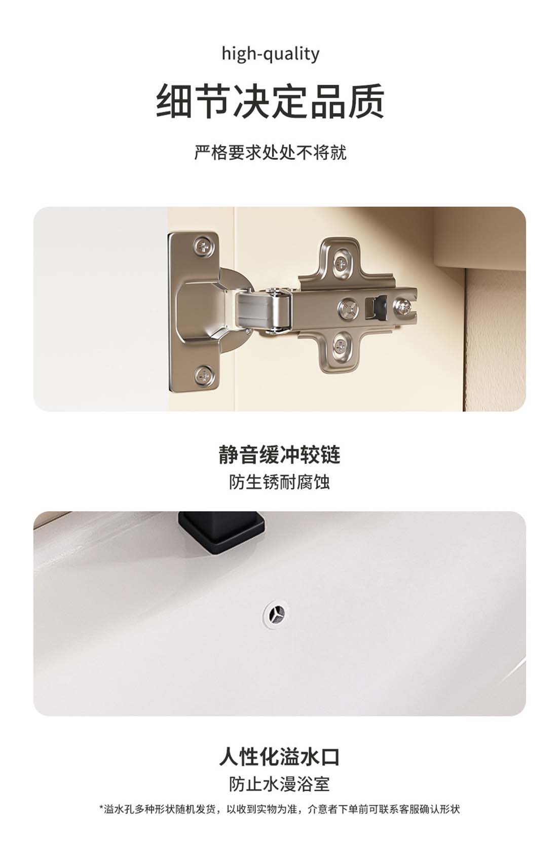 现代简约浴室柜 高级灰与奶油色加厚蜂窝铝材质四边挡水抽屉式洗手盆柜组合