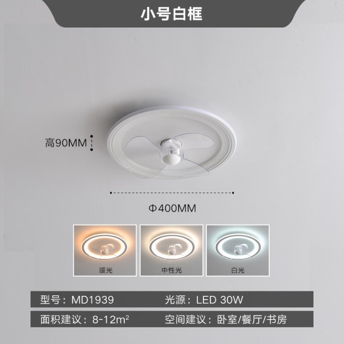 ¥414.00现代简约隐形风扇灯 餐厅卧室书房超薄吊扇全光谱吸顶灯