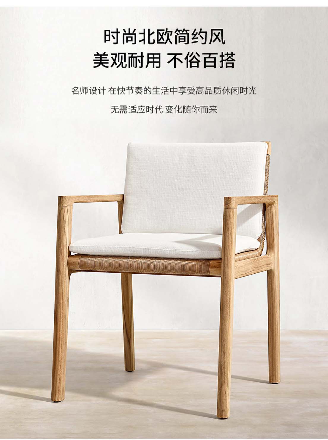 ¥3762.00现代简约户外桌椅 岩板餐桌柚木耐晒网布餐椅组合