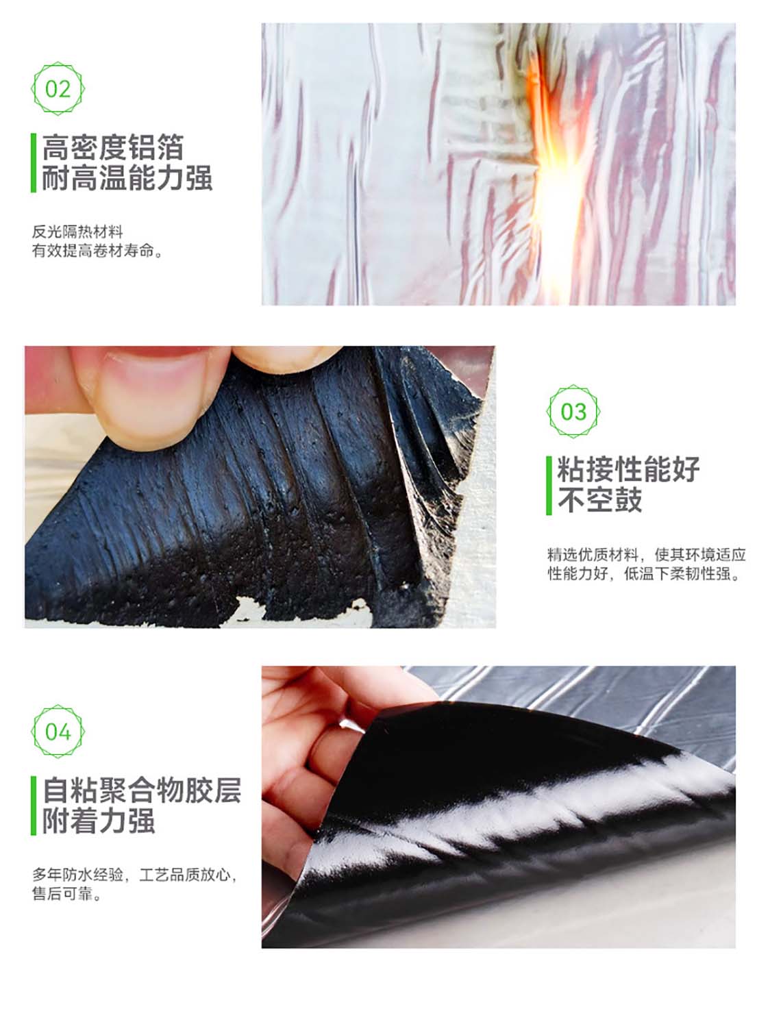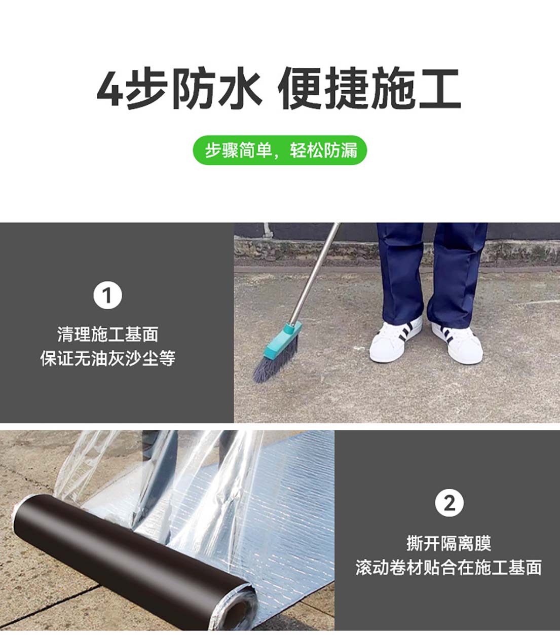 sbs自粘改性沥青防水卷材3mm免火烤彩钢瓦屋顶自粘式防水补漏材料