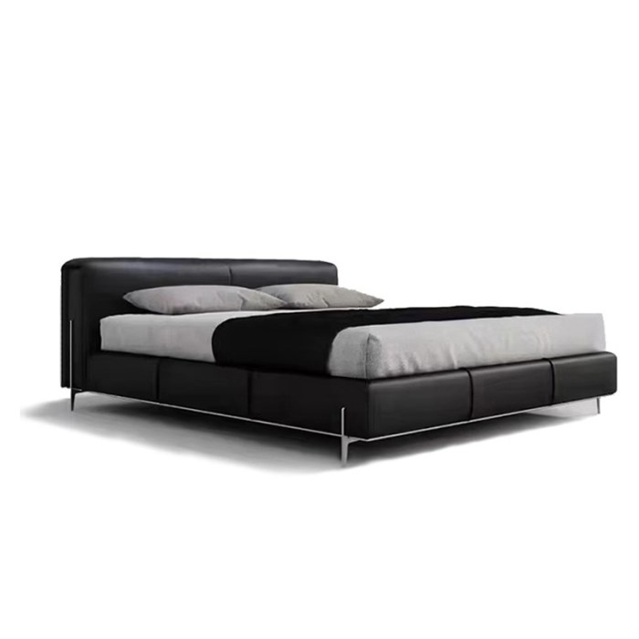 意式简约真皮床高端主卧设计师大黑牛双人床软包床头真皮床
