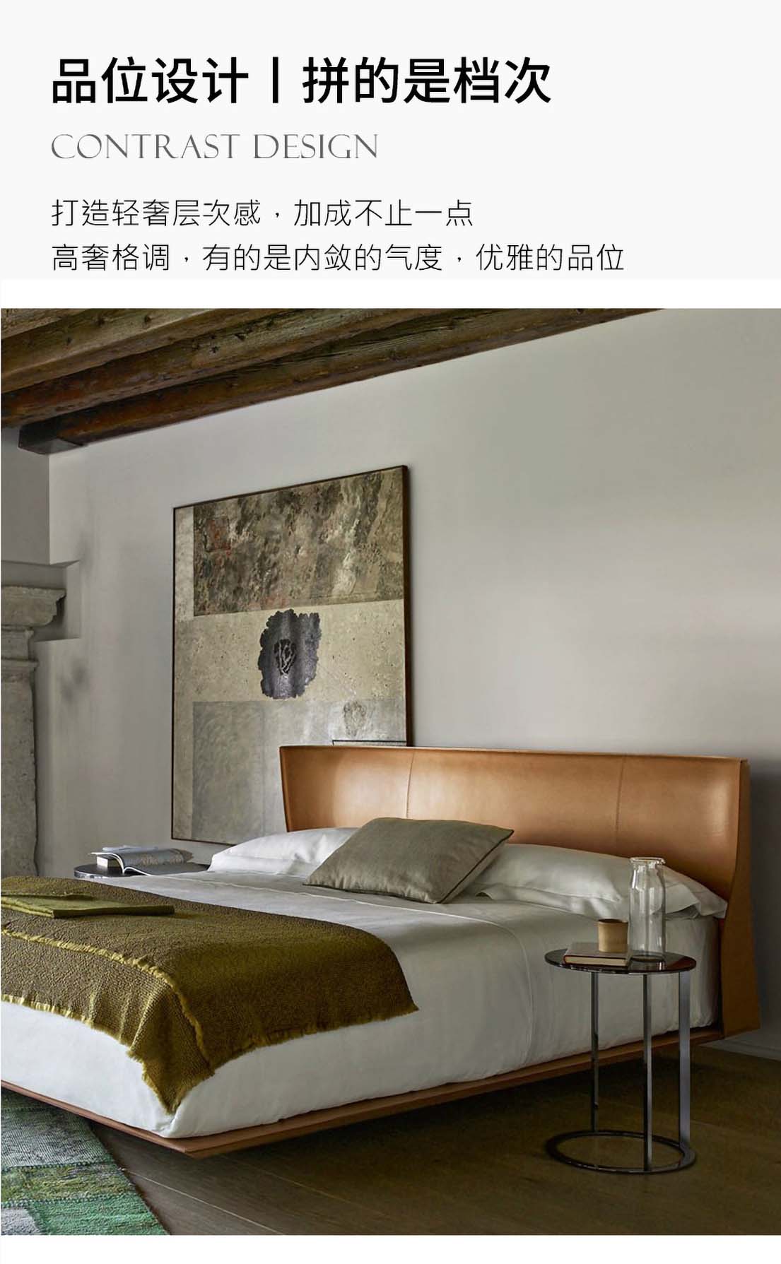 意式简约悬浮床马鞍皮床奢华双人真皮床