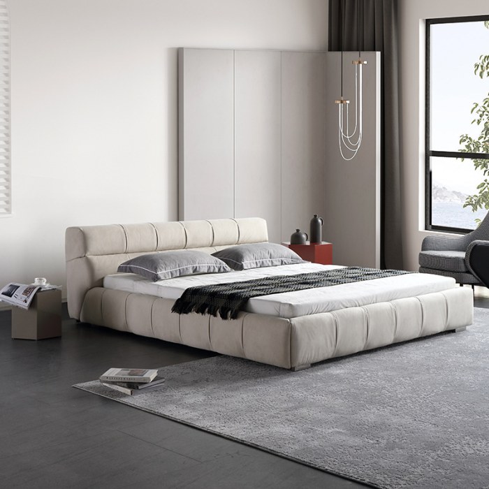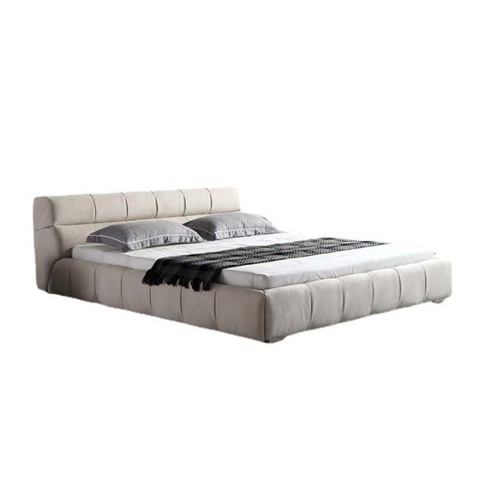 意式简约泡芙床全磨砂绒真皮床现代卧室布艺软包双人床