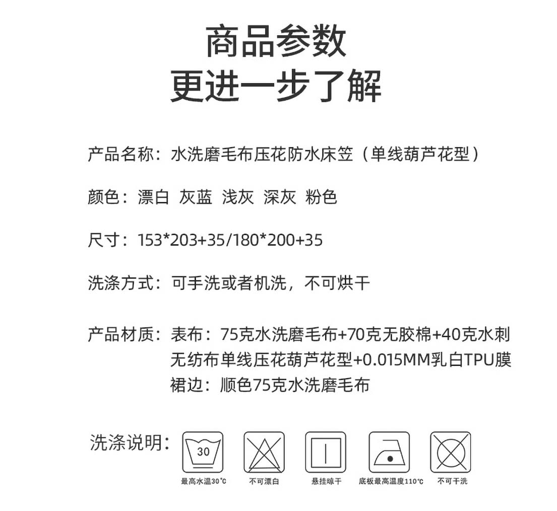 涤棉磨毛布压花防水床笠吸湿透气防螨床垫保护套