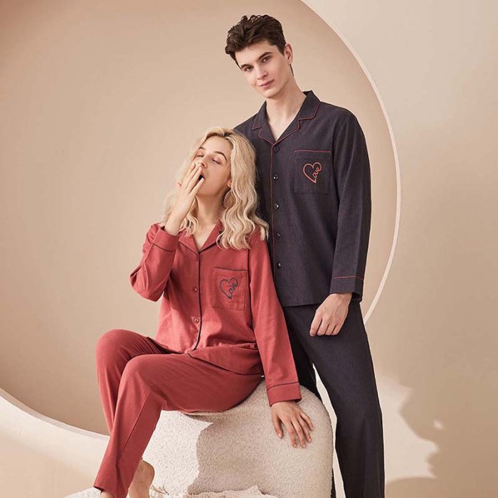 ¥174.00春秋宽松长袖纯色莫代尔家居服情侣睡衣 休闲居家男士女士睡衣套装