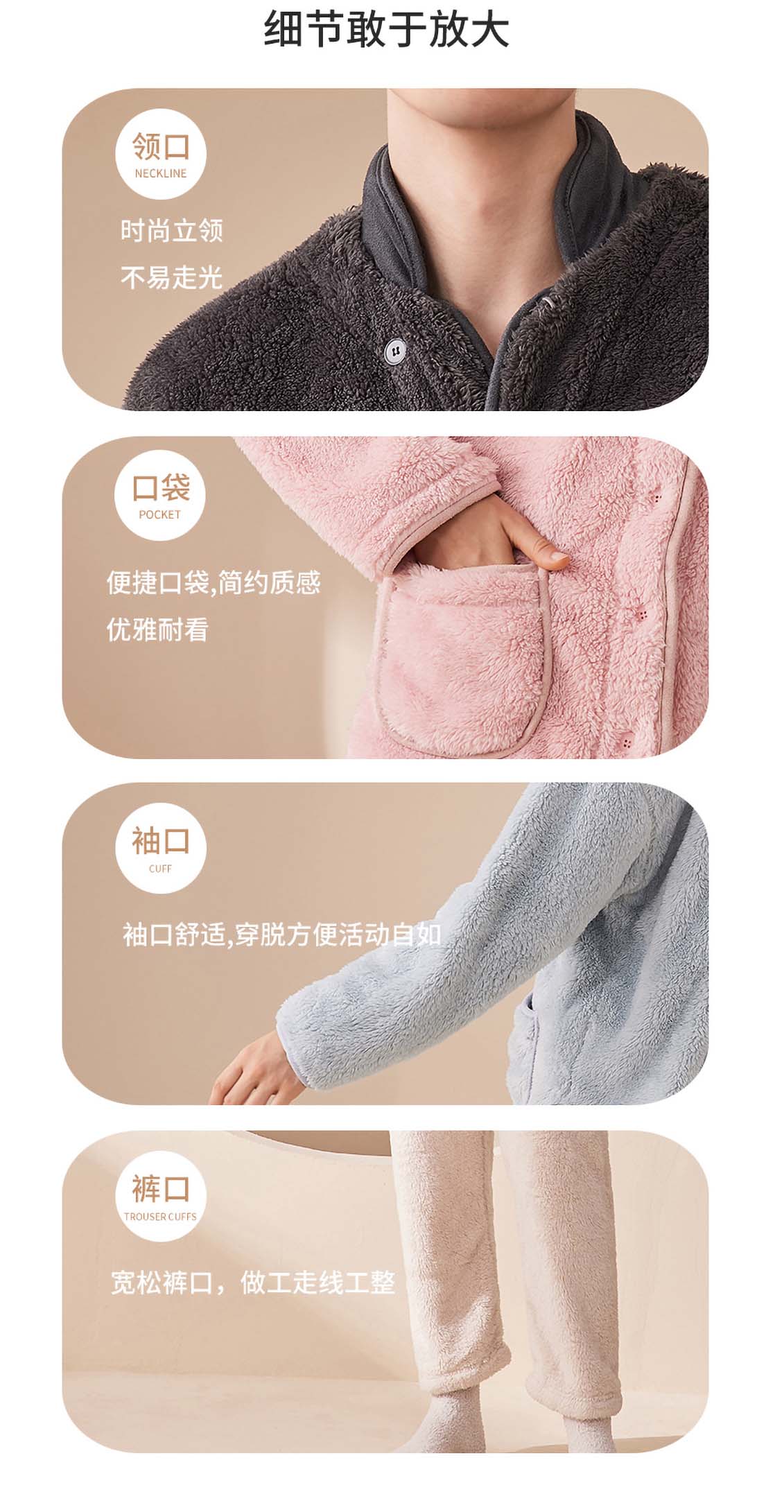 秋冬季珊瑚绒保暖睡衣 法兰绒加厚软绵绵男女情侣家居服套装
