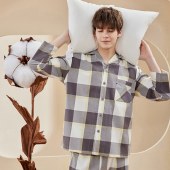 ¥189.60春秋季A类纯棉磨毛梭织格情侣睡衣 全棉秋季男女睡衣家居服套装