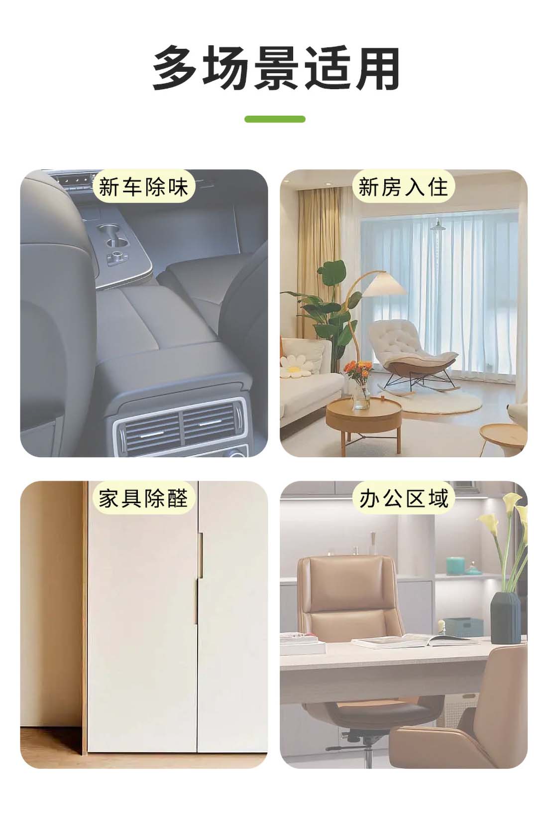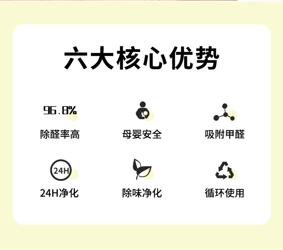 | 功能 | 除甲醛、苯、TVOC等净化空气 |