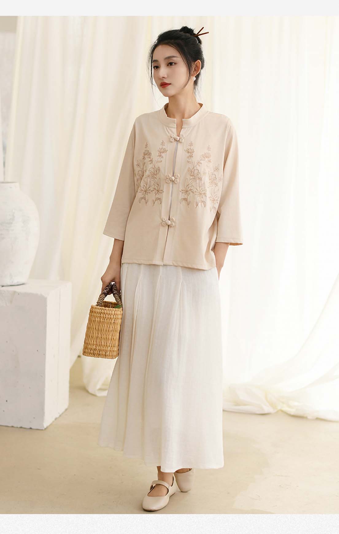 ¥276.00春夏新中式棉麻女装 气质复古国风亚麻衬衫