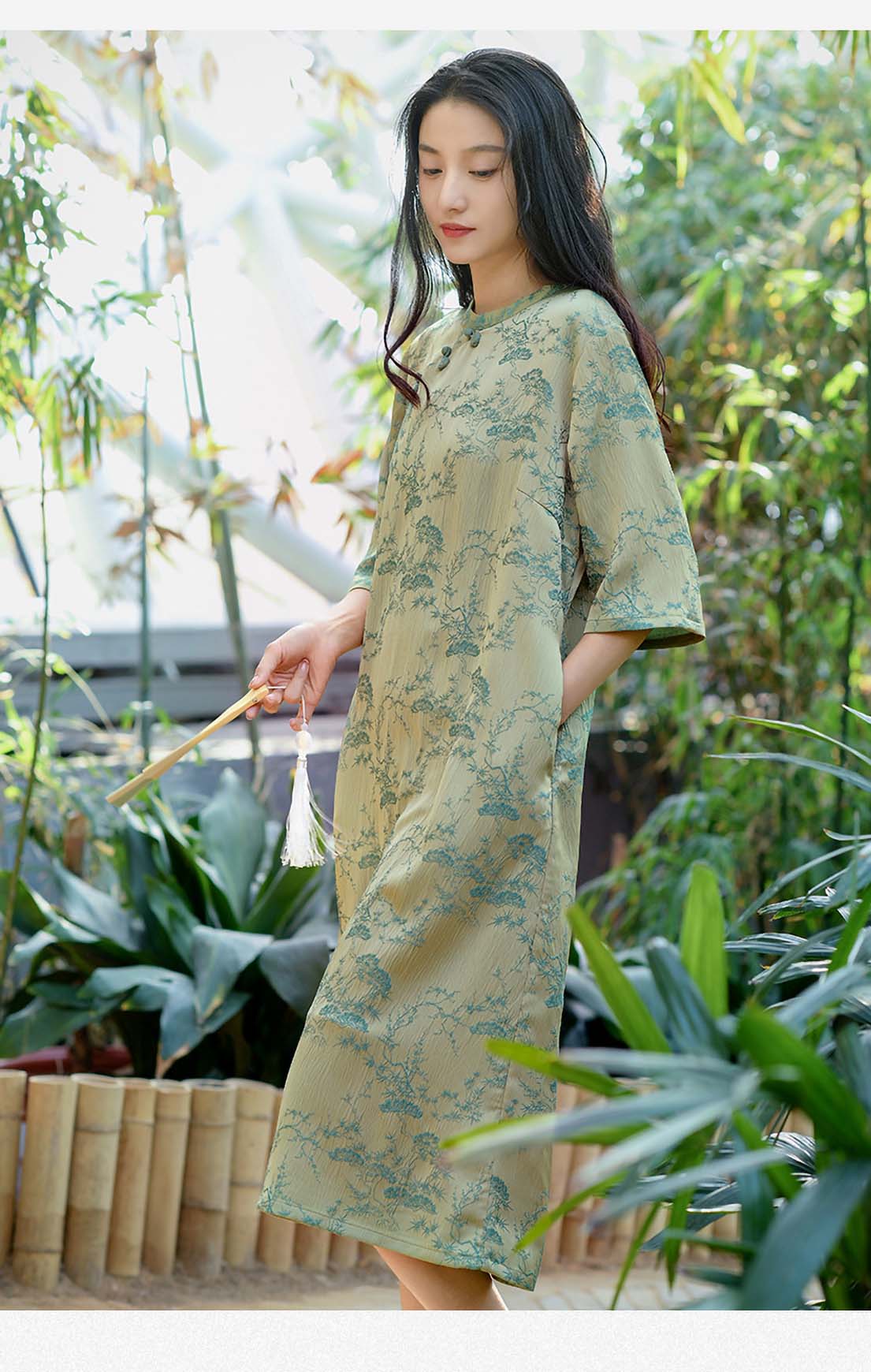 春夏新款高级感旗袍裙 皱面提花国风复古连衣裙