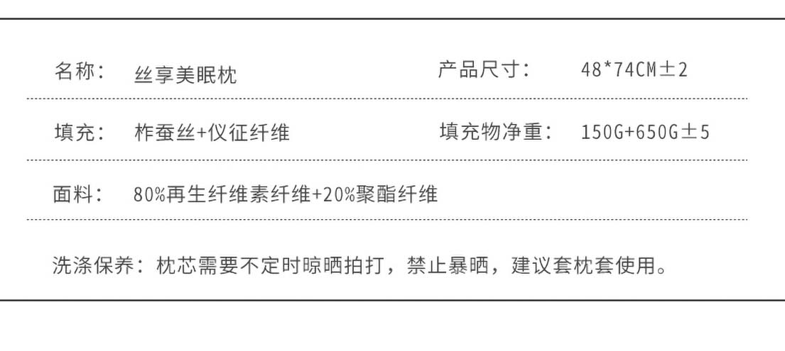 | 枕芯材质 | 150g柞蚕丝+仪征纤维 |