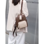 ¥318.00简约撞色软牛皮双肩包 轻便旅行真皮女士背包