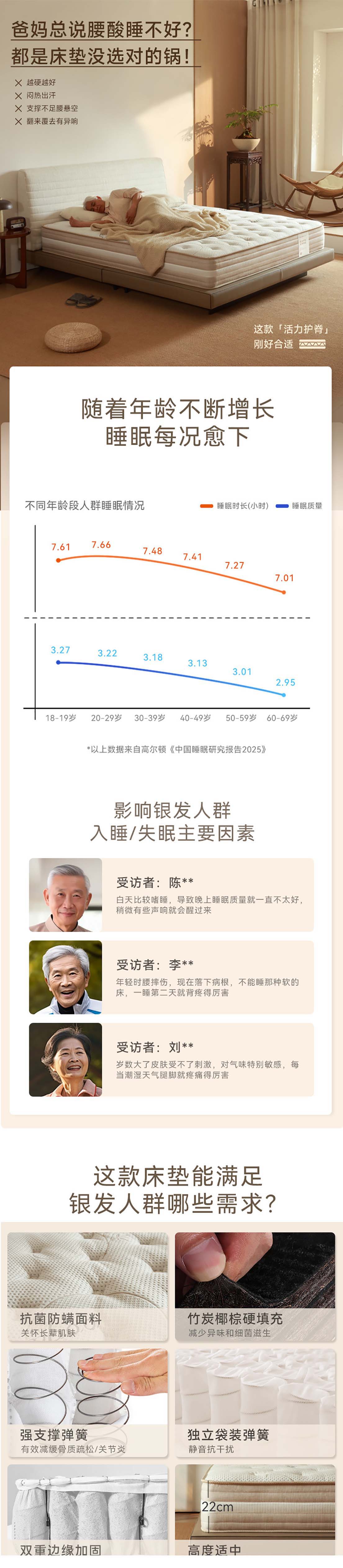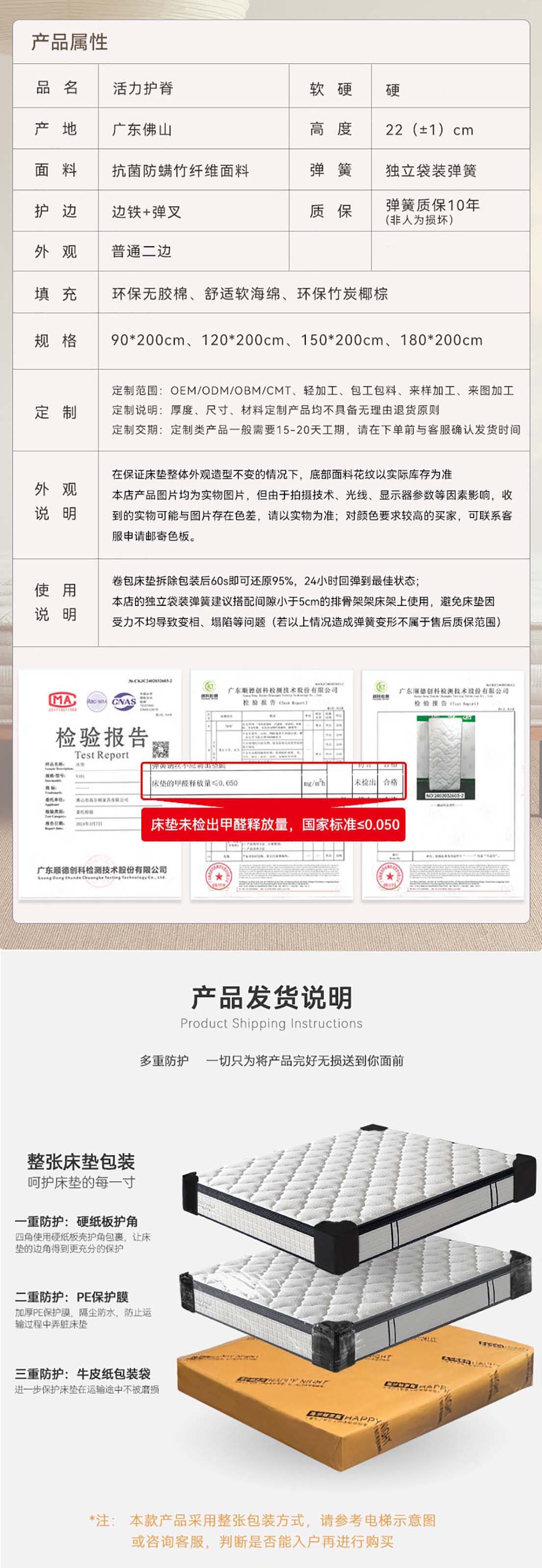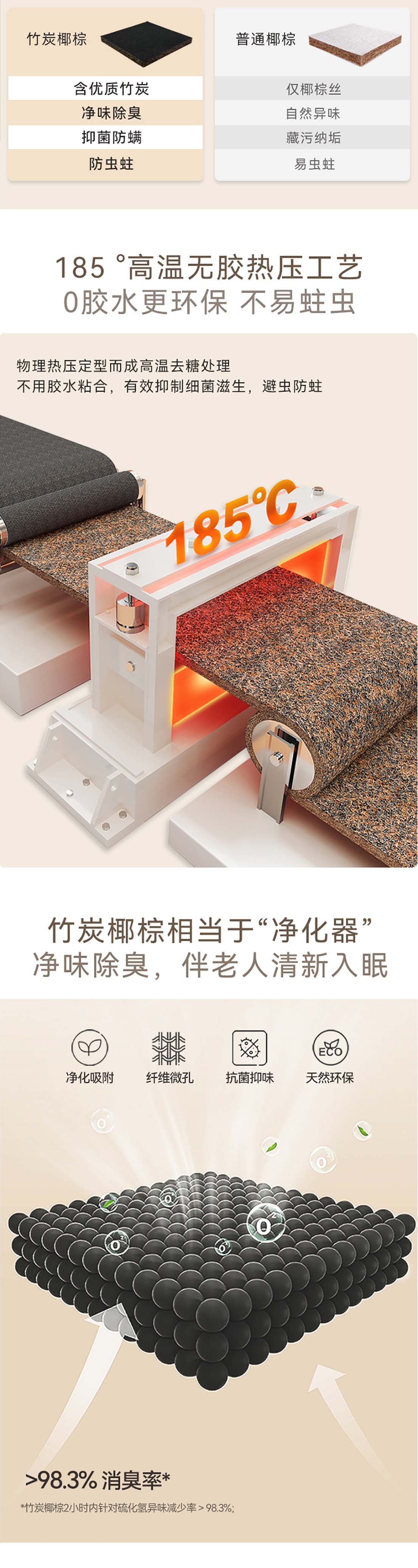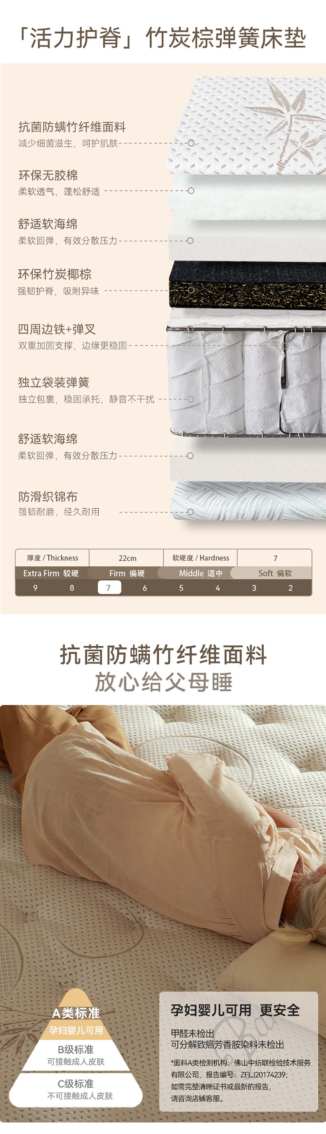 ¥2517.60活力护脊竹炭椰棕床垫 袋装弹簧家用长辈环保净味床垫
