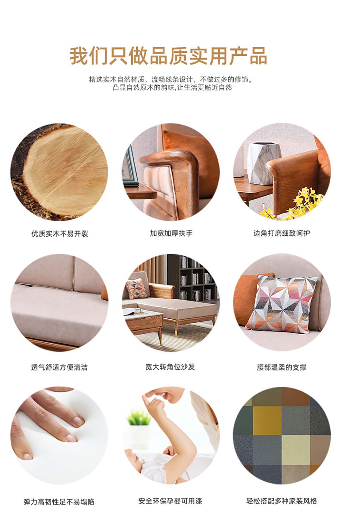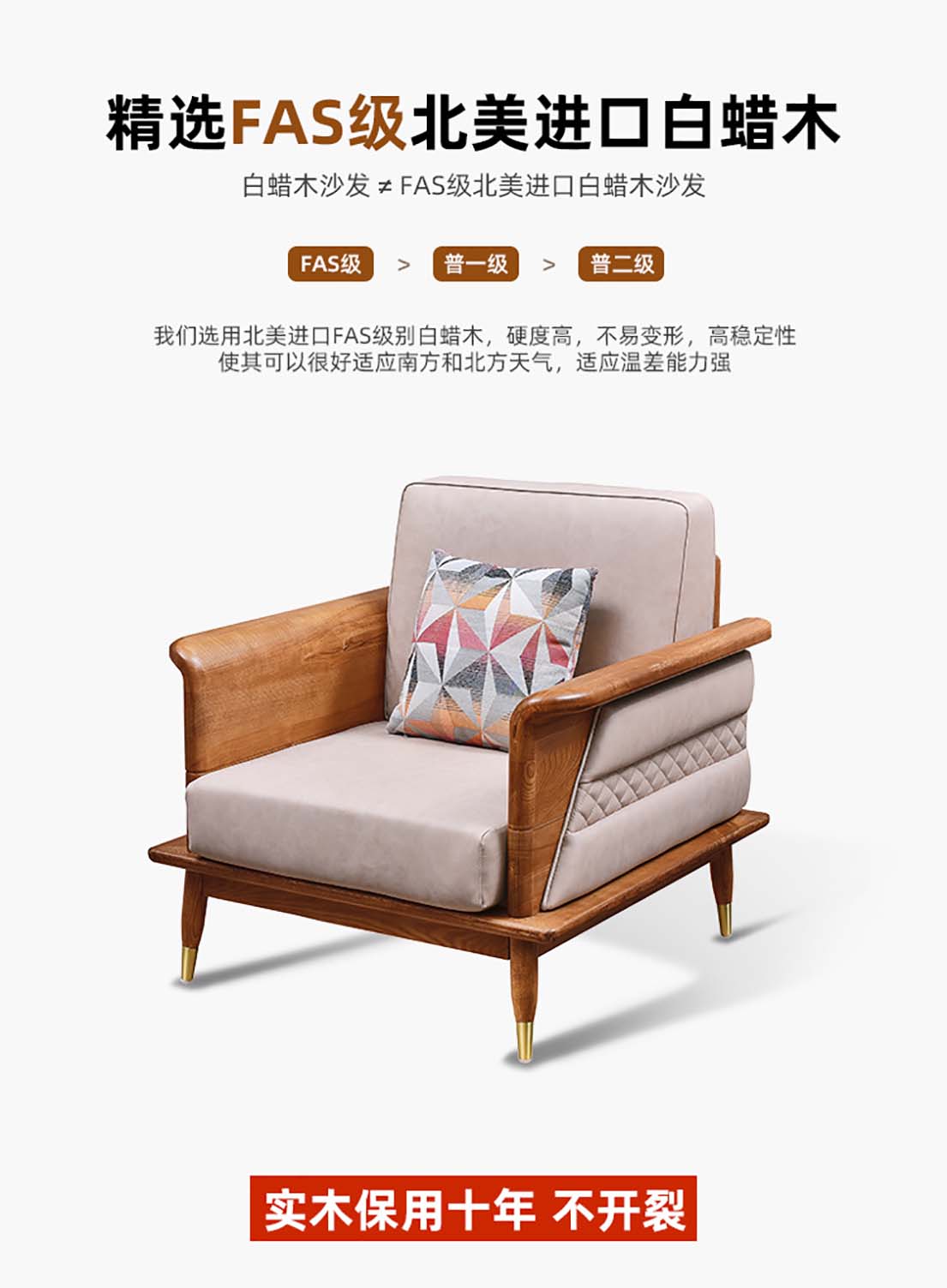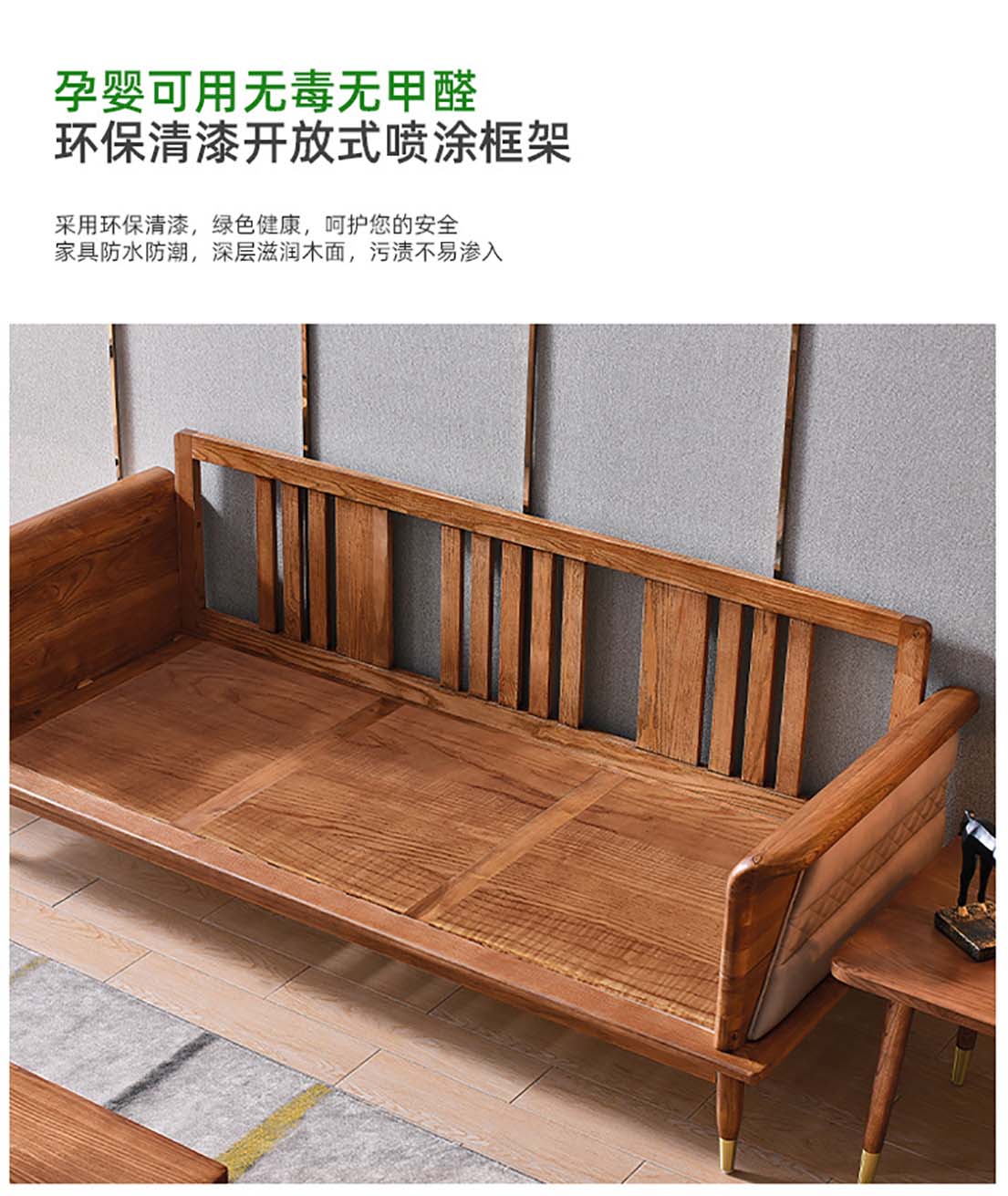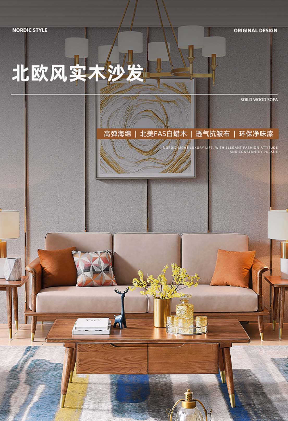 北欧实木沙发 田园风茶几沙发组合冬夏两用白蜡木客厅家具
