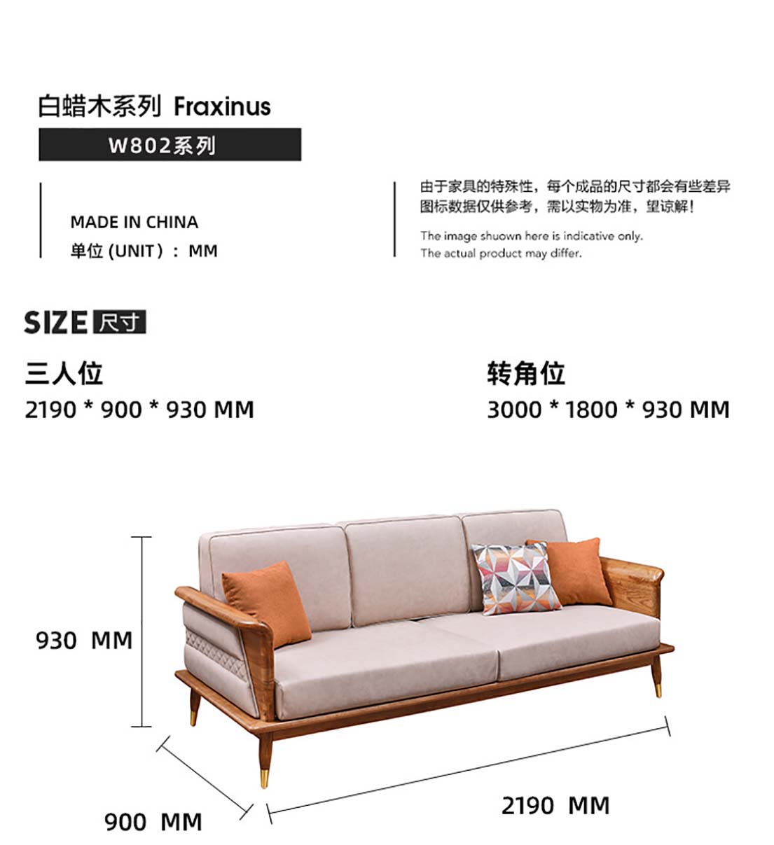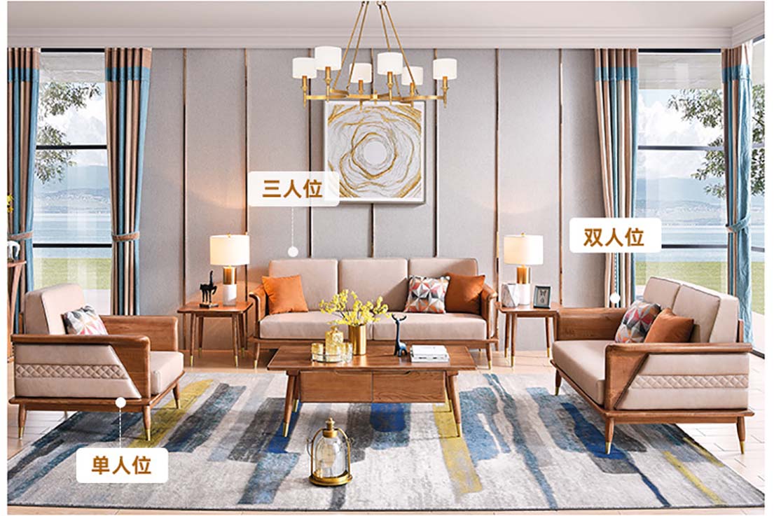 ¥3870.00北欧实木沙发 田园风茶几沙发组合冬夏两用白蜡木客厅家具