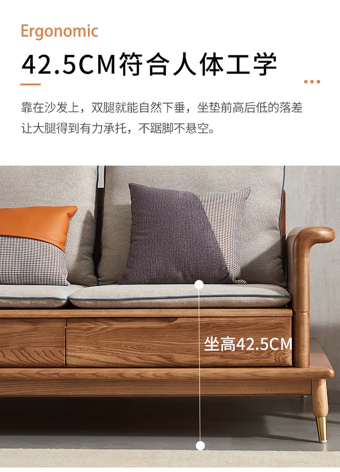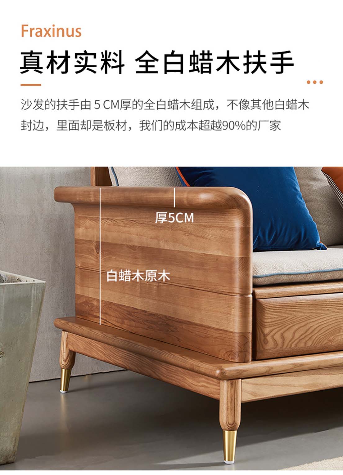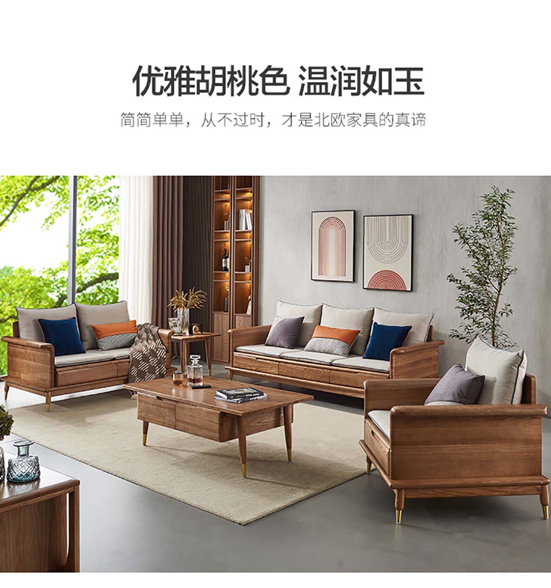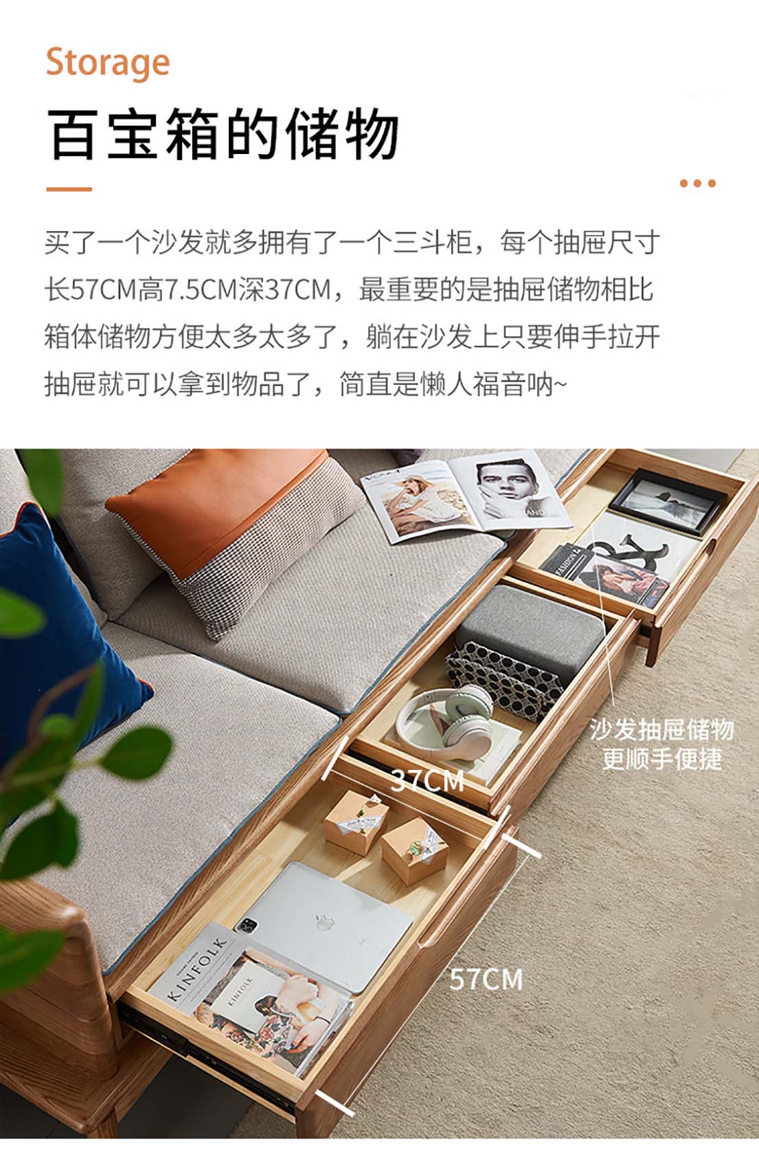 ¥4320.00北欧蜡木沙发 小户型客厅榫卯结构储物收纳实木家具
