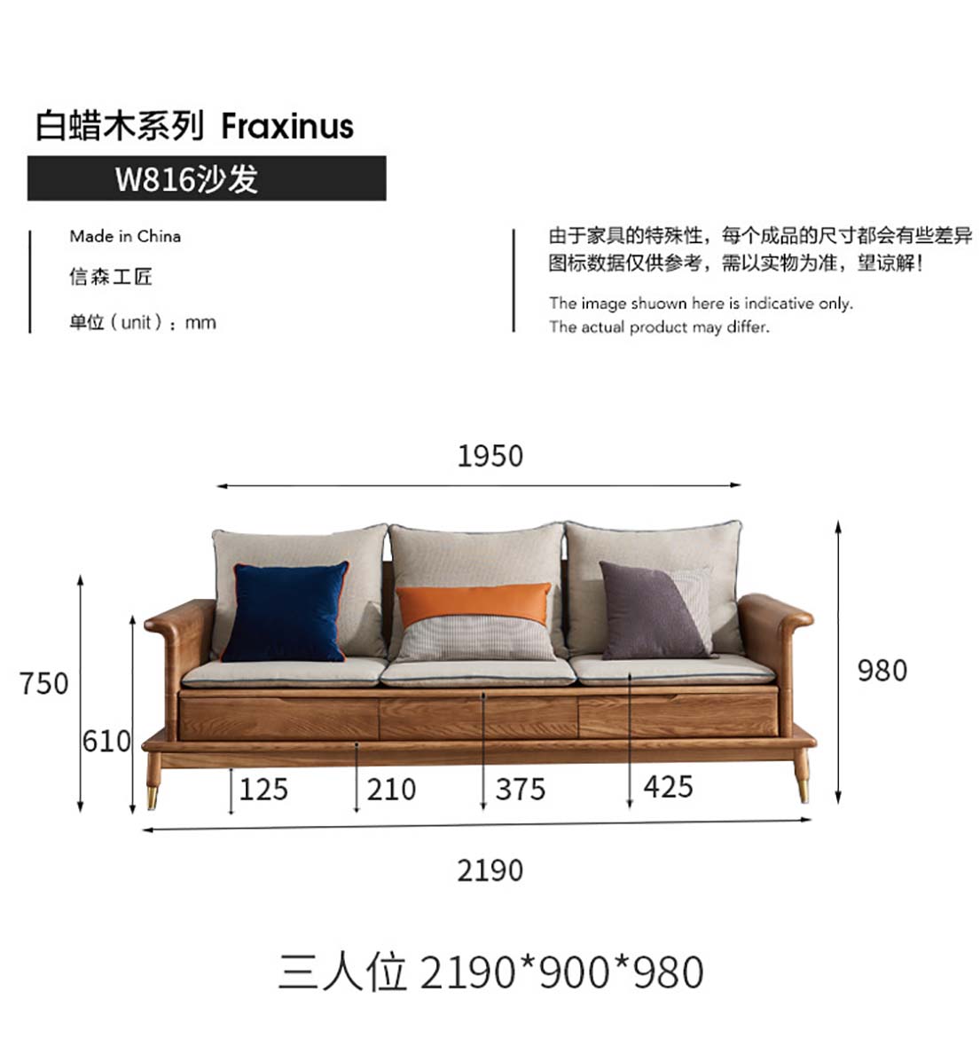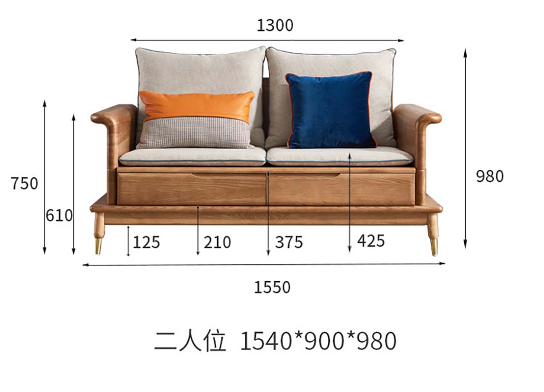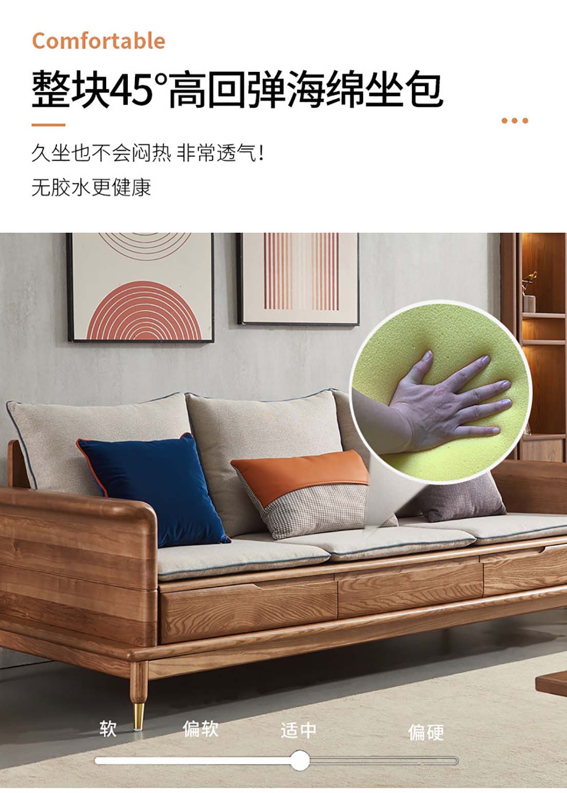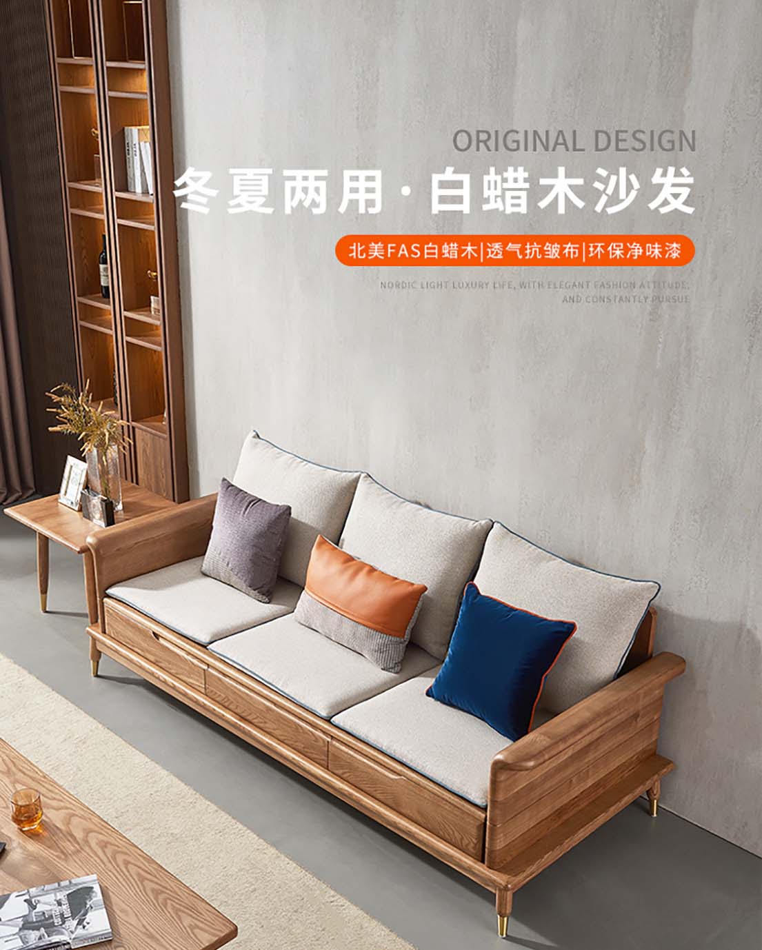 ¥4320.00北欧蜡木沙发 小户型客厅榫卯结构储物收纳实木家具
