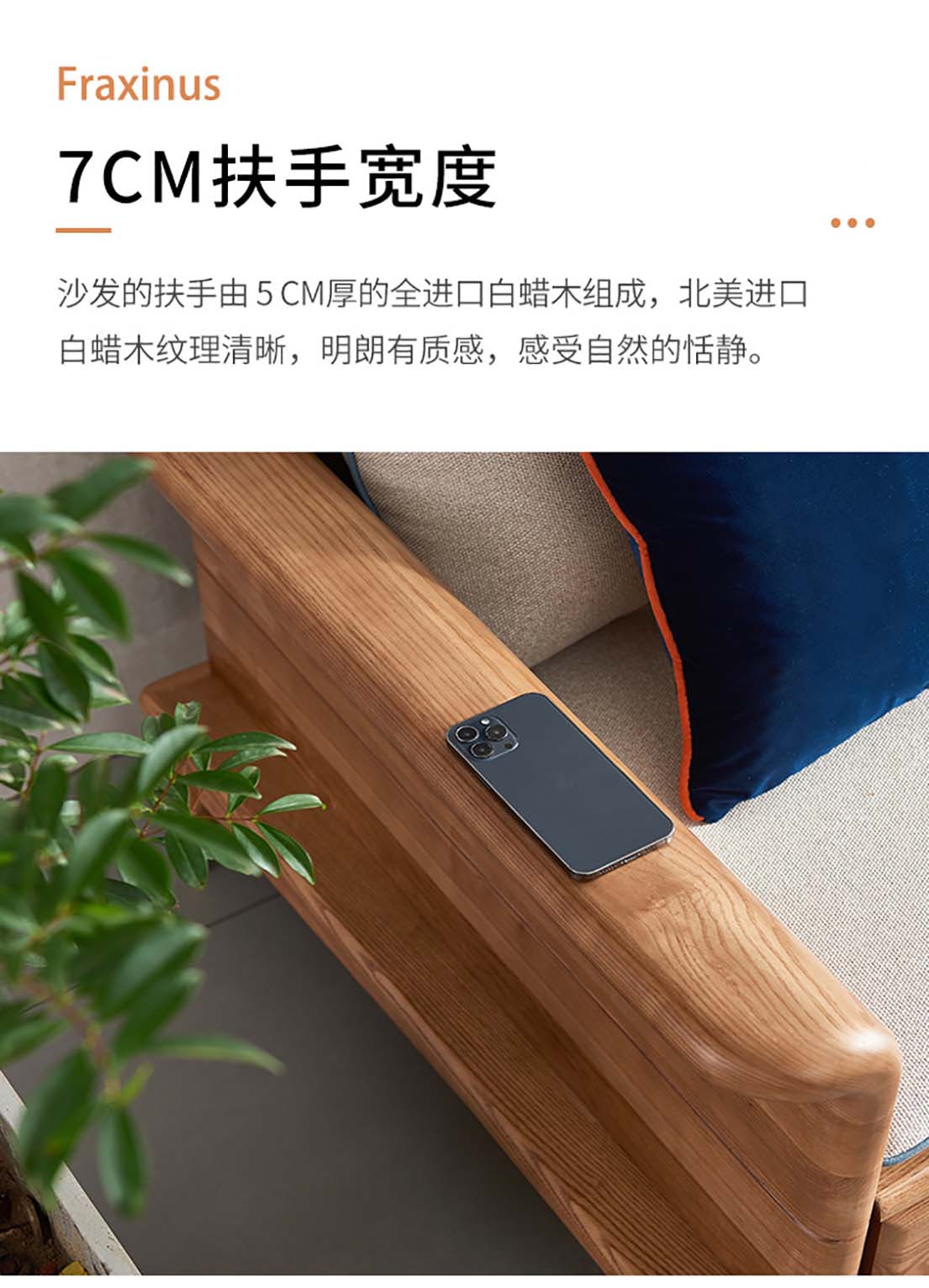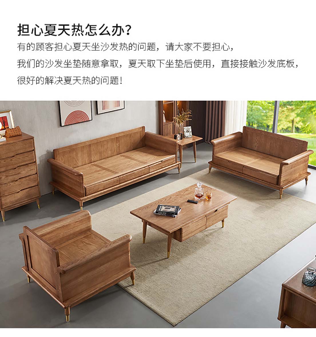 ¥3870.00北欧实木沙发 田园风茶几沙发组合冬夏两用白蜡木客厅家具