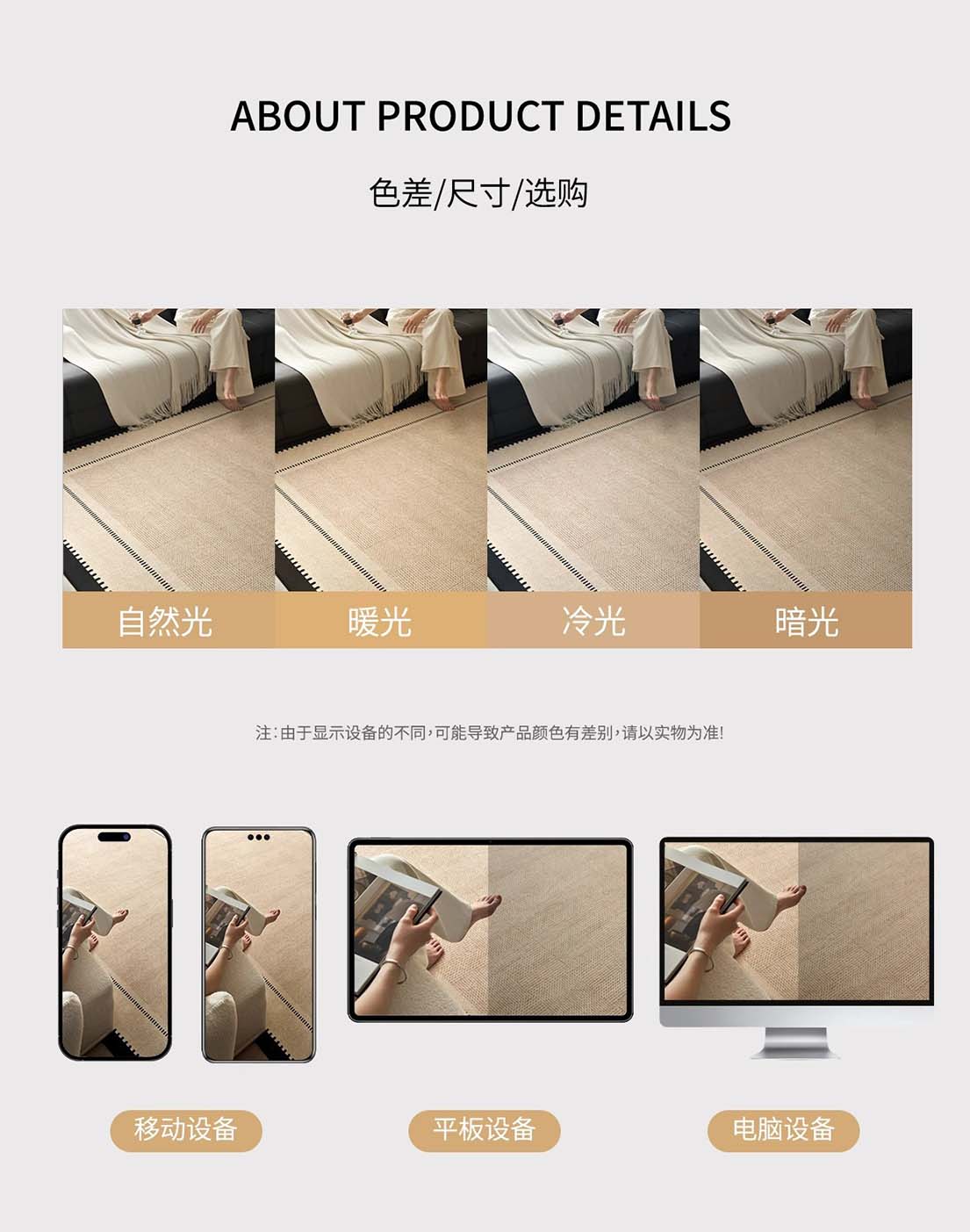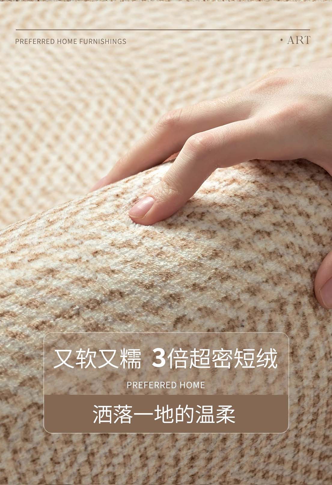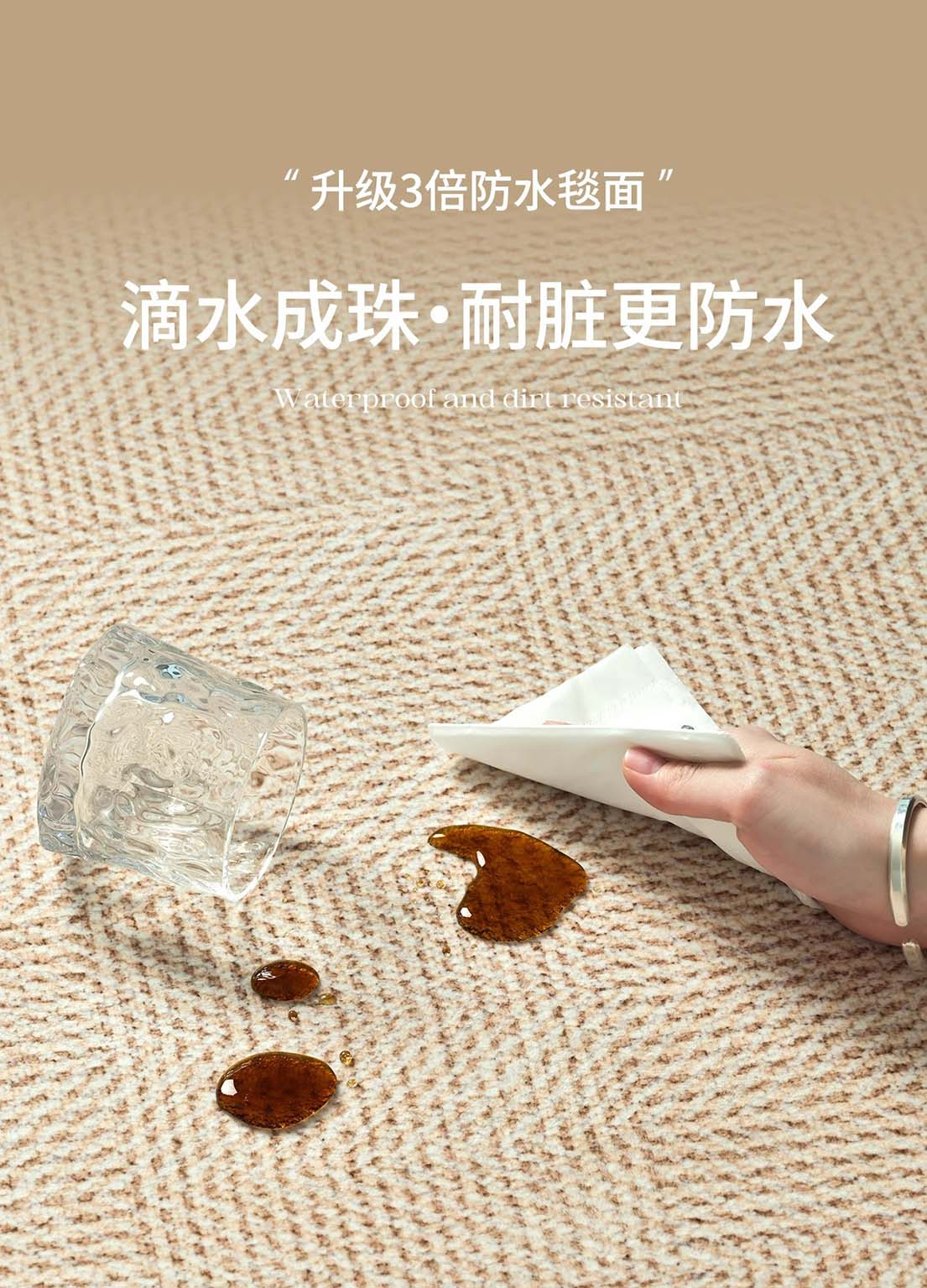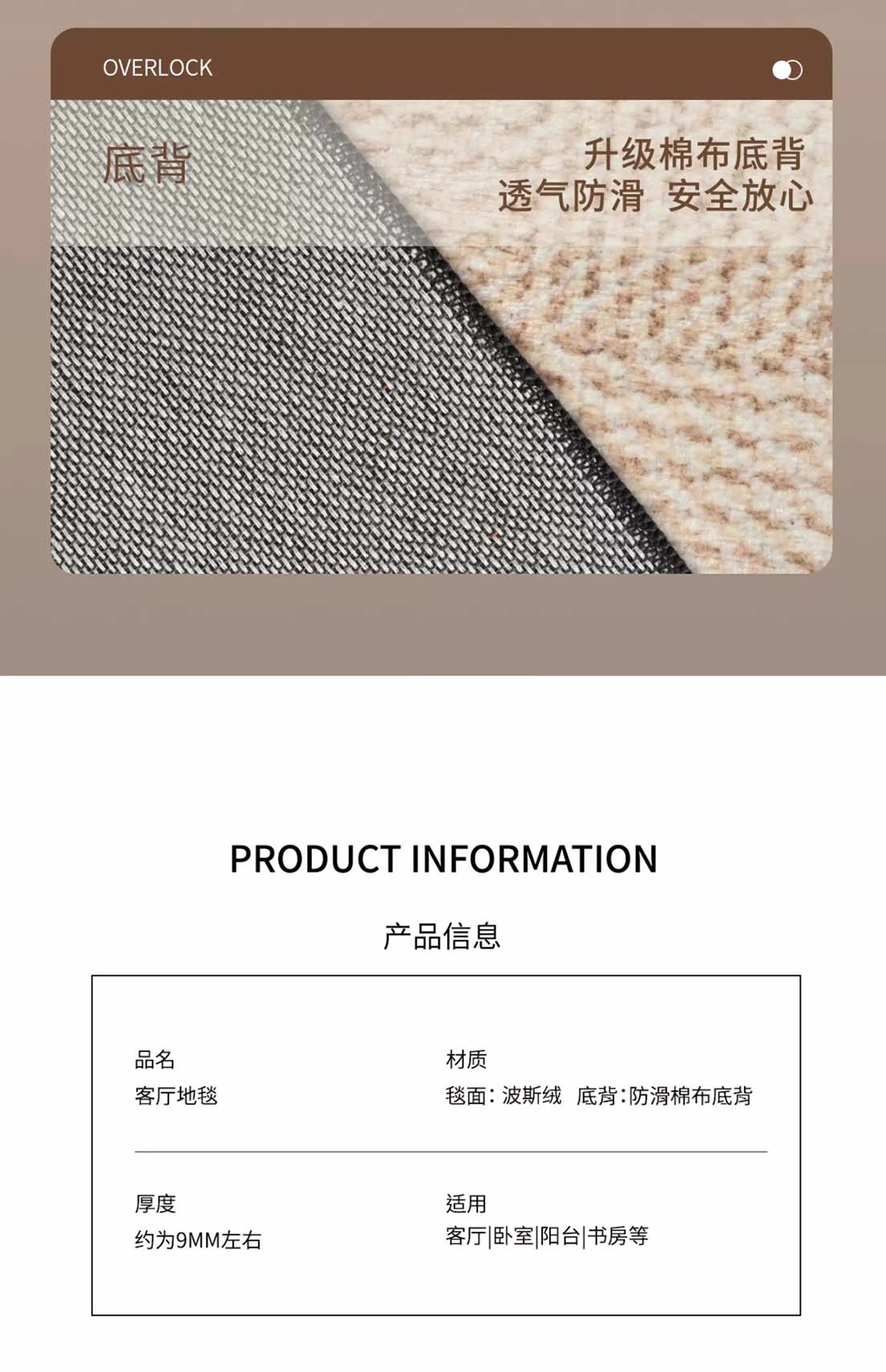 ★拒绝掉毛 拒绝起球★毯面升级荷叶凝水效果★毯面细腻亲肤★双线包边 美观耐磨★防水防潮 品质保证★环保棉麻底背★升级加厚 柔软舒适★高密度毯面不易藏灰★光脚可踩 安全环保