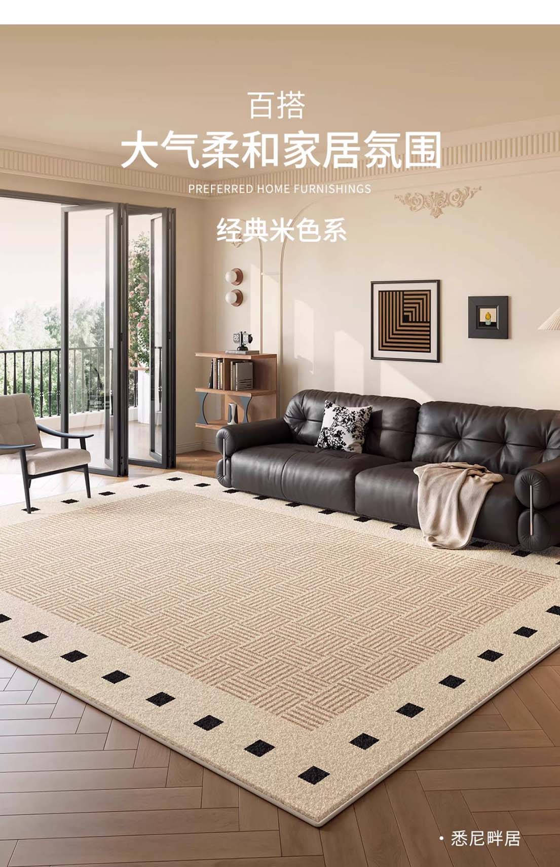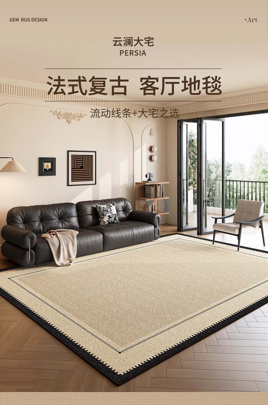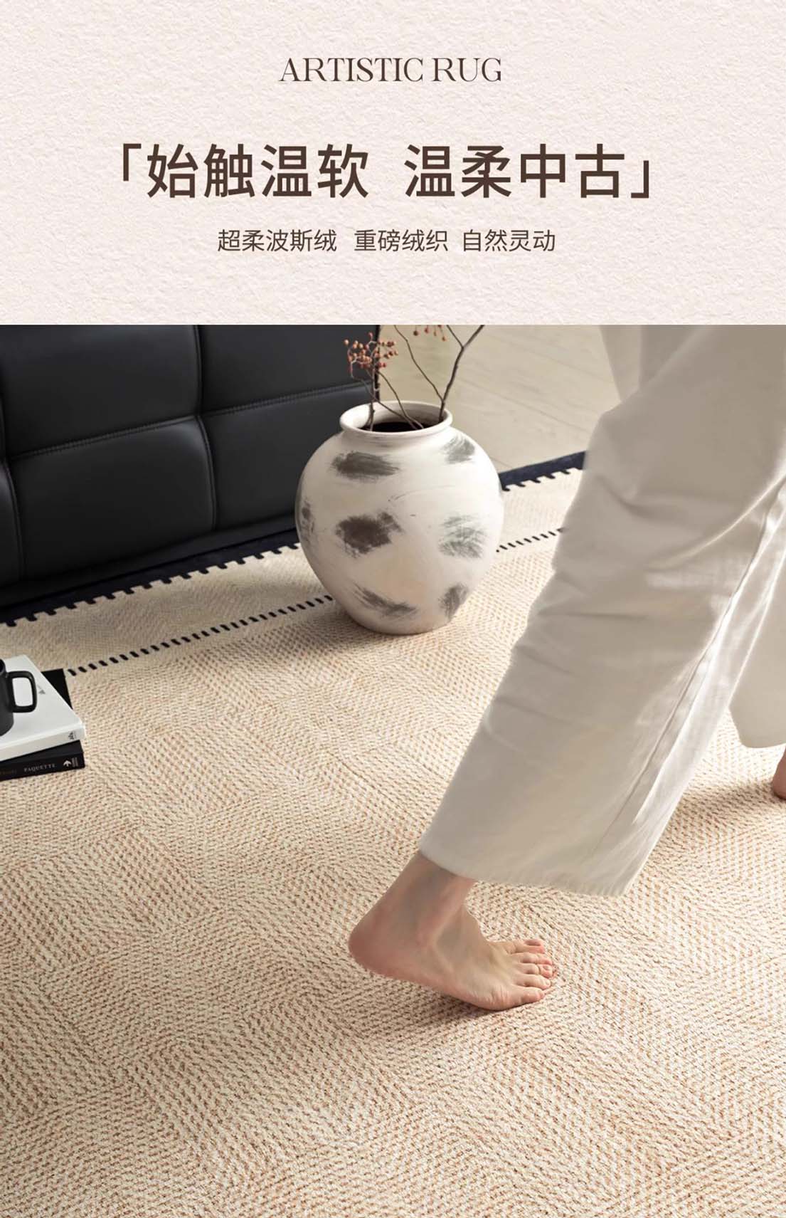 ¥297.60法式复古波斯绒地毯 中古风轻奢奶油色免洗短绒地毯