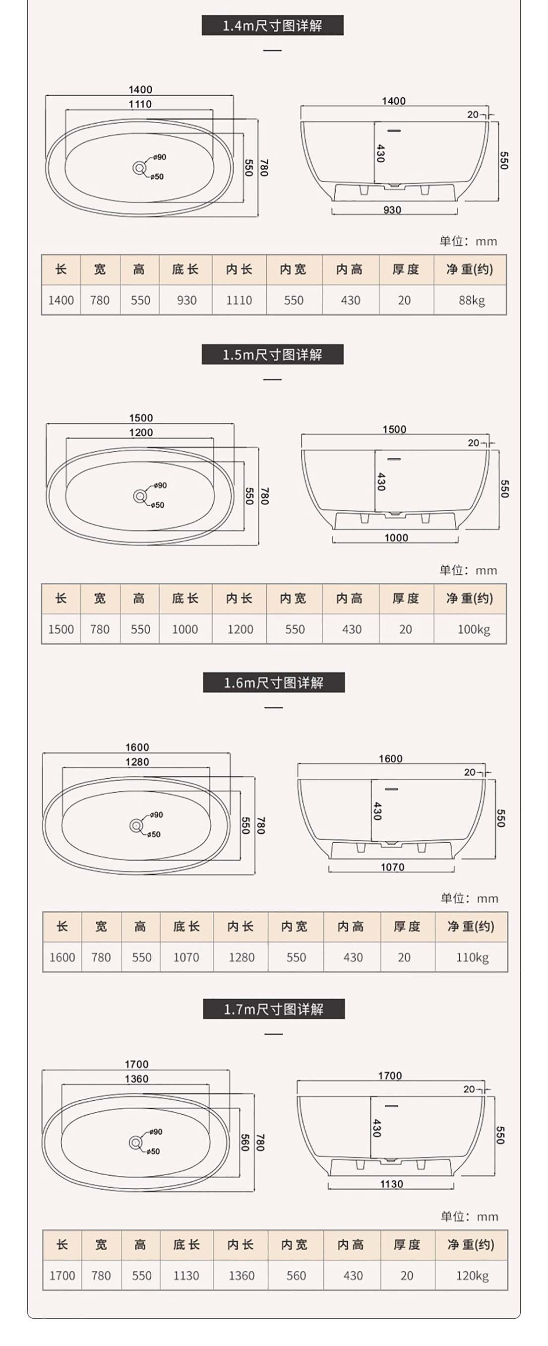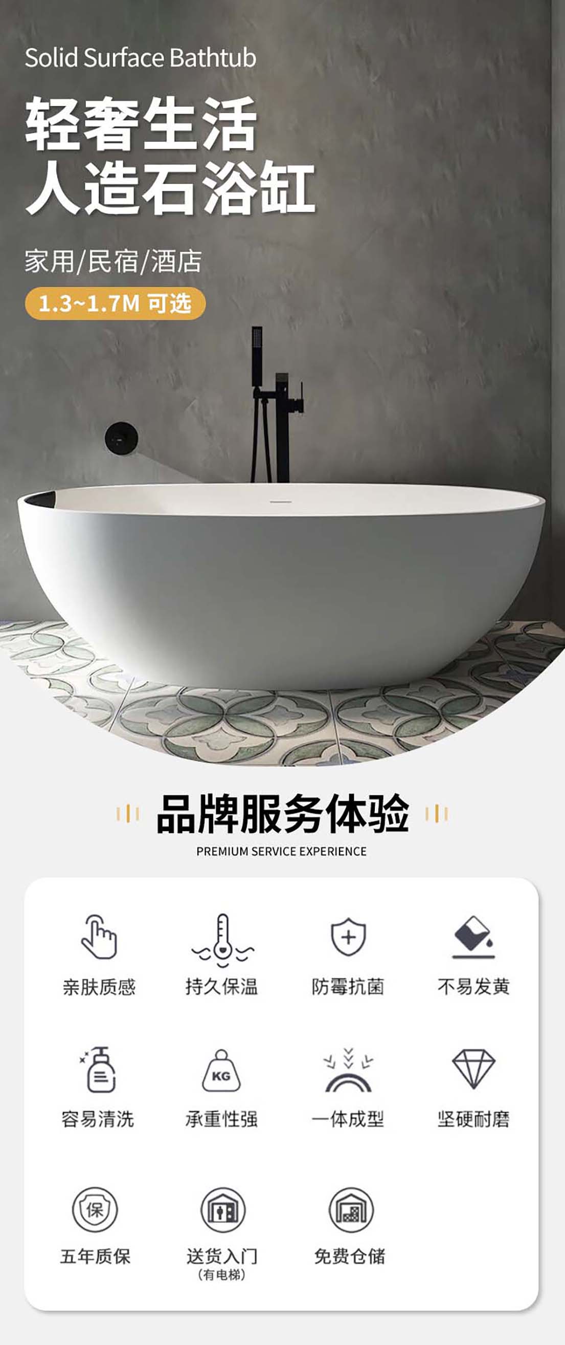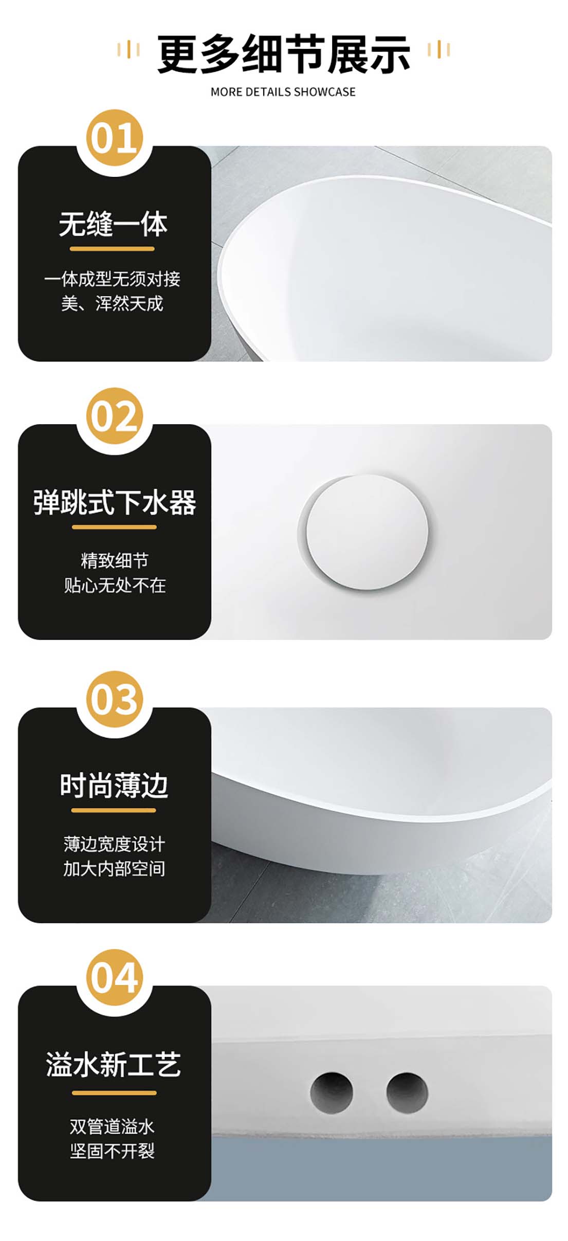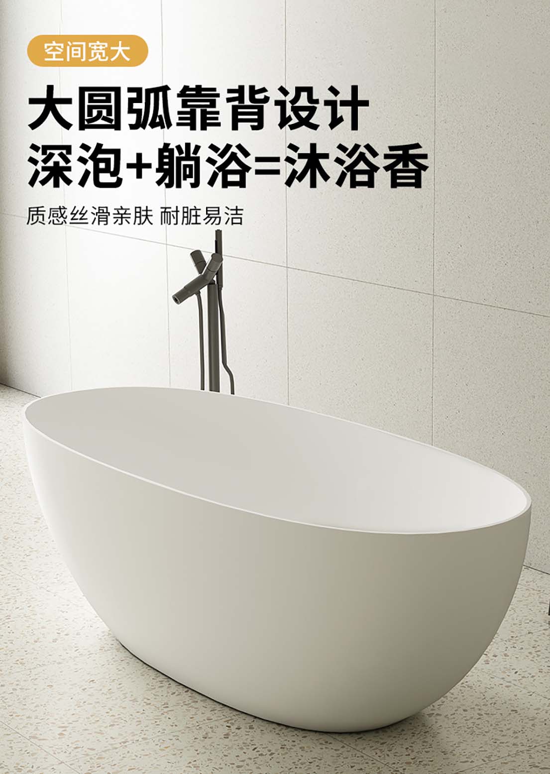 独立式人造石浴缸 家用轻奢酒店民宿椭圆形浴缸
