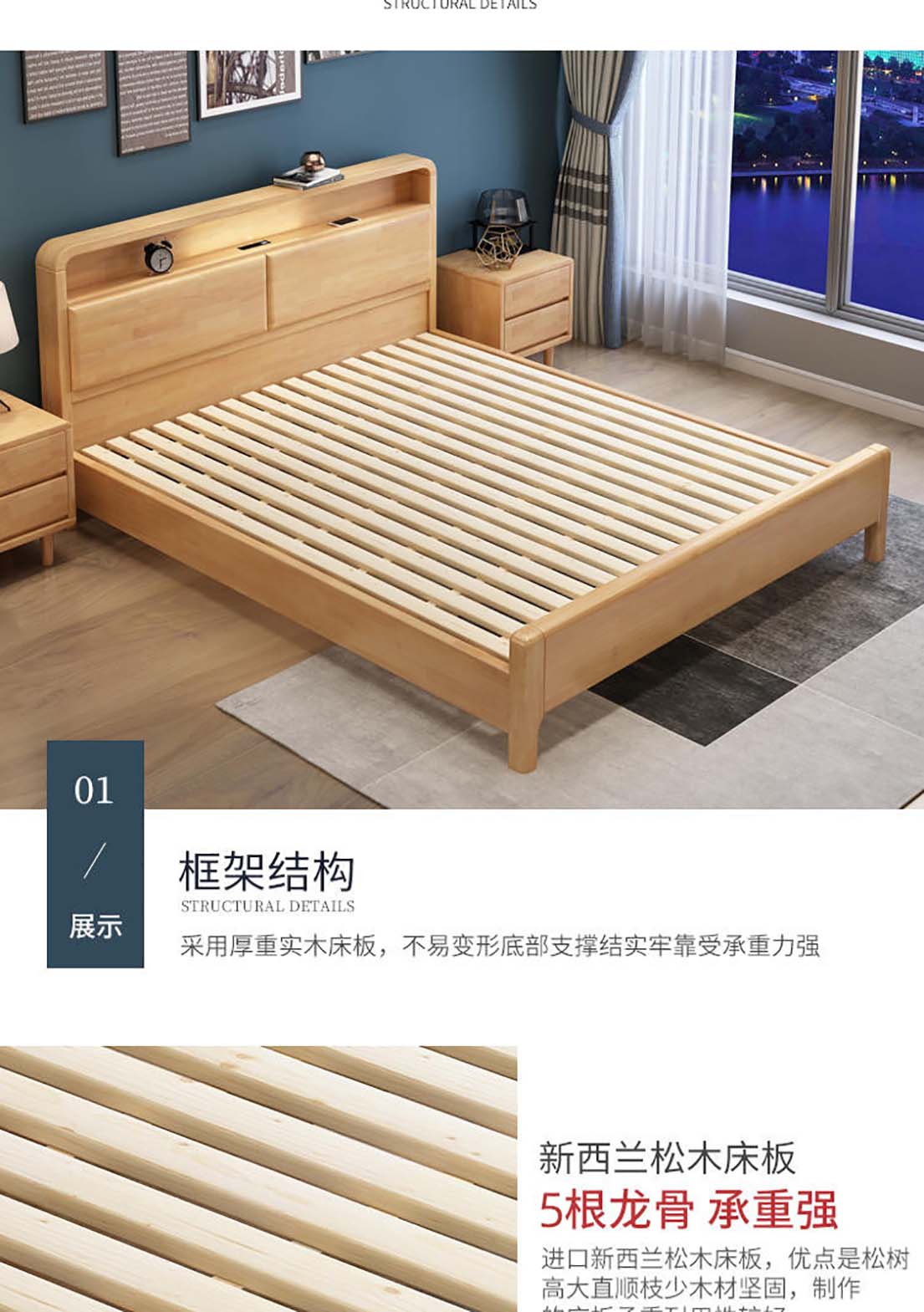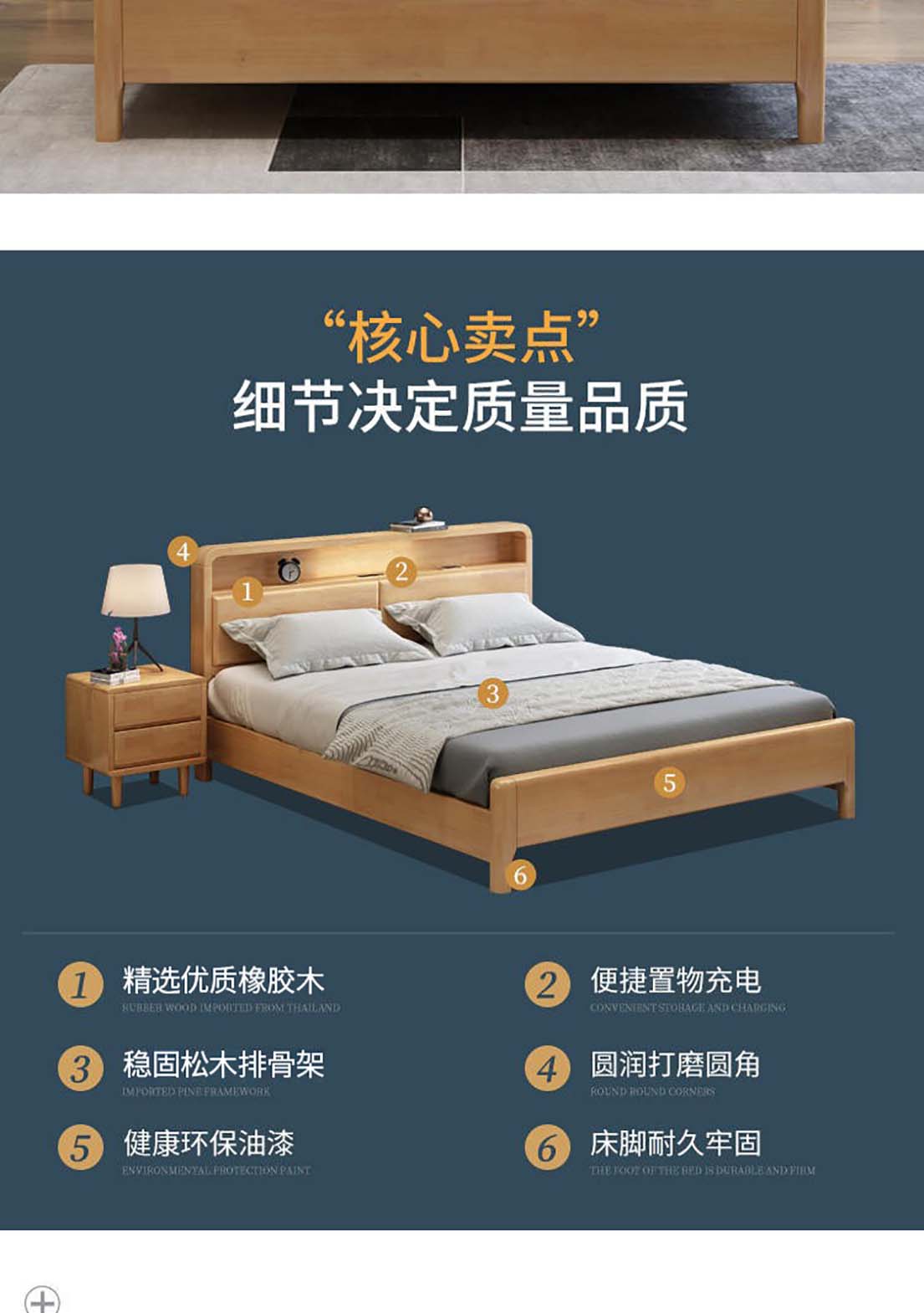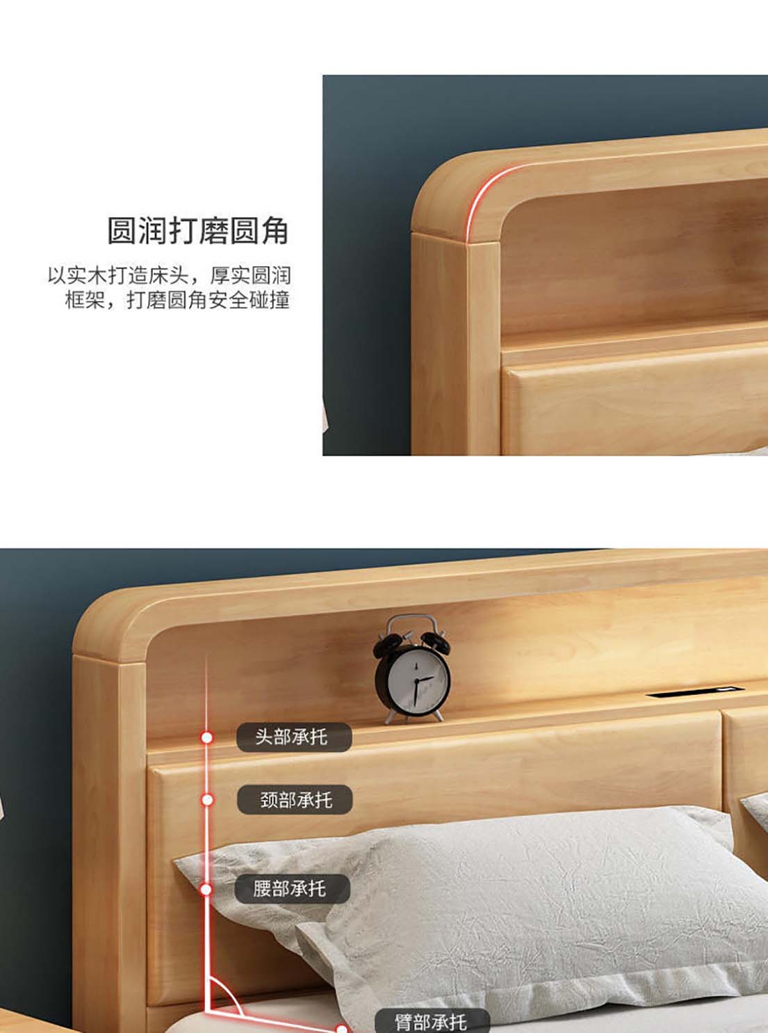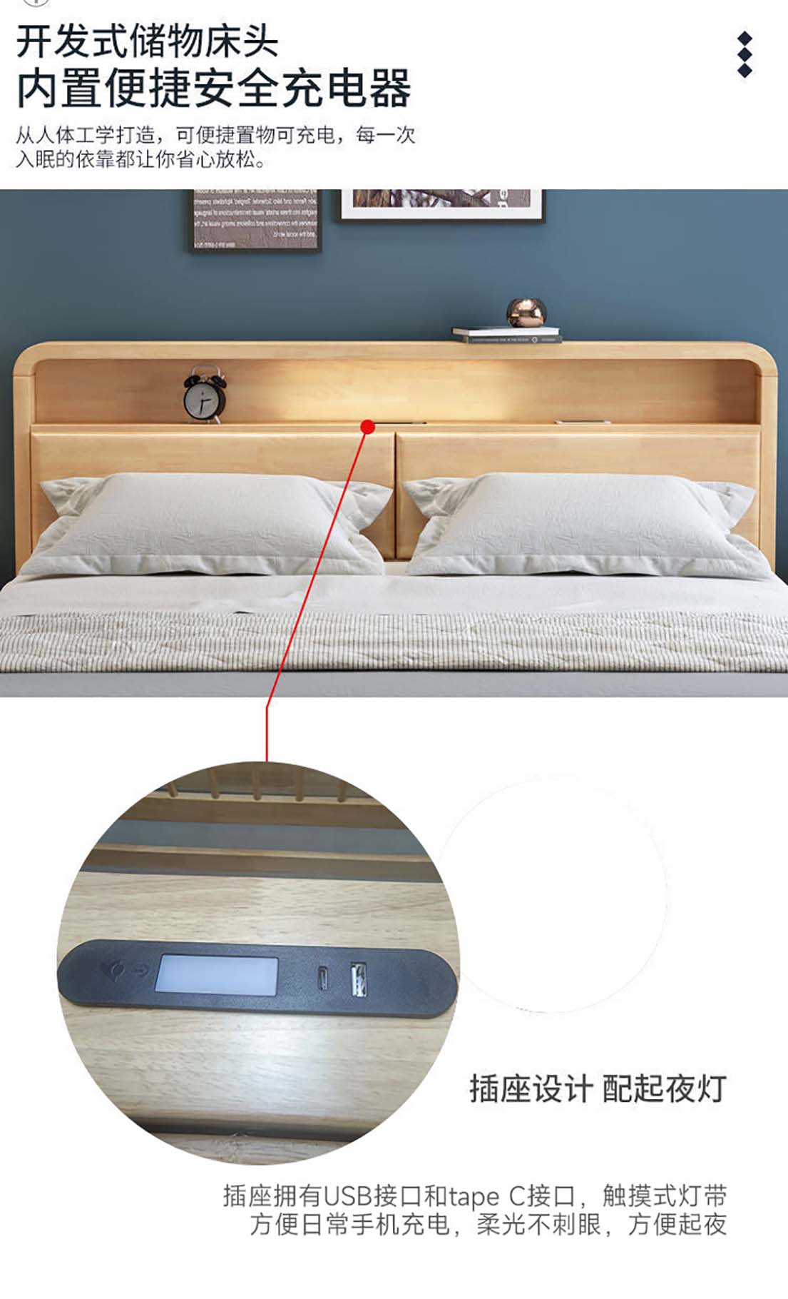 北欧实木床带夜灯现代简约双人床软包床青少年儿童床