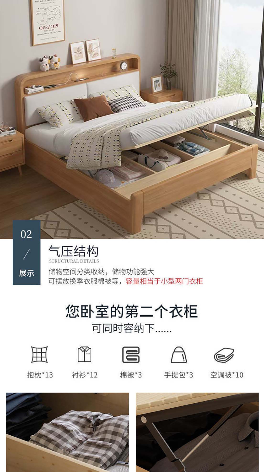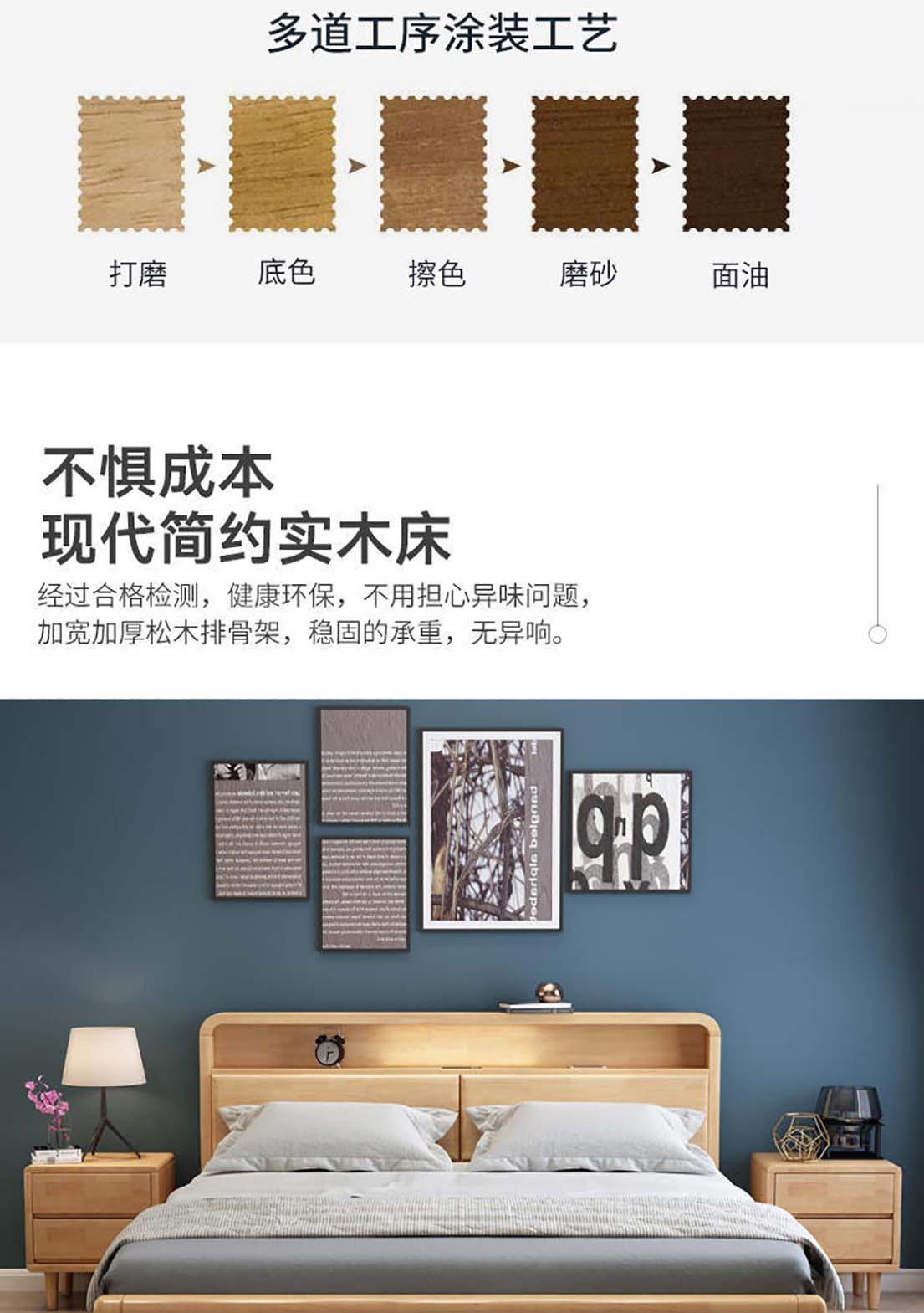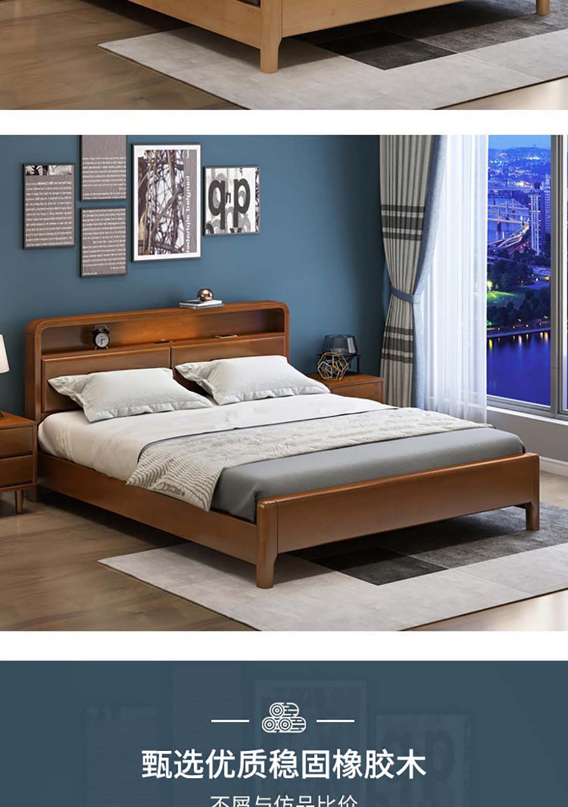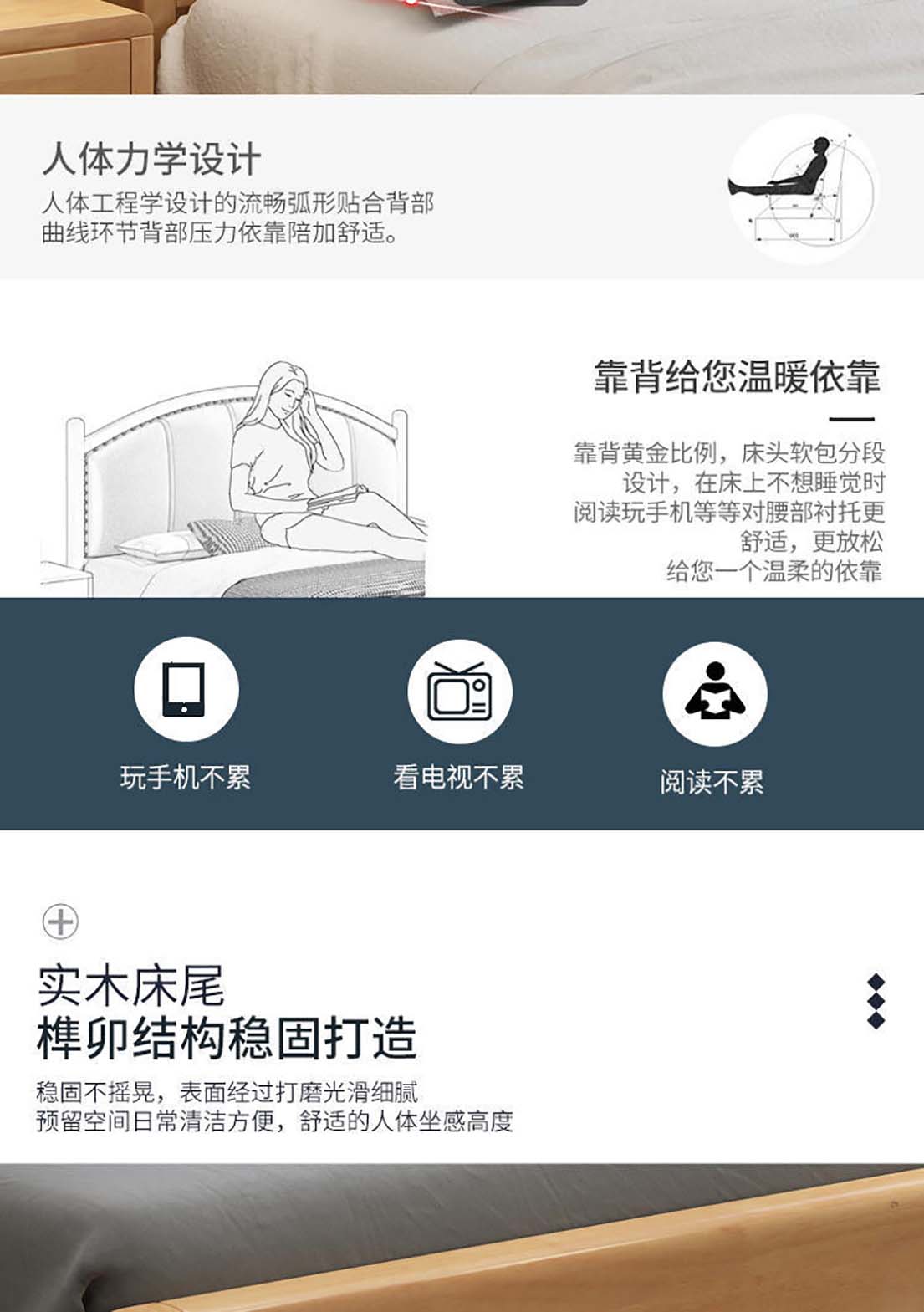 北欧实木床带夜灯现代简约双人床软包床青少年儿童床
