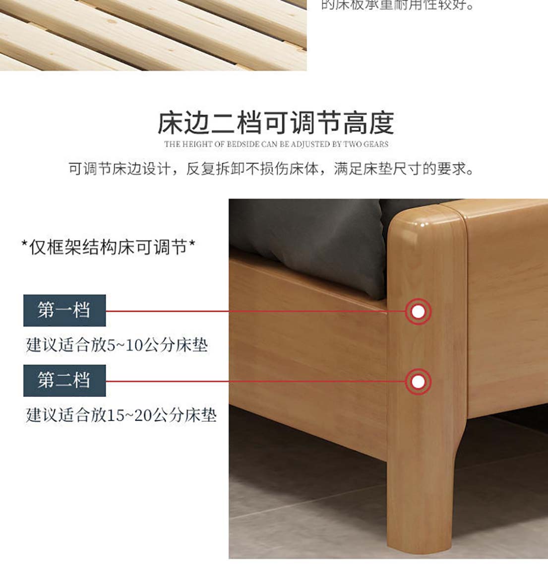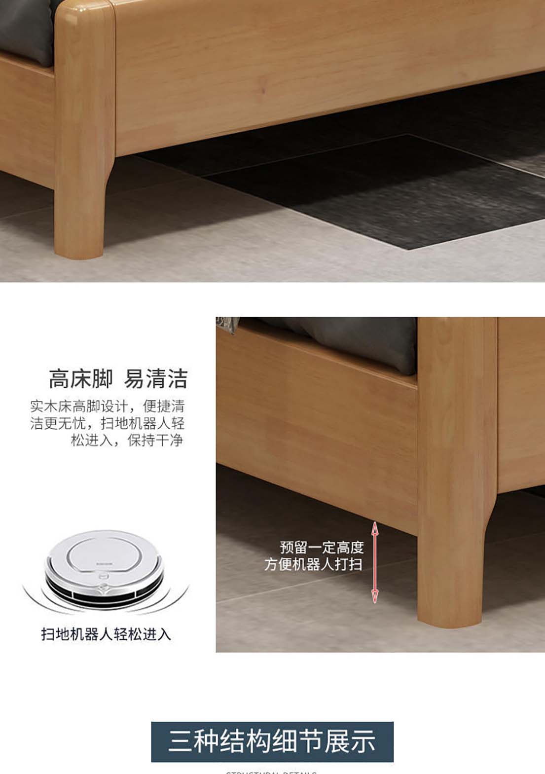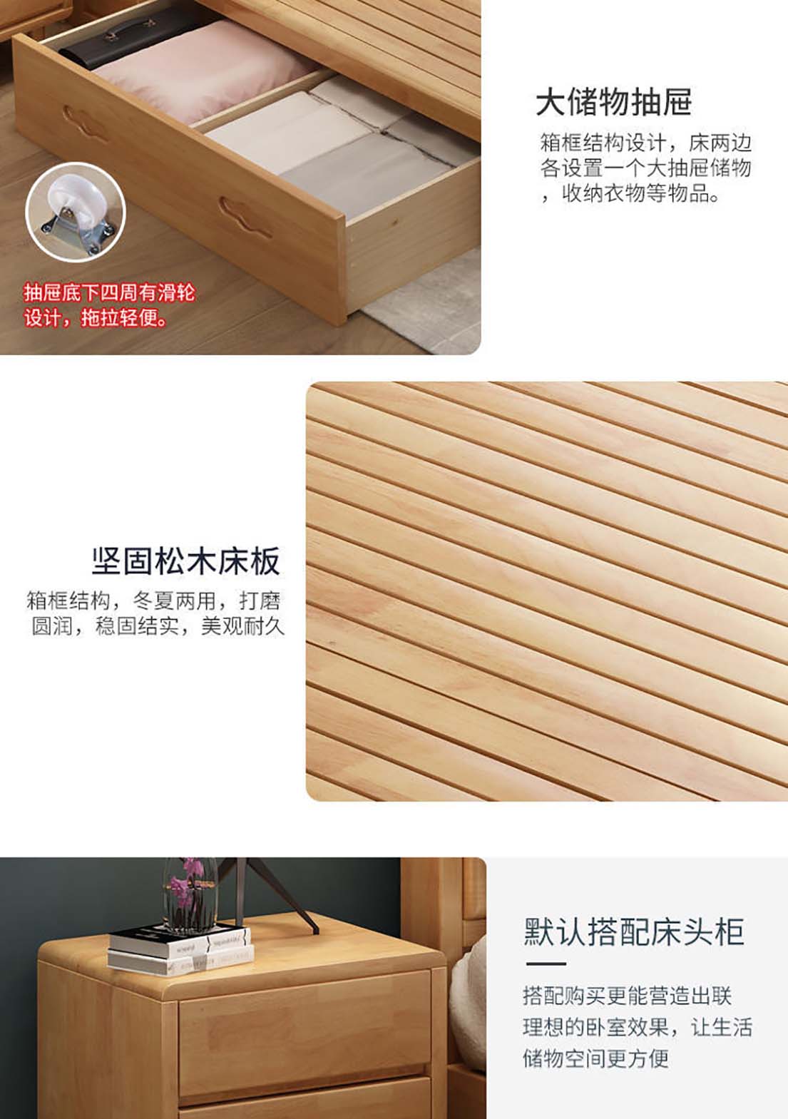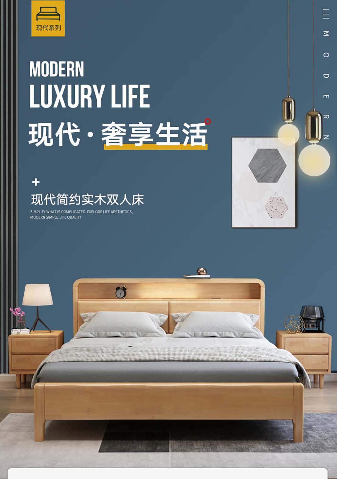 北欧实木床带夜灯现代简约双人床软包床青少年儿童床