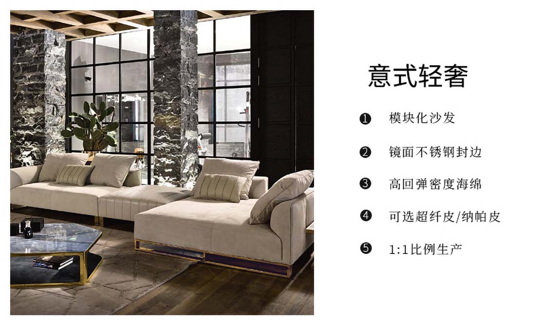 意式轻奢真皮沙发 高档装饰新古典简约直排转角沙发