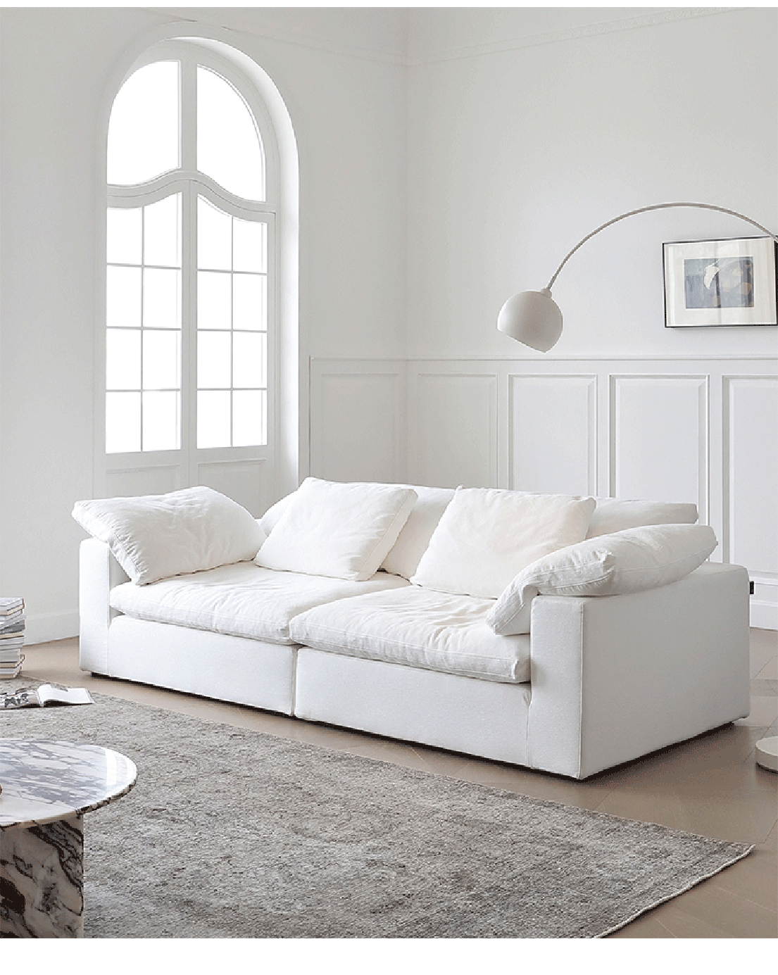 ¥8388.00现代简约布艺云沙发 高档棉麻面料羽绒海绵可拆洗客厅直排沙发