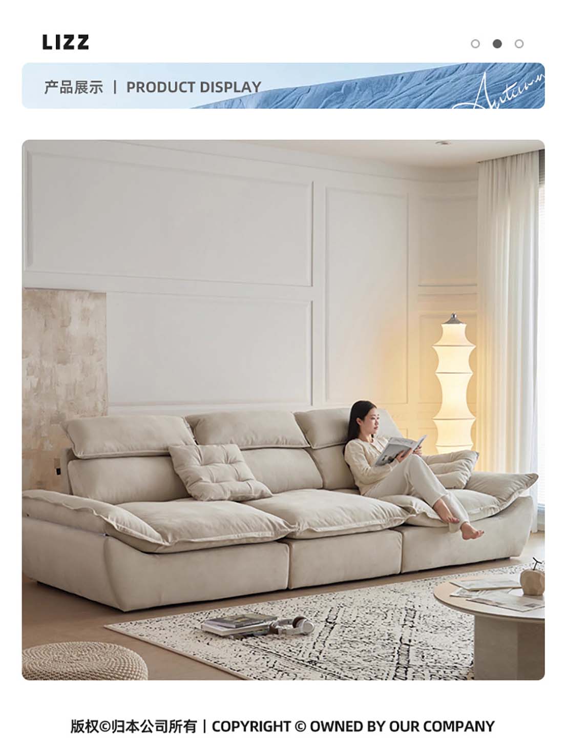 ¥8388.00现代简约布艺云沙发 高档棉麻面料羽绒海绵可拆洗客厅直排沙发