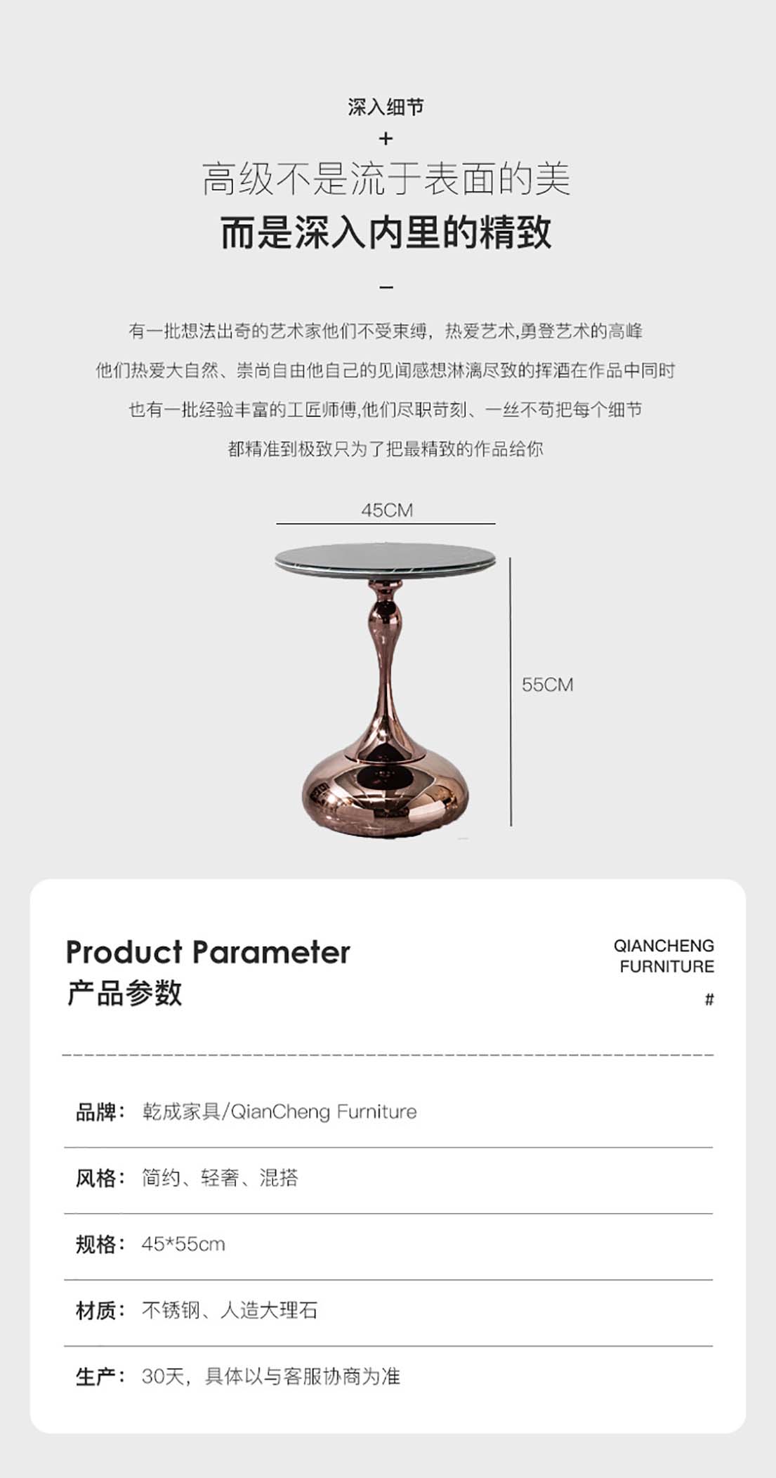 ¥600.00意式大理石小蛮腰边几 客厅高级感现代轻奢小茶几置物架移动小圆桌