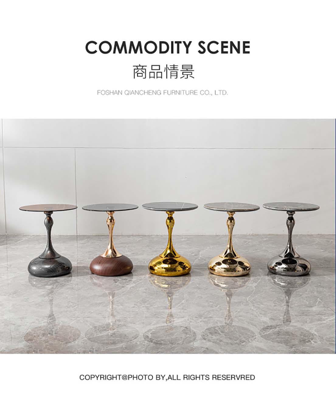¥7416.00意式玻璃圆形茶几 家用现代轻奢客厅高级高低组合不锈钢套几