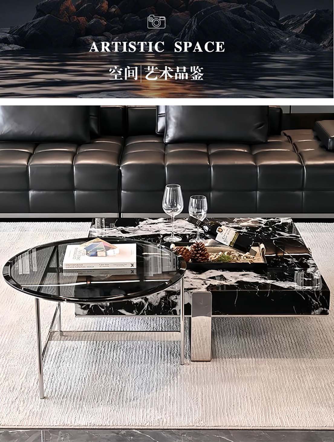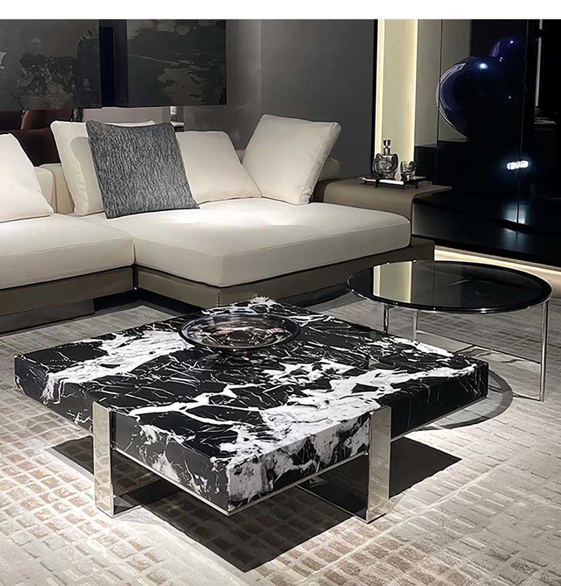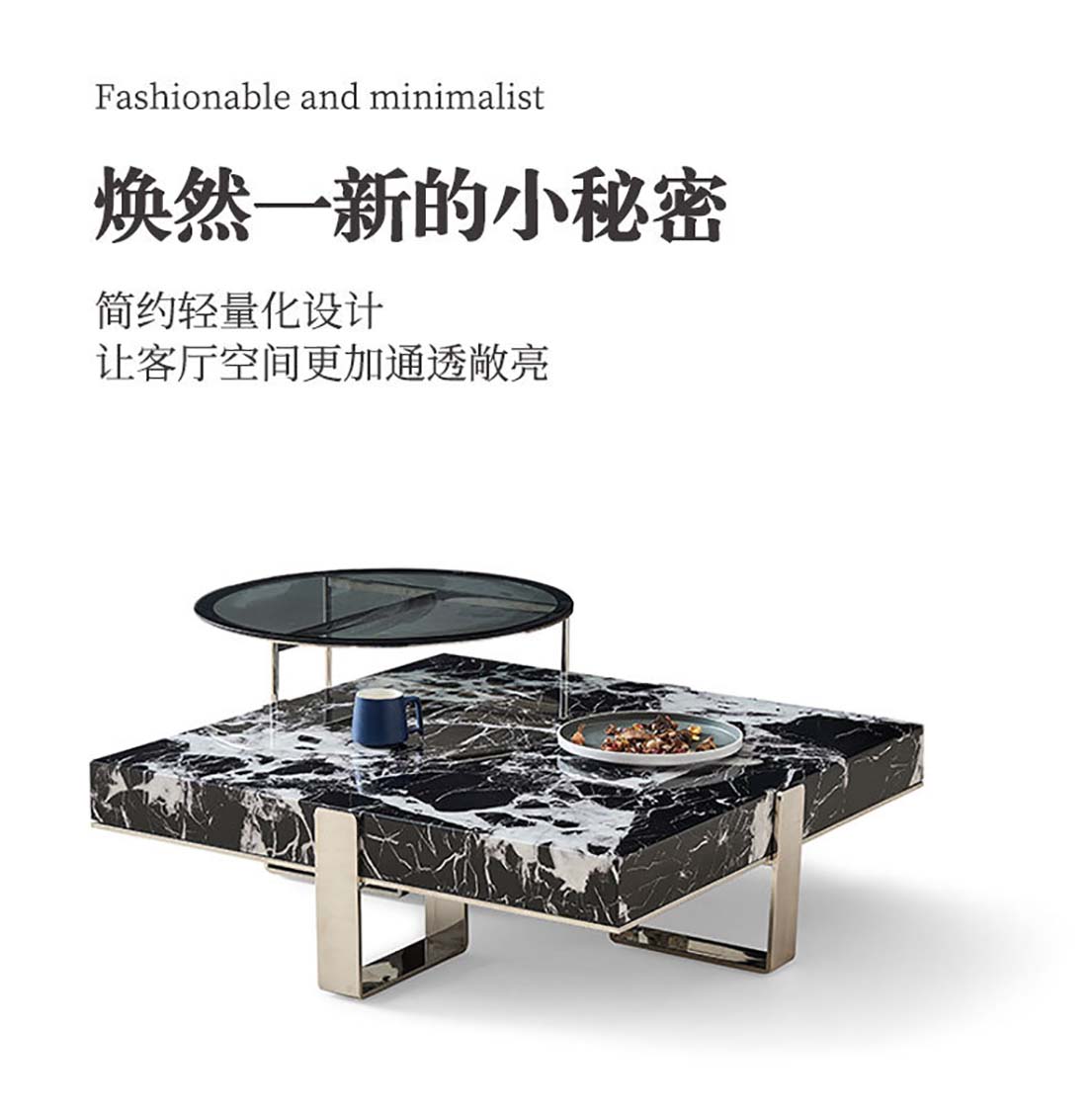 意式极简大理石茶几 现代大小户型客厅轻奢高级方茶几组合